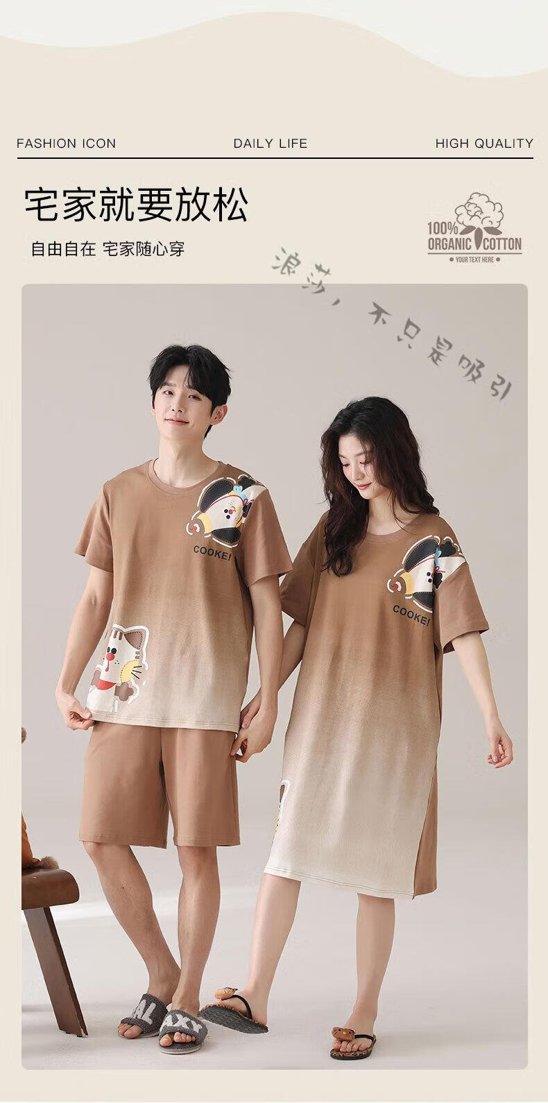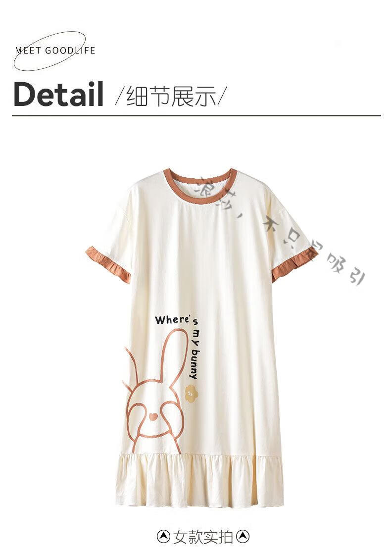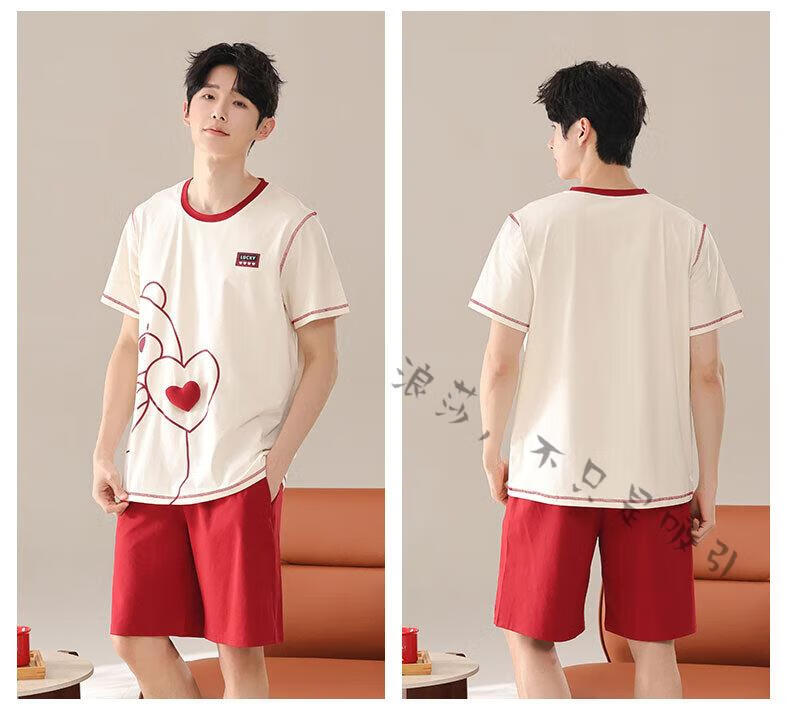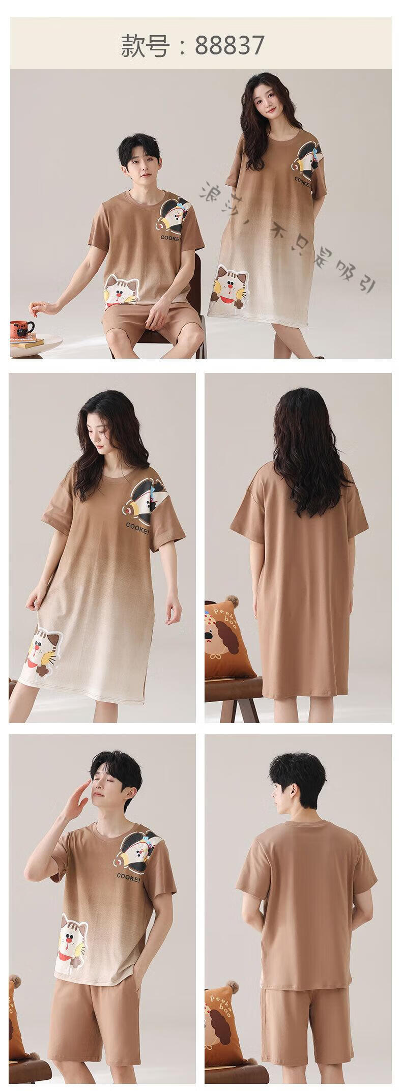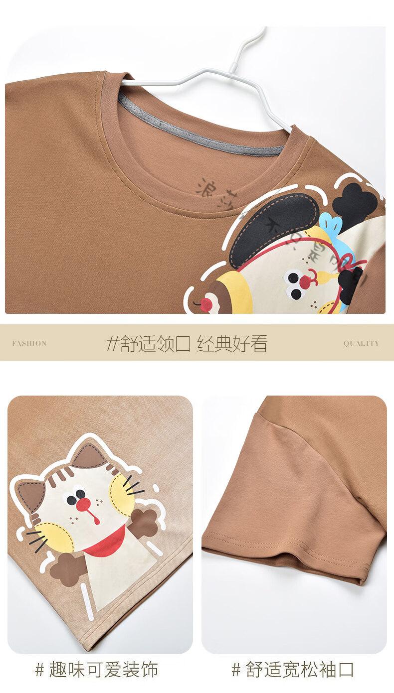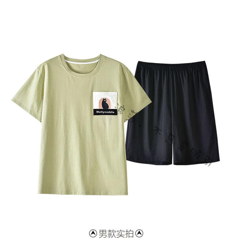 LangSha couple pajamas for women summer pure cotton short-sleeved cute cartoon sweet nightgown 100% cotton men's home wear set 88832 XL women + 3XL men