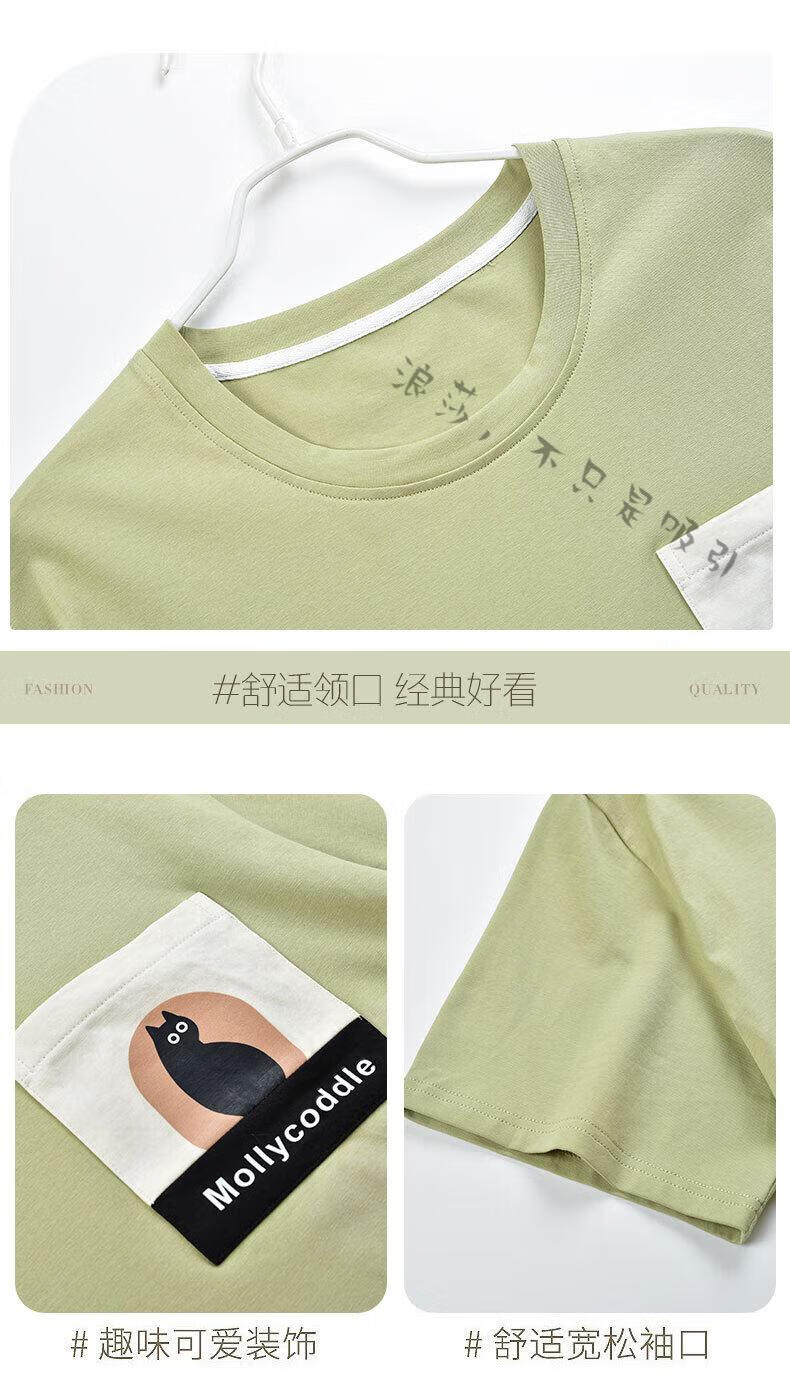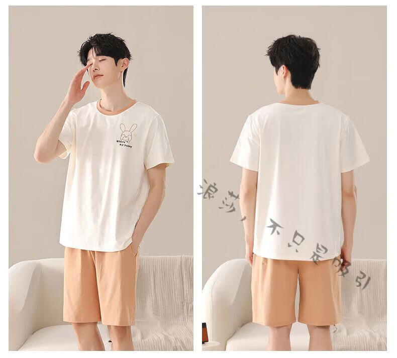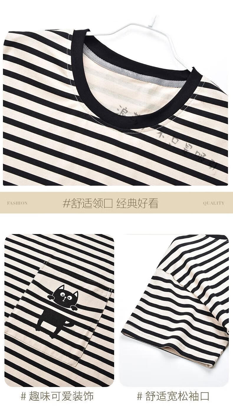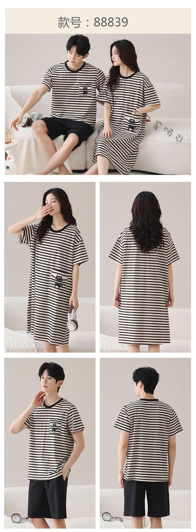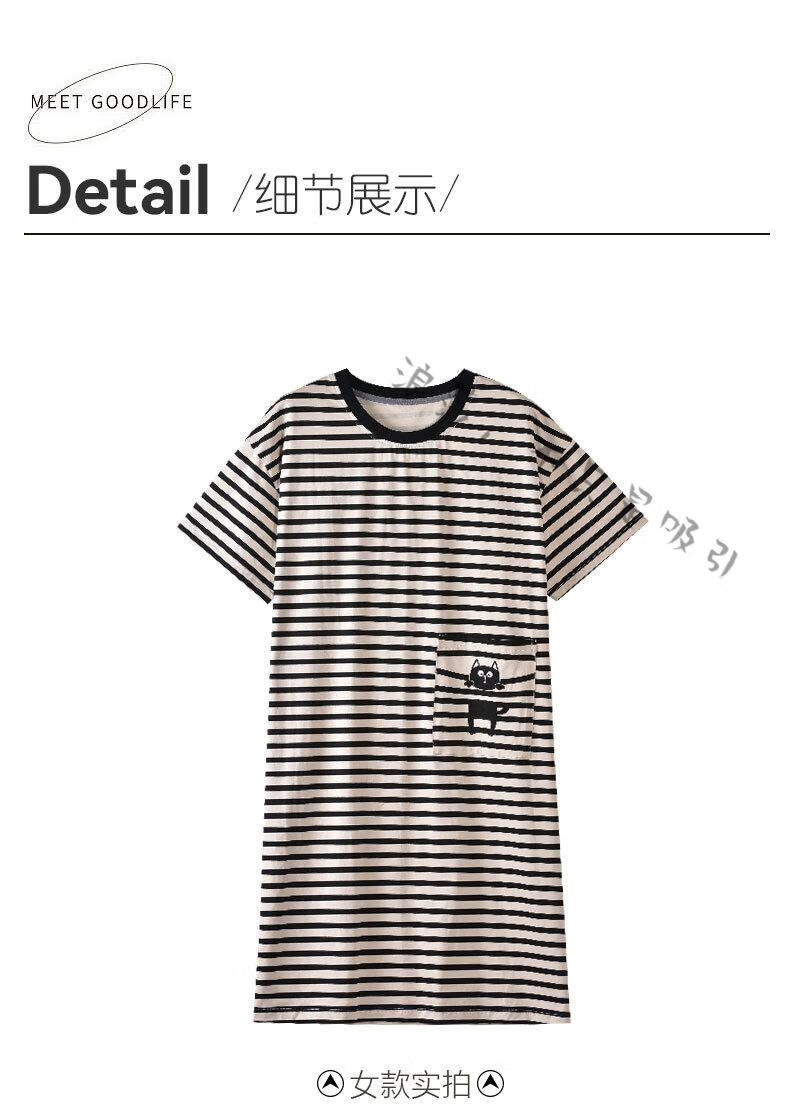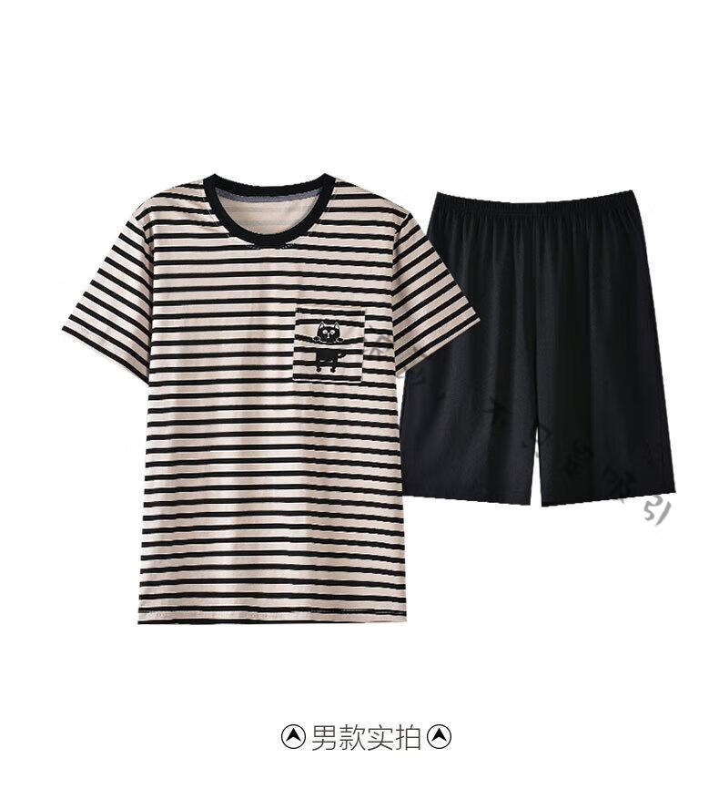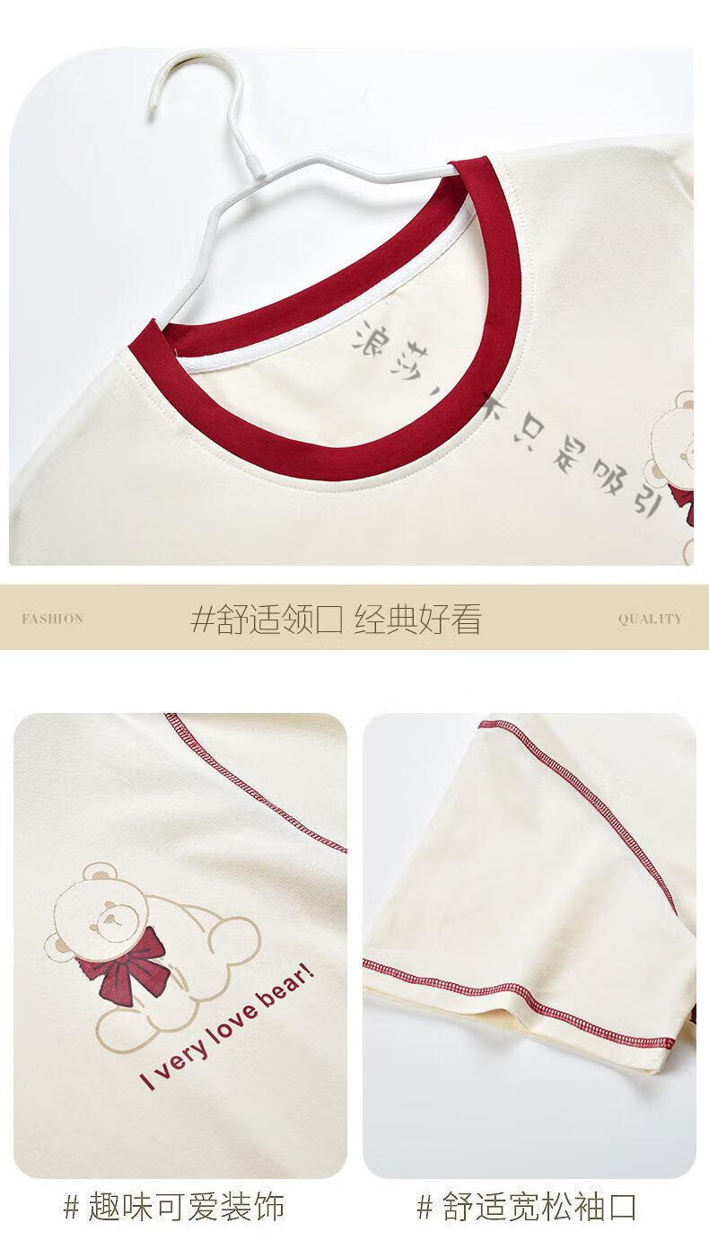 LangSha couple pajamas for women summer pure cotton short-sleeved cute cartoon sweet nightgown 100% cotton men's home wear set 88832 XL women + 3XL men