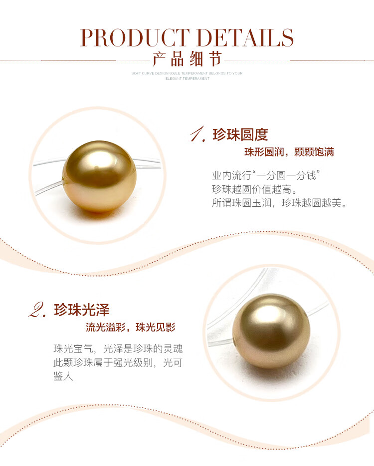Pearl Queen brand welfare bead glaze mermaid tears S925 silver seawater gold pearl necklace birthday gift for wife