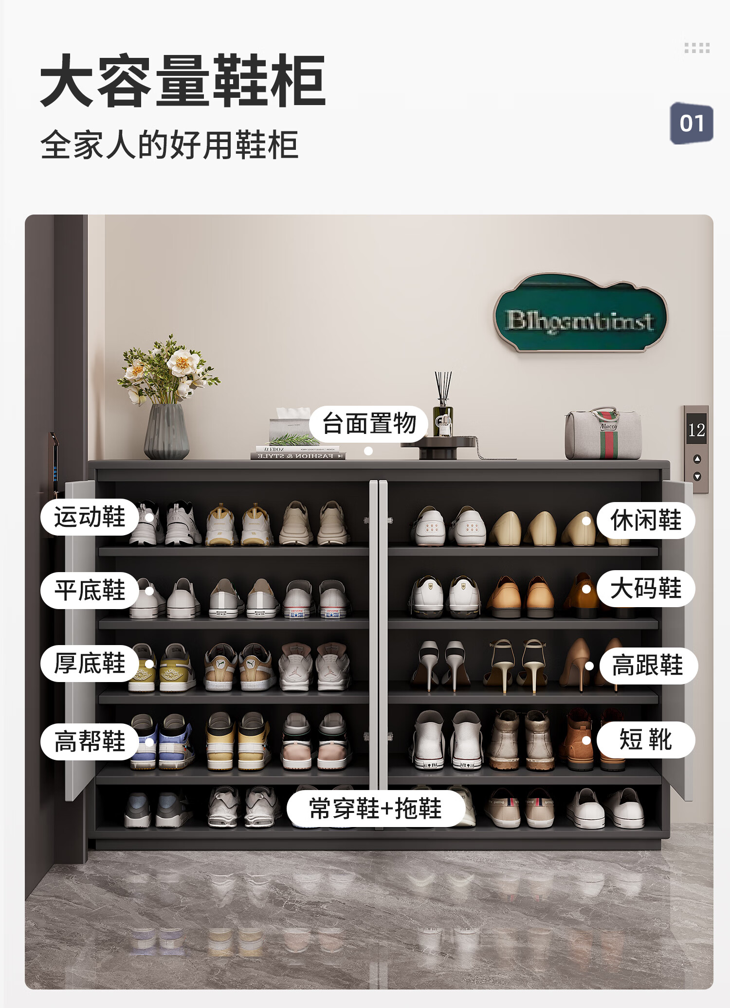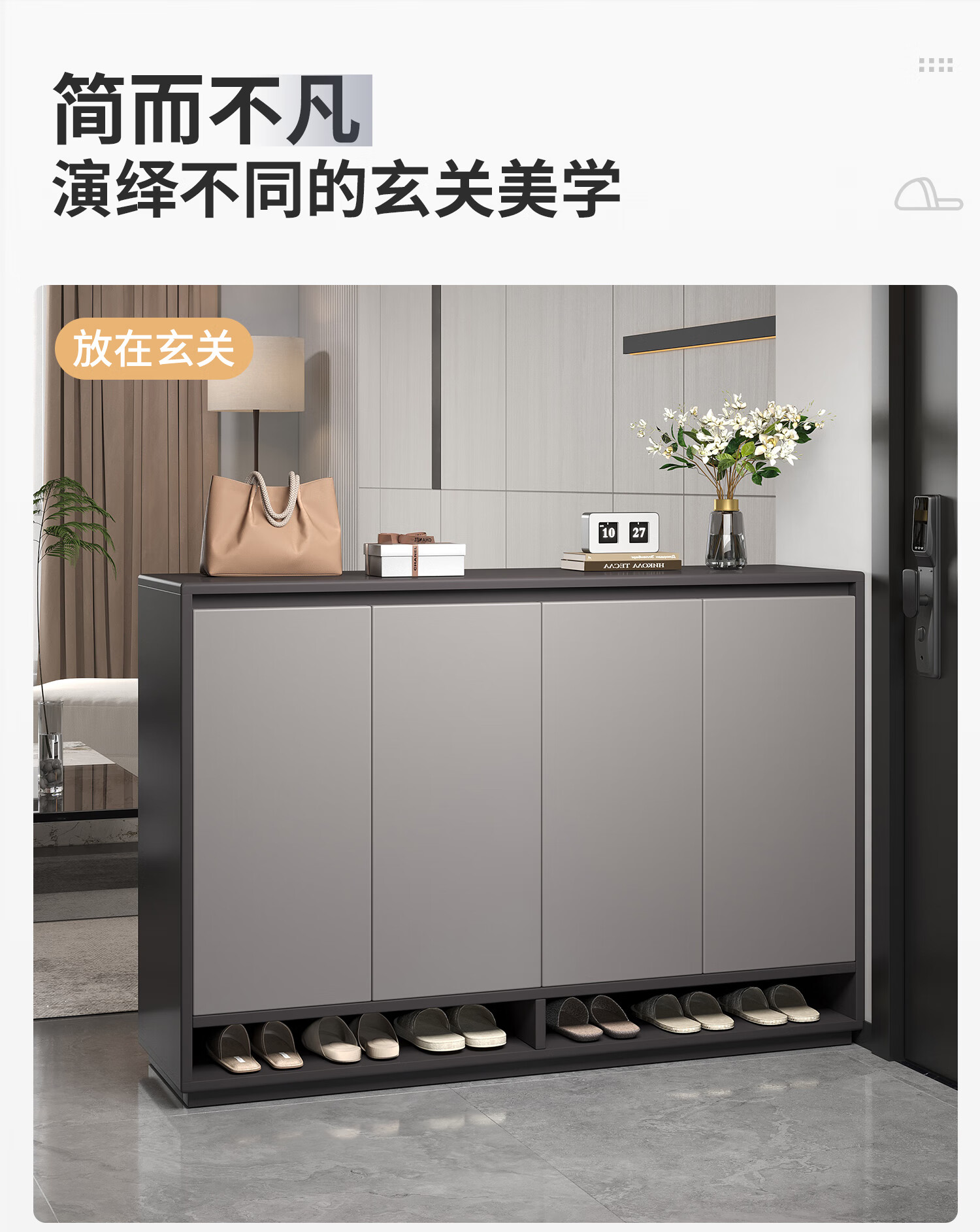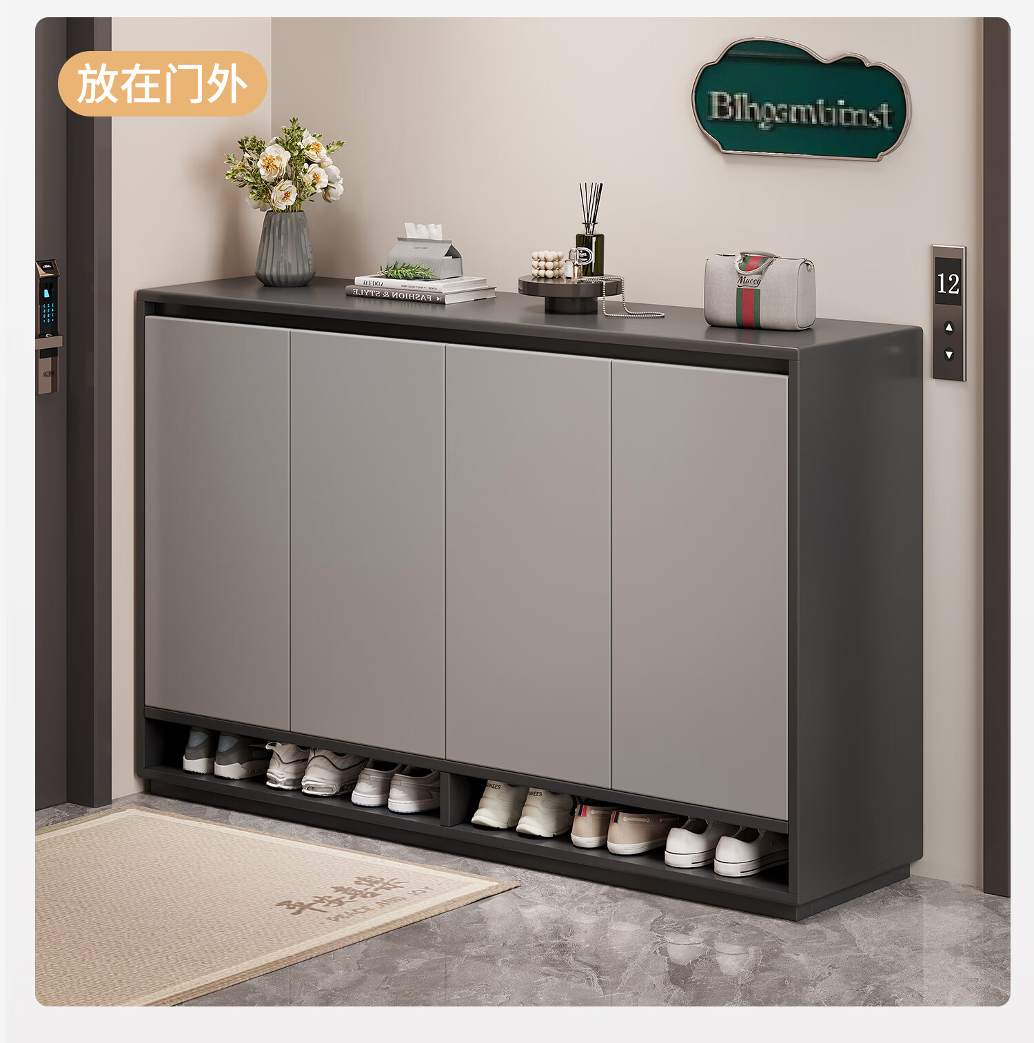Litai Shoe Cabinet Entry Cabinet Storage Cabinet One-piece Wall Solid Wood Shoe Rack Simple Multi-layer Home Corridor Entrance Cabinet Store Manager Recommends 120*30*98.5CM Classic Yashi Gray