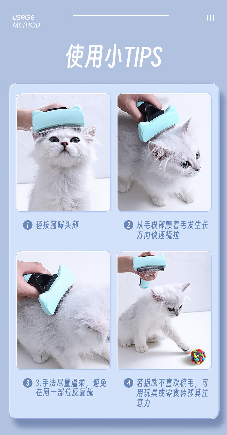 TYZAYR Japanese pet cat thinning comb cat comb, special de-floating hair cleaning tool, cat hair removal and thinning tool, only thinning, no shaving, curved comb teeth, sky blue large size