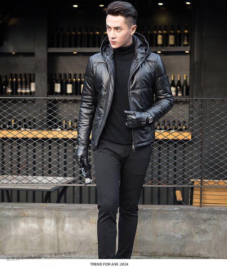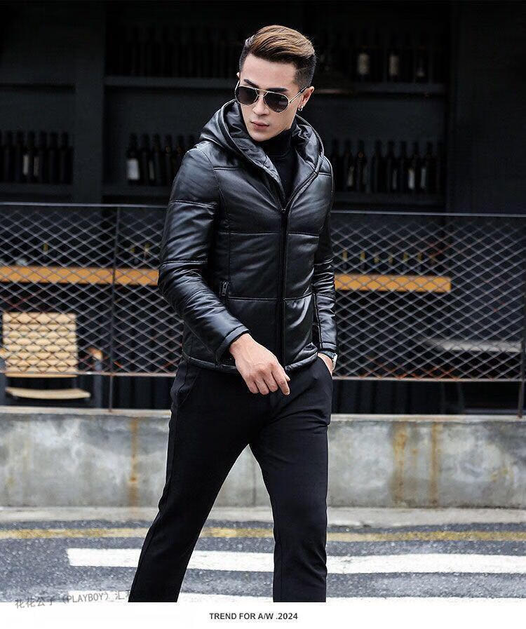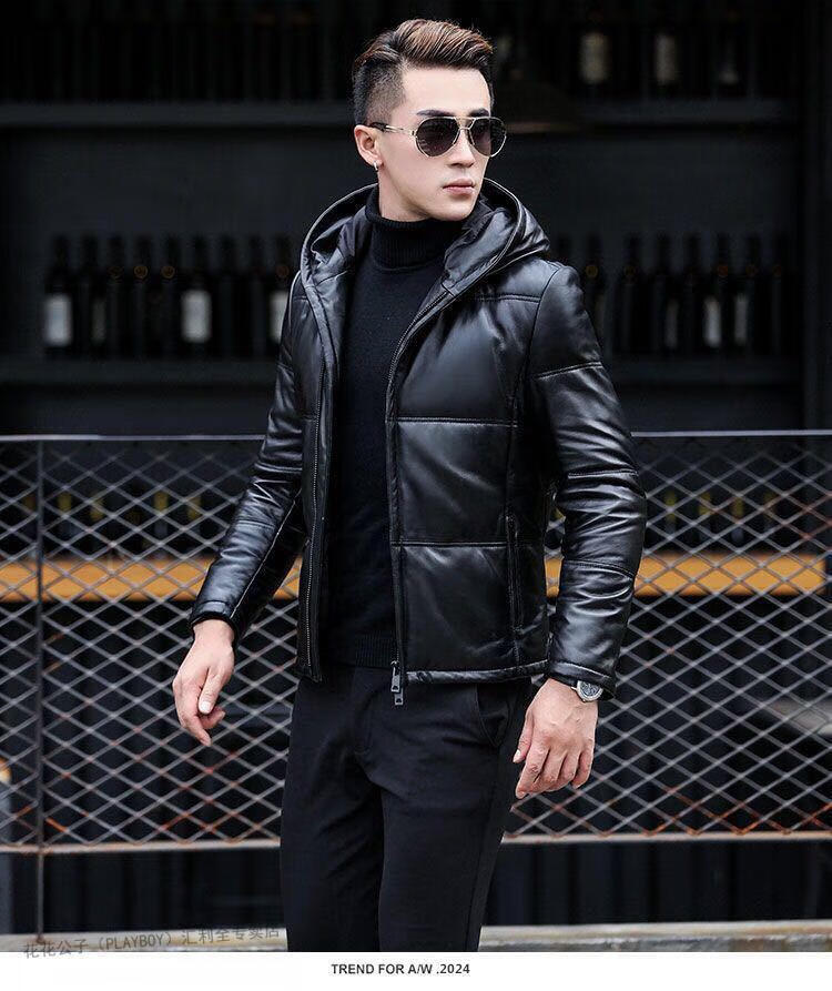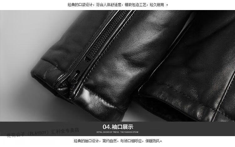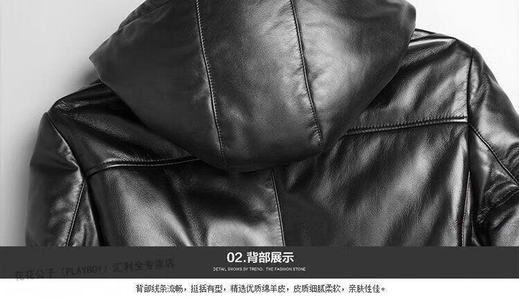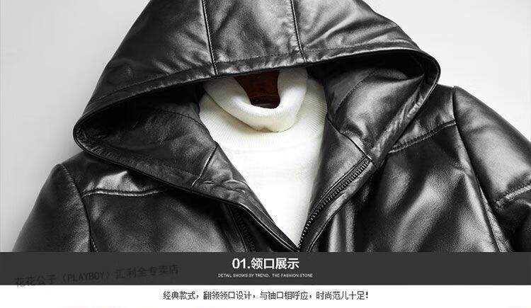 花花公子(PLAYBOY)2025冬季新款真皮质感皮衣男短款潮流修身夹克连帽加厚休闲外套男 黑色 2XL 180码-140-155斤