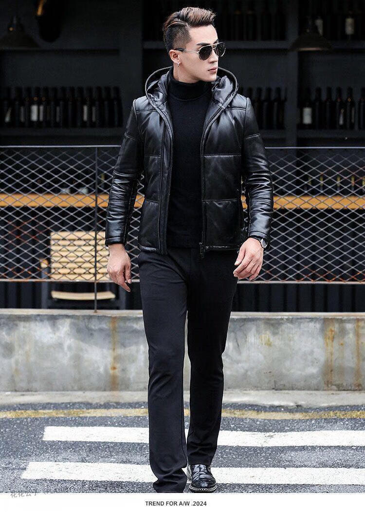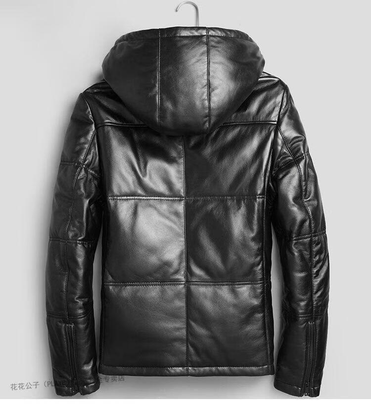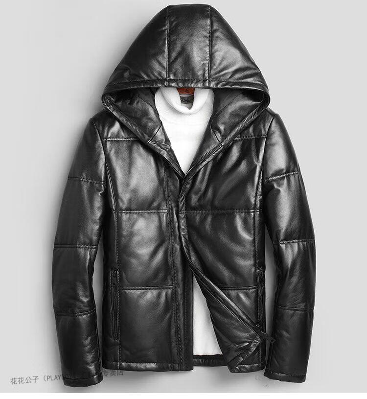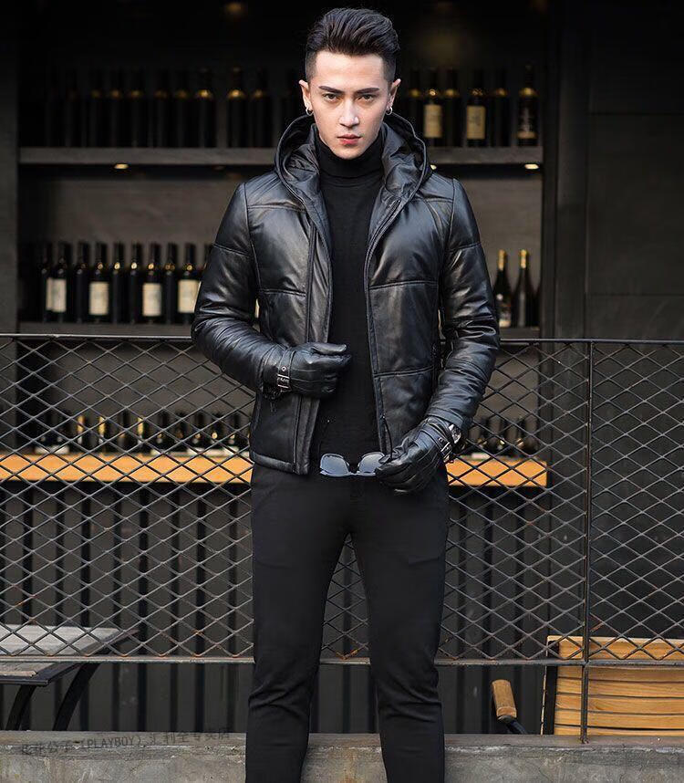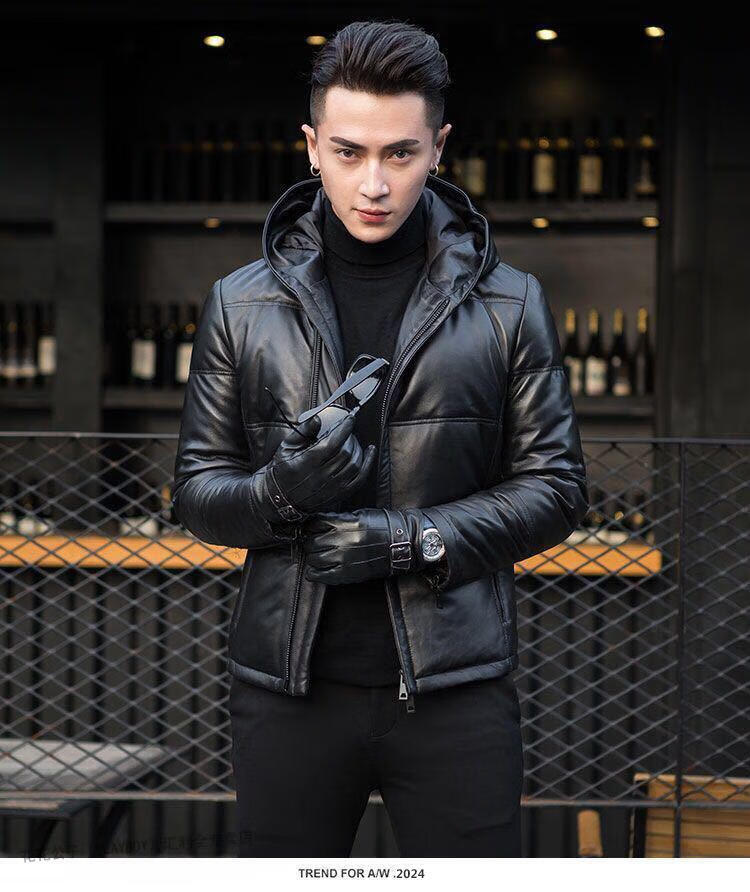 花花公子(PLAYBOY)2025冬季新款真皮质感皮衣男短款潮流修身夹克连帽加厚休闲外套男 黑色 2XL 180码-140-155斤
