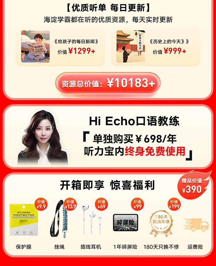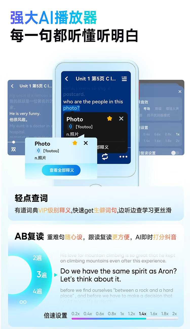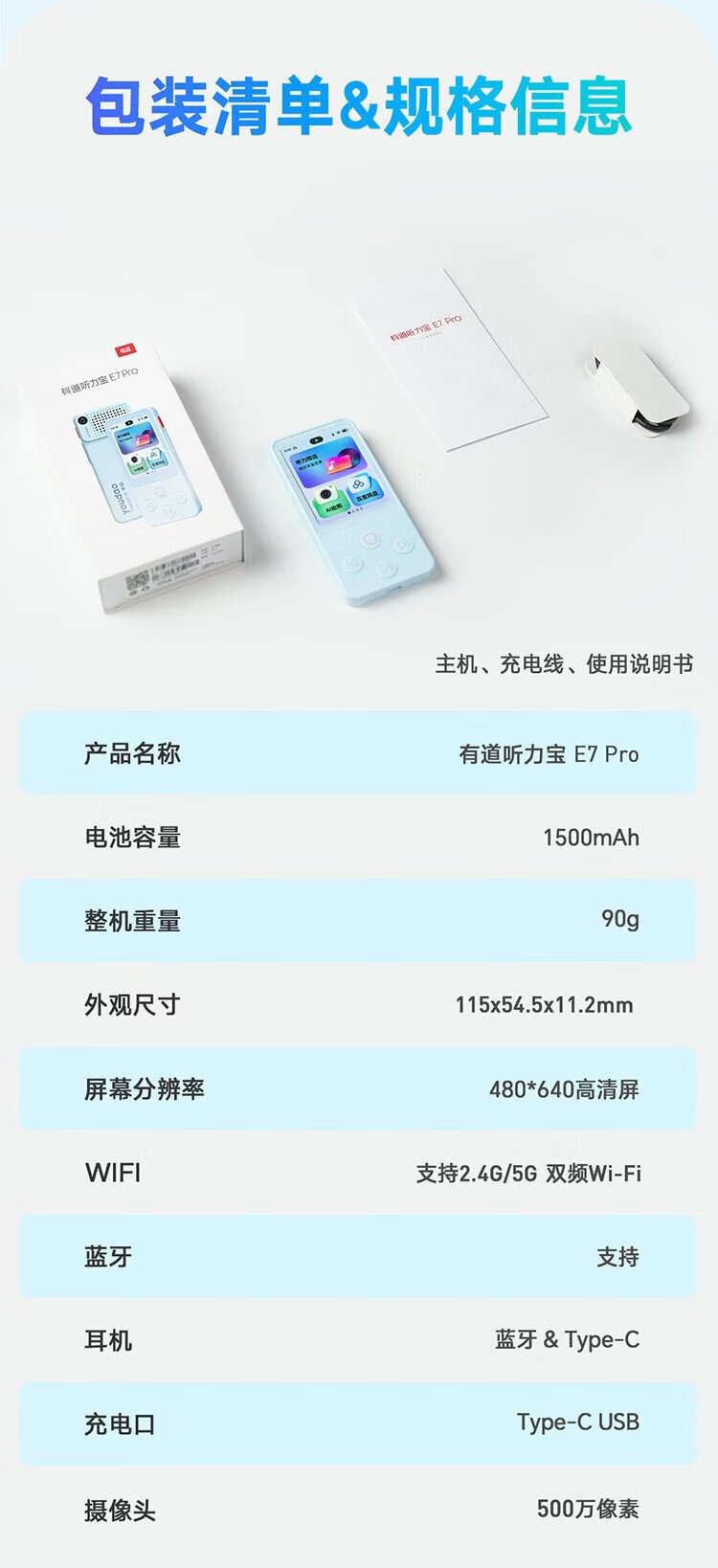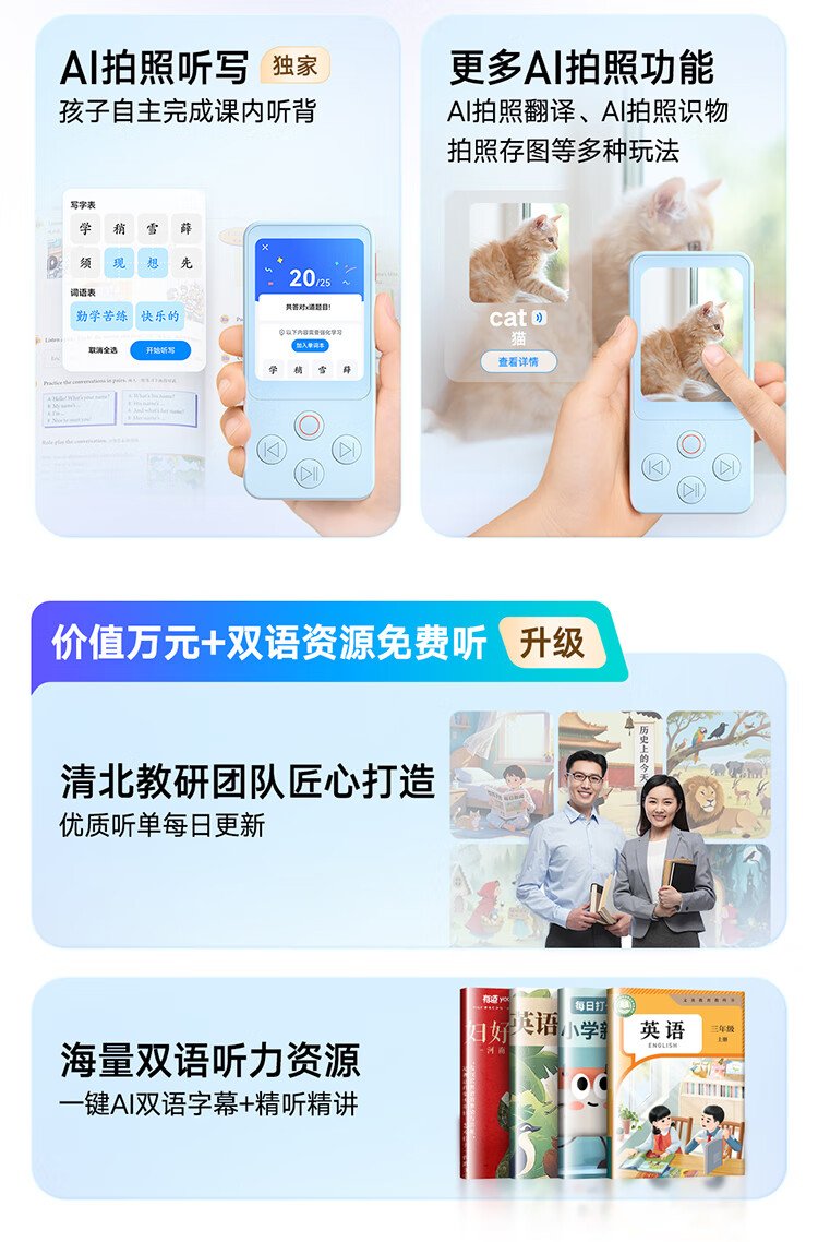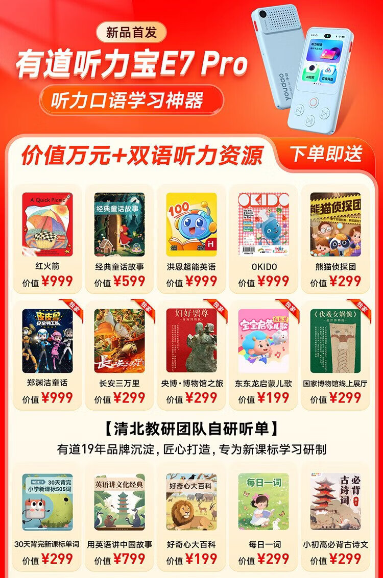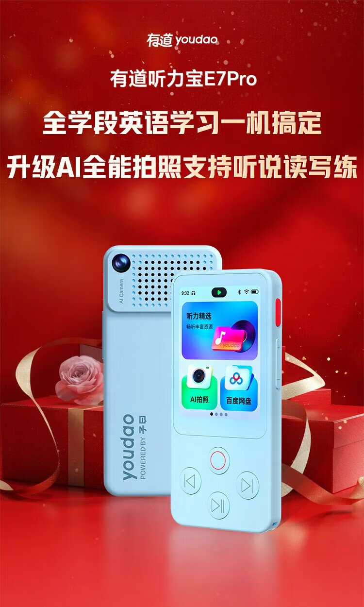 Youdao Hearing Treasure E7P 15-day trial repeater, walkman, English learning listening machine, listening player, listening machine, primary school and high school textbooks, synchronized listening to new curriculum standards, accessories, egg lanyard