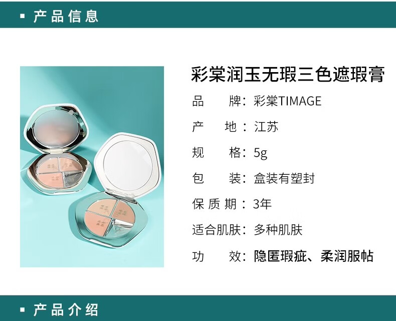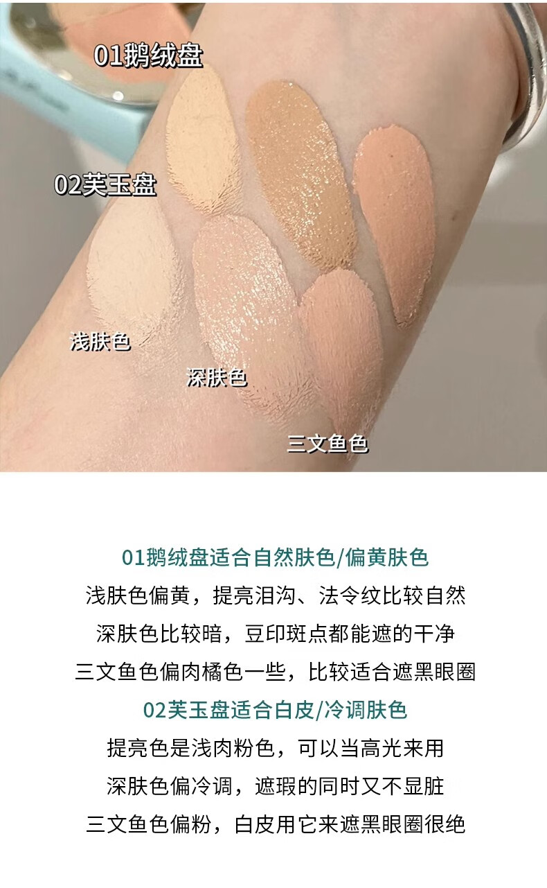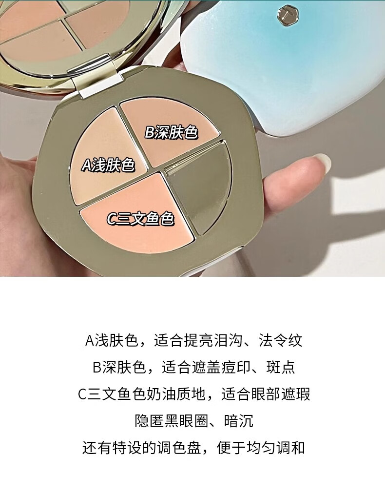 Caitang TIMAGE Concealer Palette Concealer for Acne Marks and Dark Circles Long-Lasting, Non-Removing Salmon Highlight to Brighten Tear Troughs Runyu Flawless Three-Color Concealer 01 Goose Velvet Palette 5g