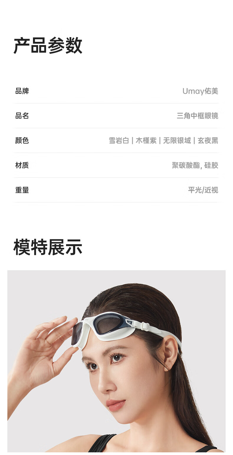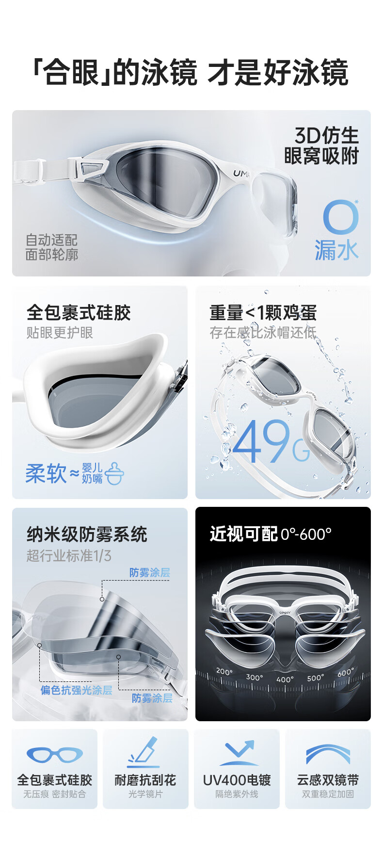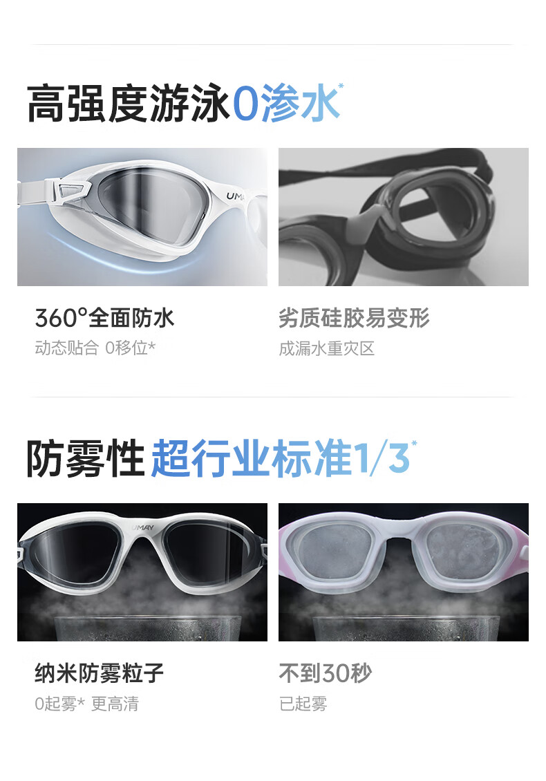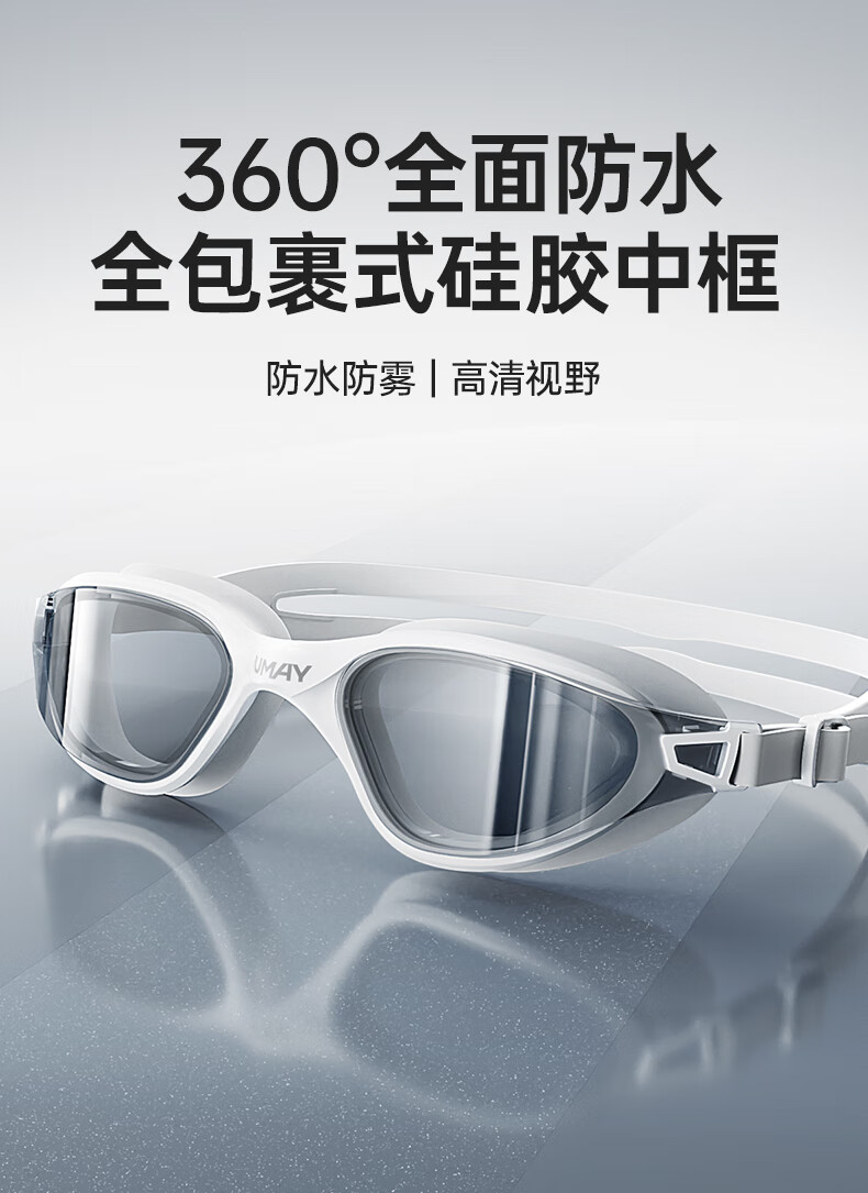 UMAYumay Swimming Goggles HD Anti-fog and Waterproof Unisex Snow Rock White - Upgraded Integrated Nose Bridge Flat Light