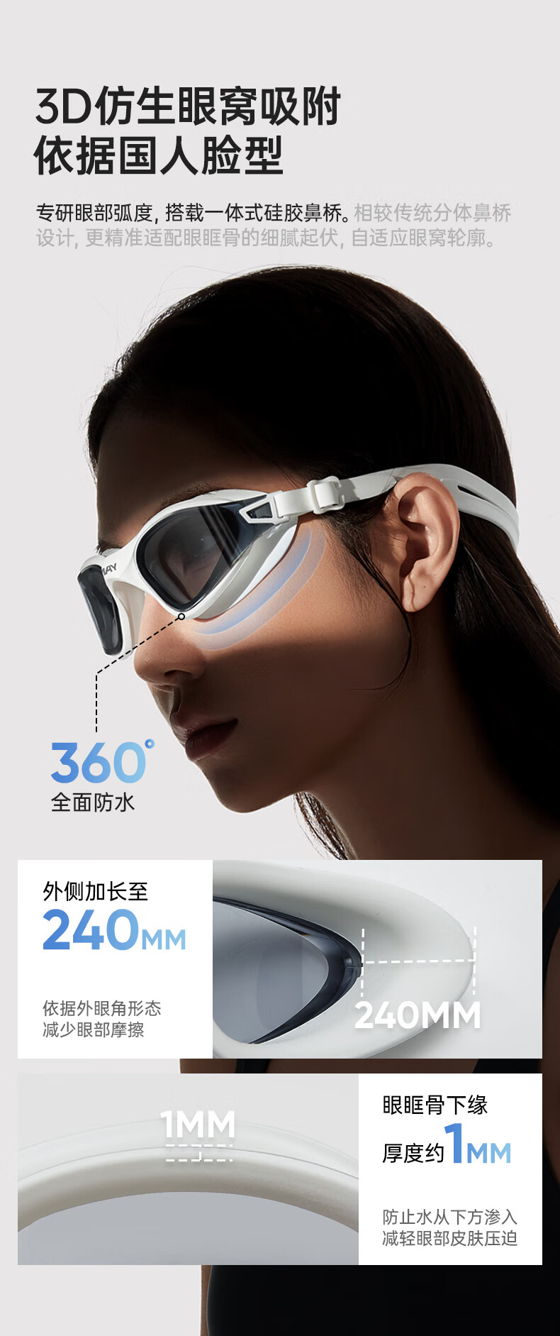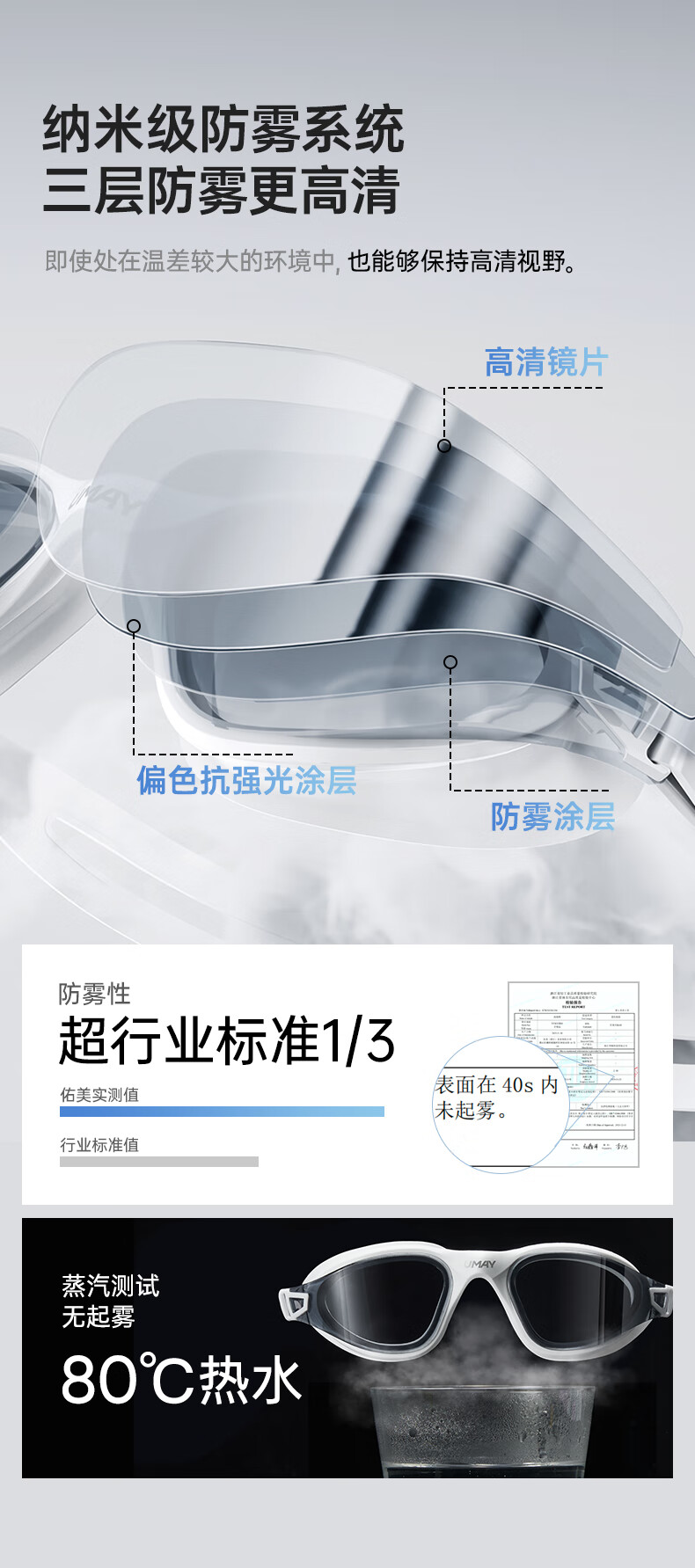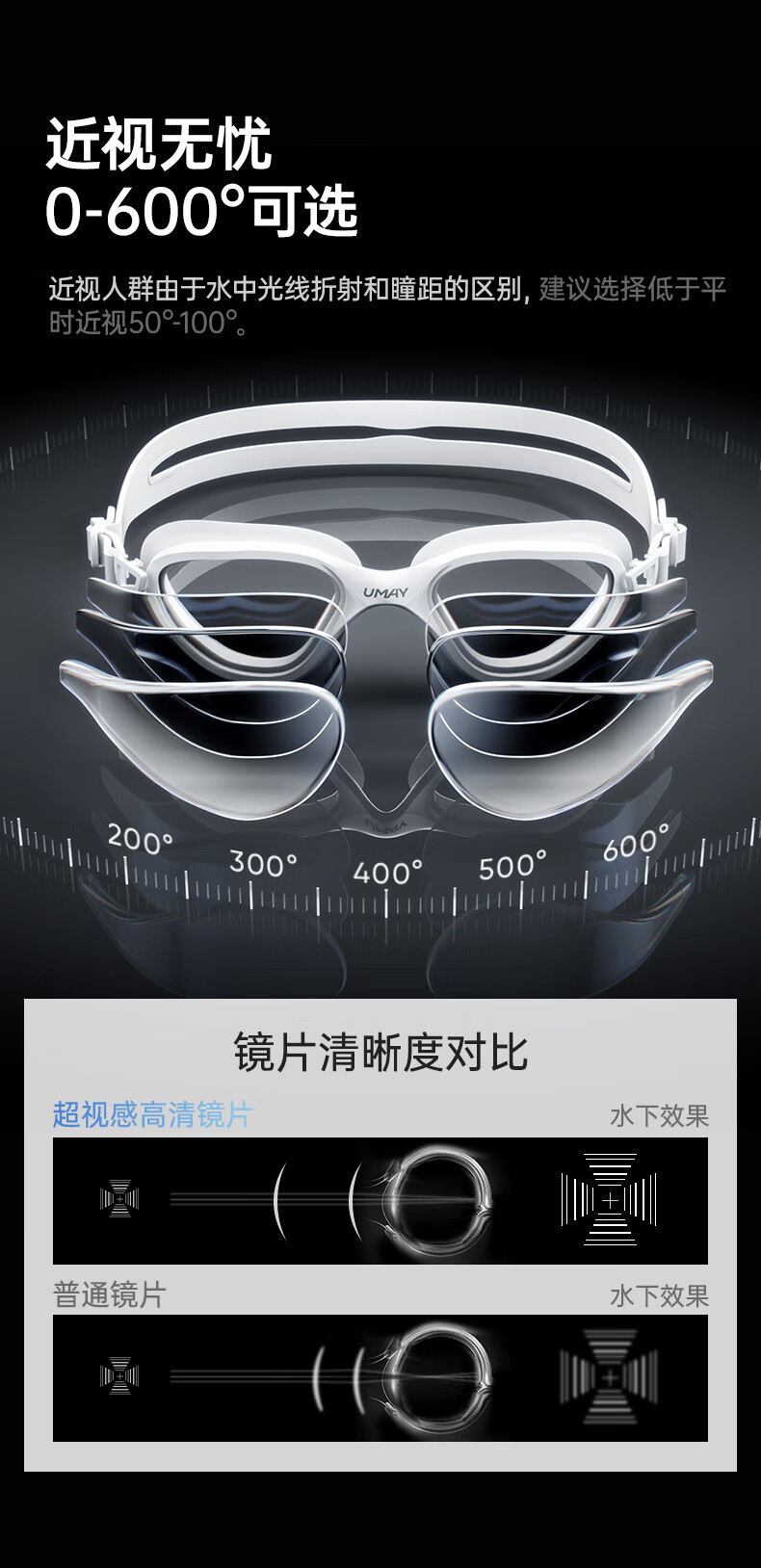 UMAYumay Swimming Goggles HD Anti-fog and Waterproof Unisex Snow Rock White - Upgraded Integrated Nose Bridge Flat Light