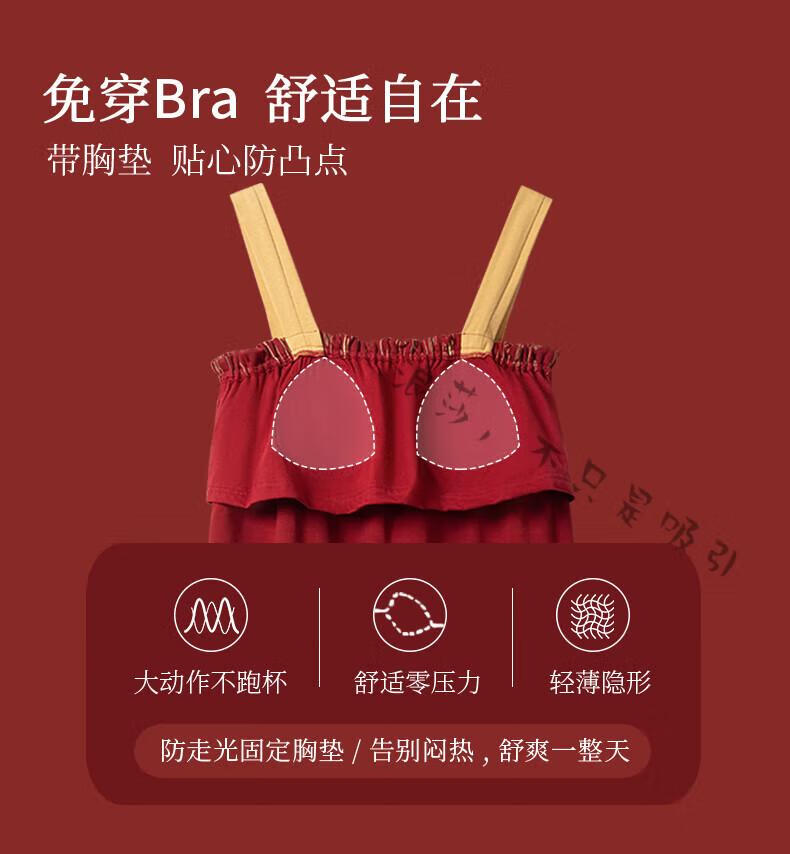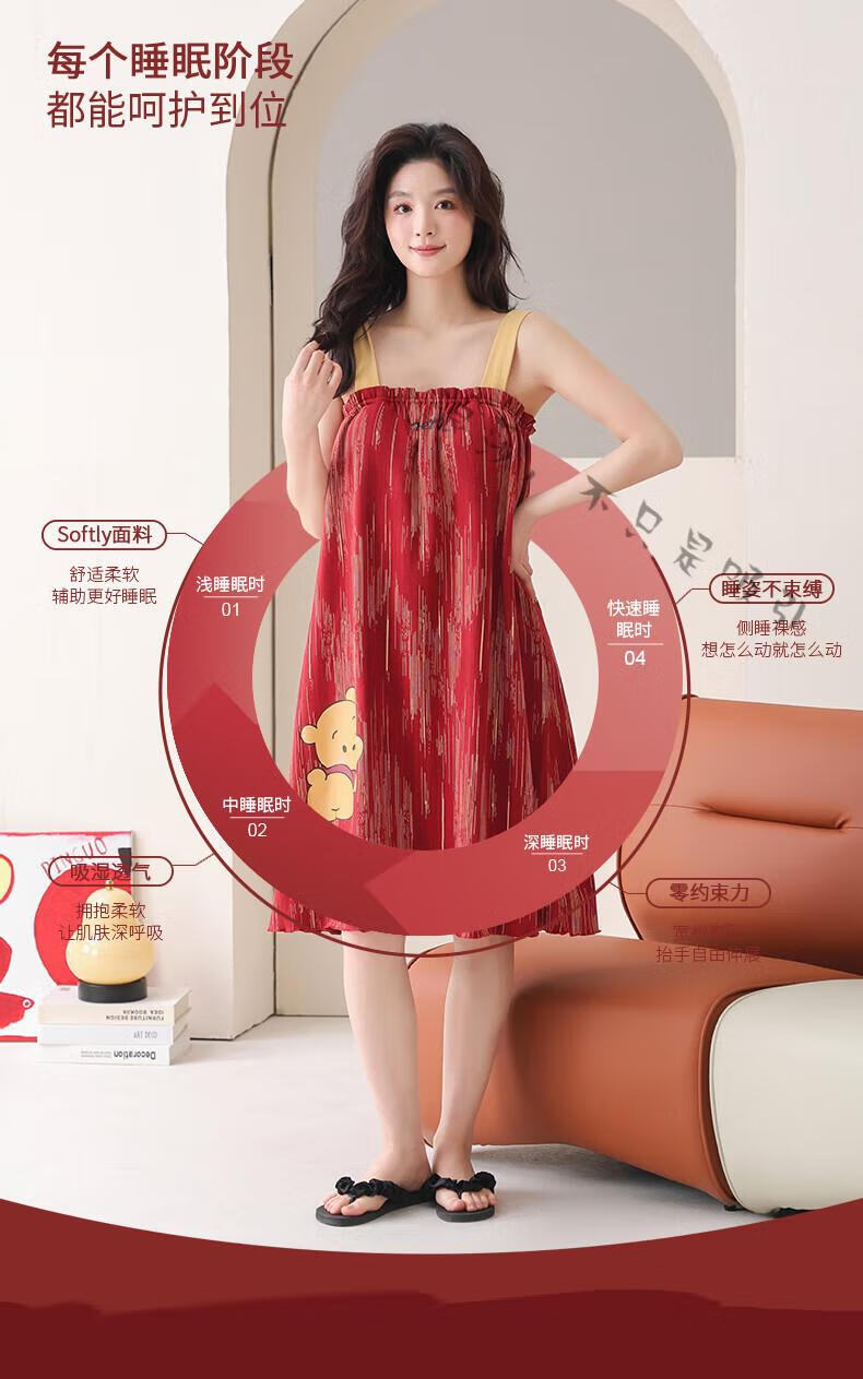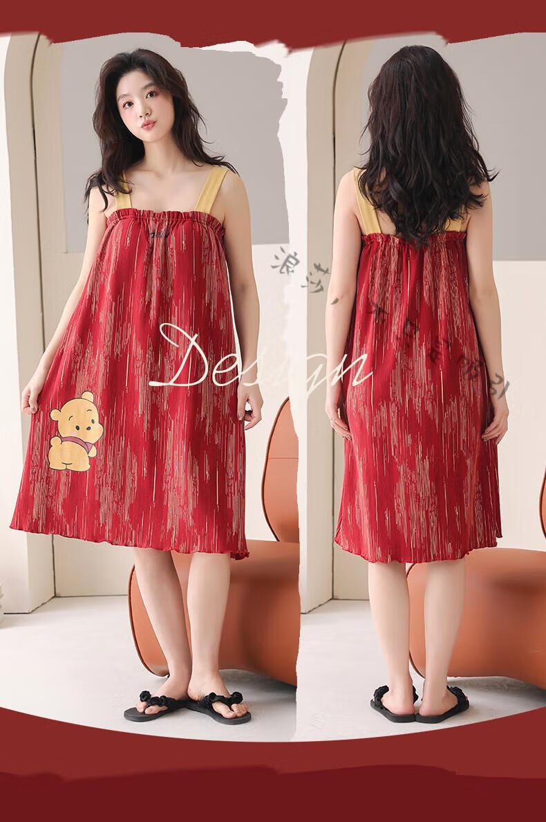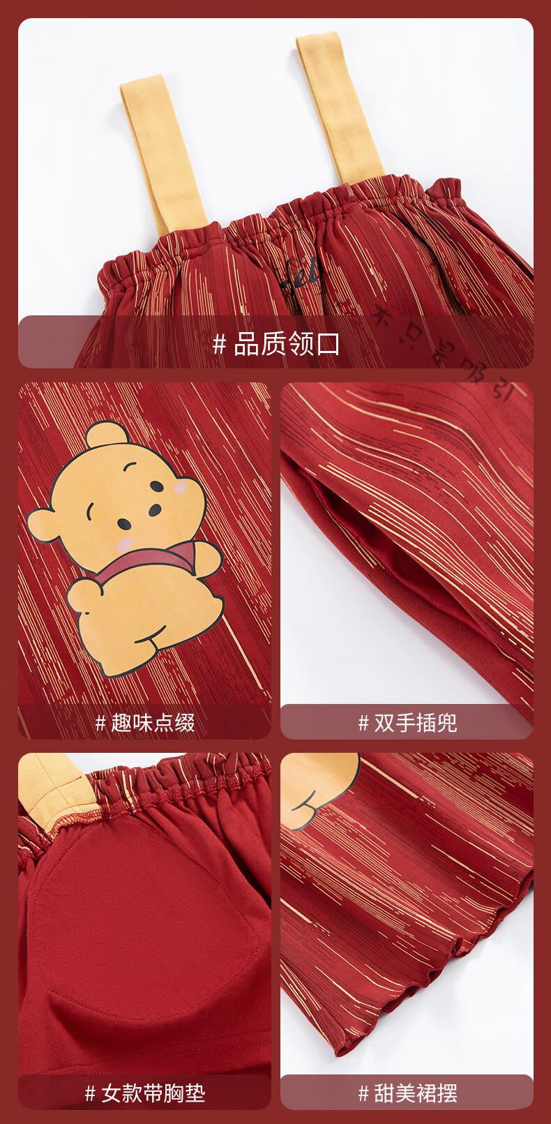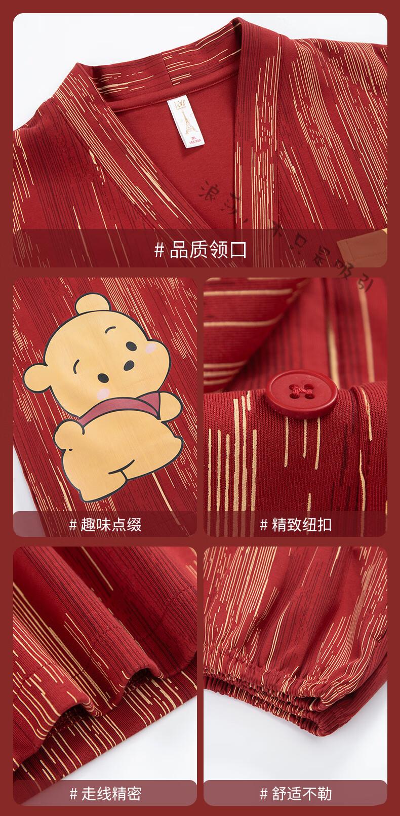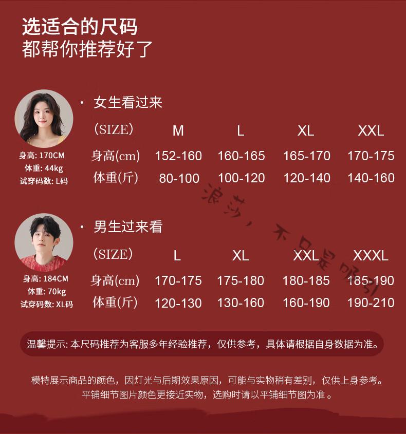 LangSha Couple Pajamas One Male One Female Summer Pure Cotton Thin Red Nightgown Wedding Festive Wedding 100% Cotton Home Clothes 7109 XL Female + 2XL Male