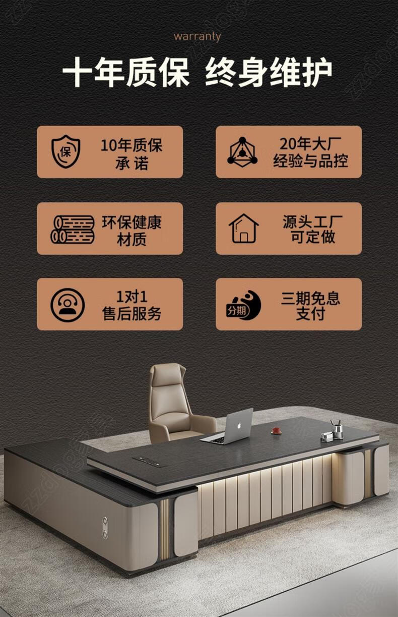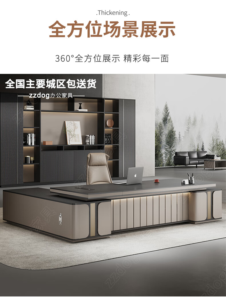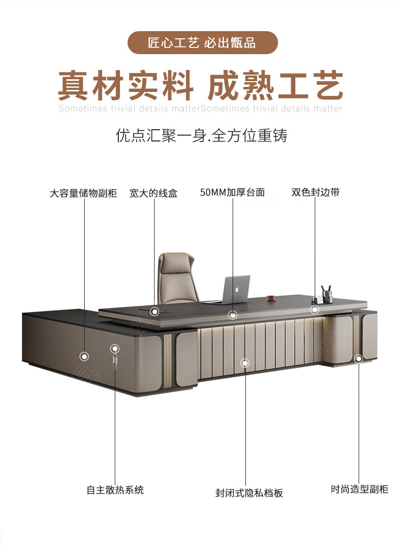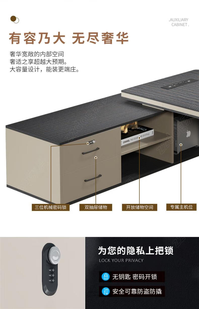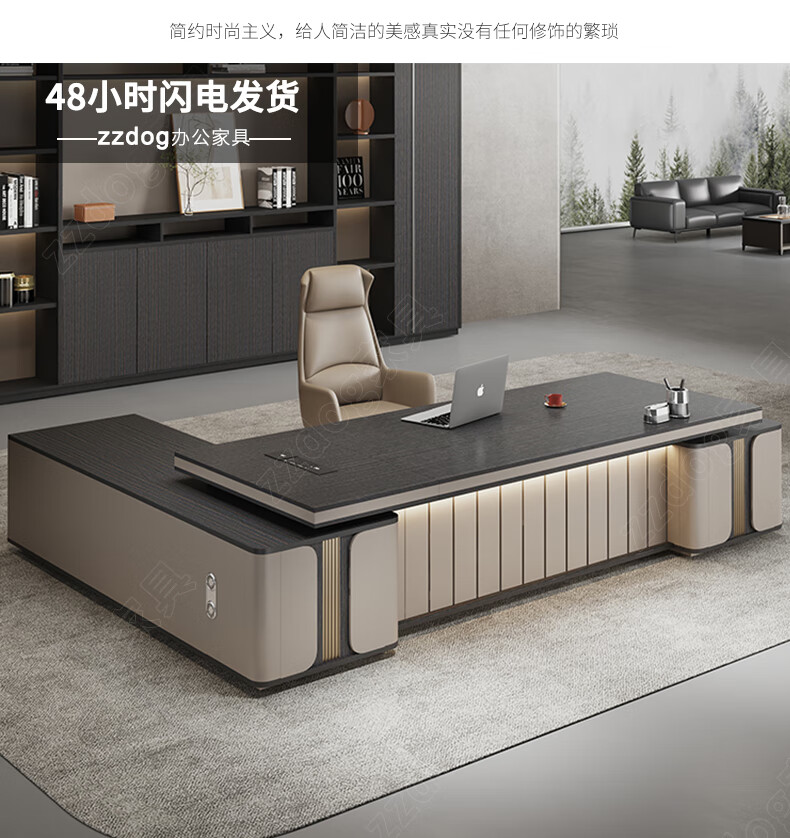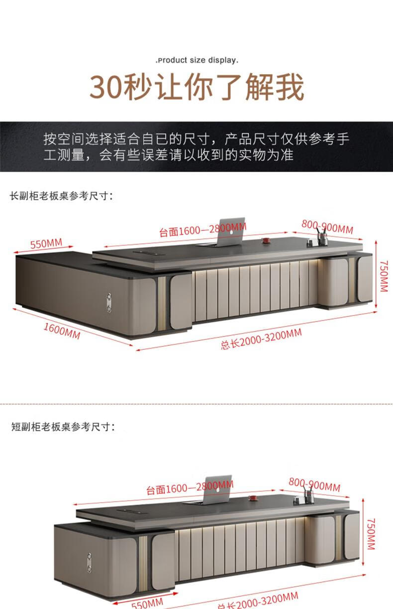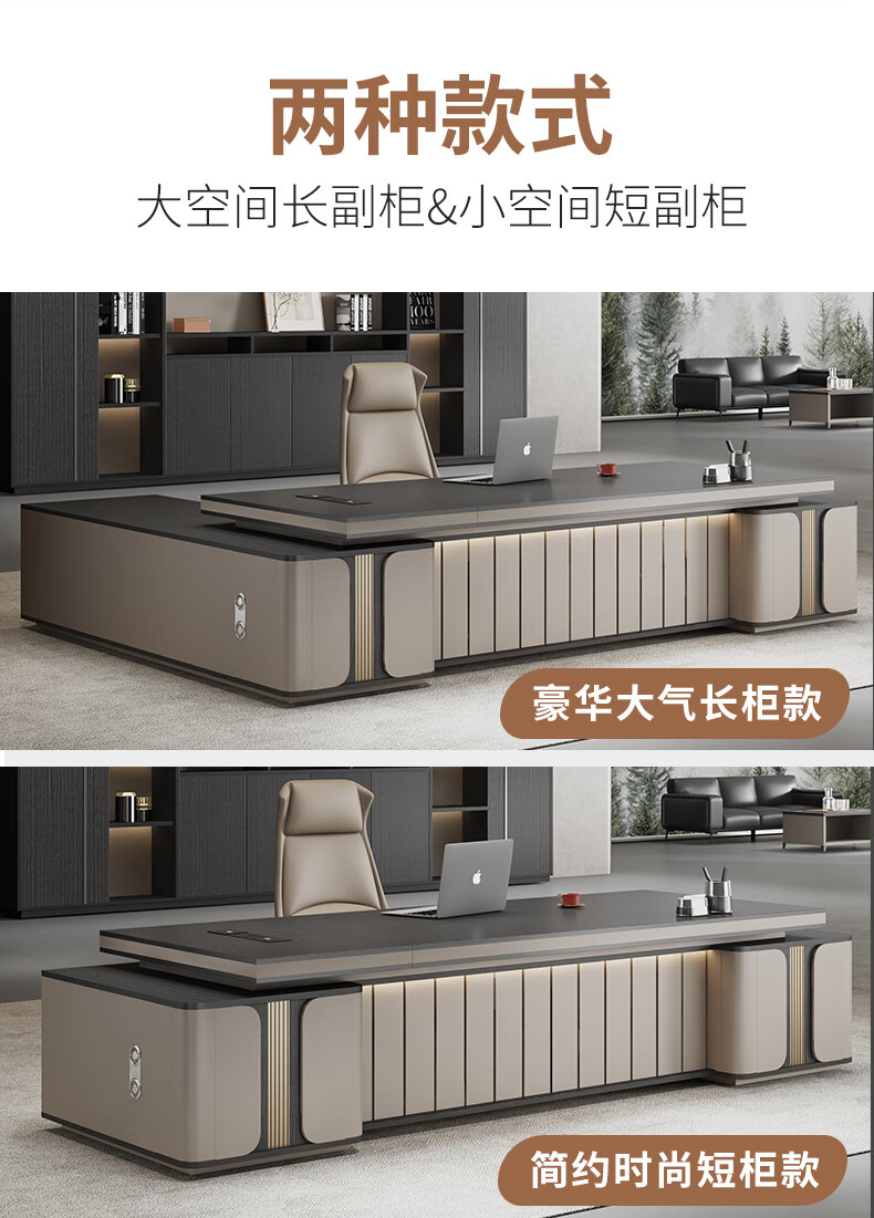 Litang Light Luxury Short Cabinet Boss Office Desk and Chair Combination High-end President Office Leader Furniture Manager Single Atmosphere Desk 2.8 Meters Boss (Short Deputy Cabinet)
