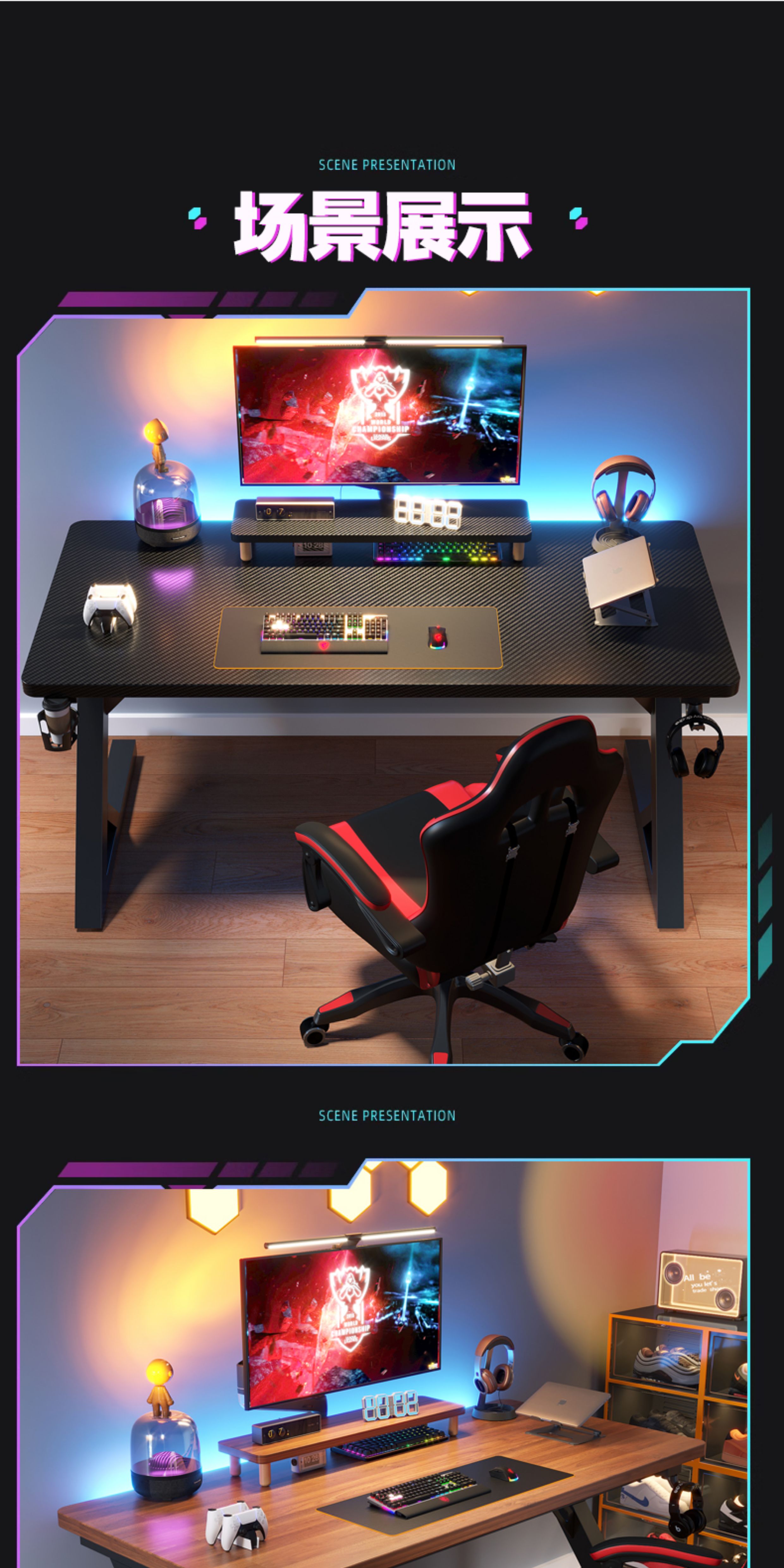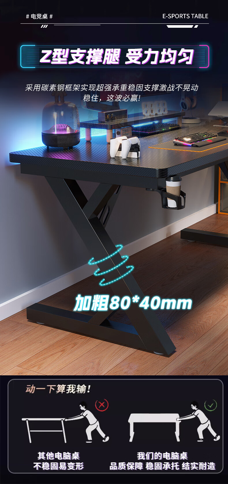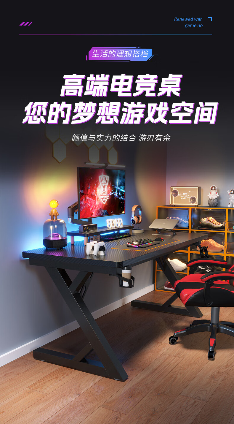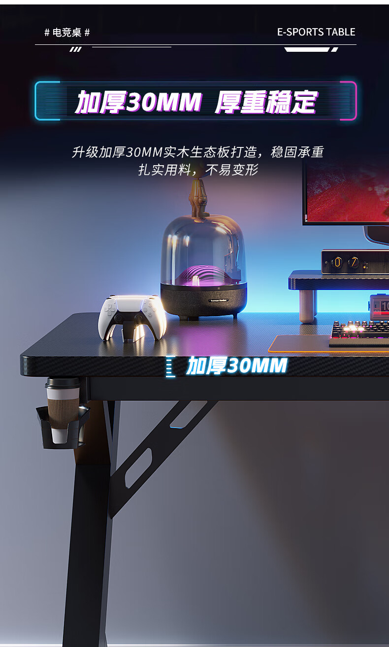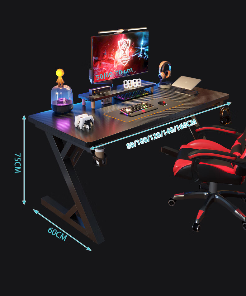 Sosta solid wood computer desk desktop bedroom home office desk carbon fiber e-sports table double desk Internet cafe game table black carbon fiber 3 cm thick black legs length 100*width 60*height 75 whole board