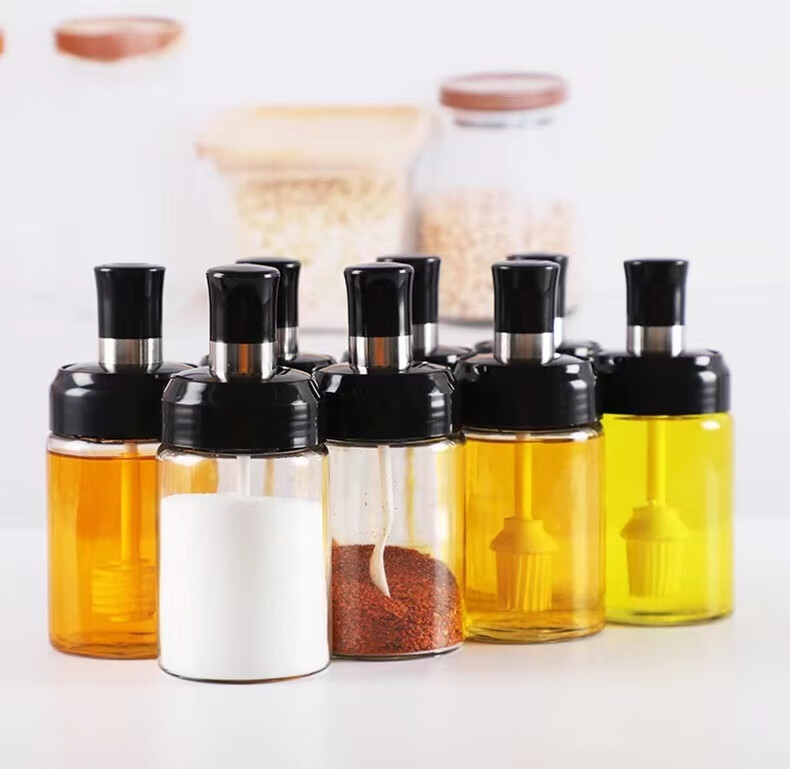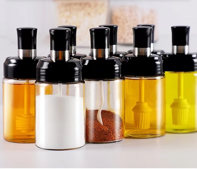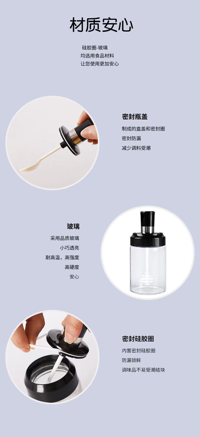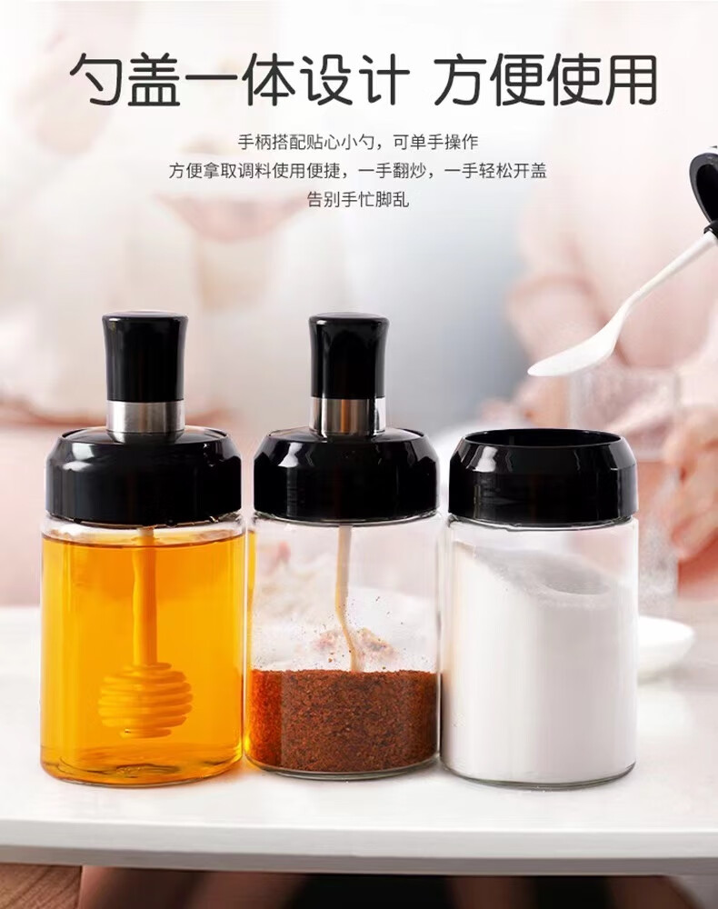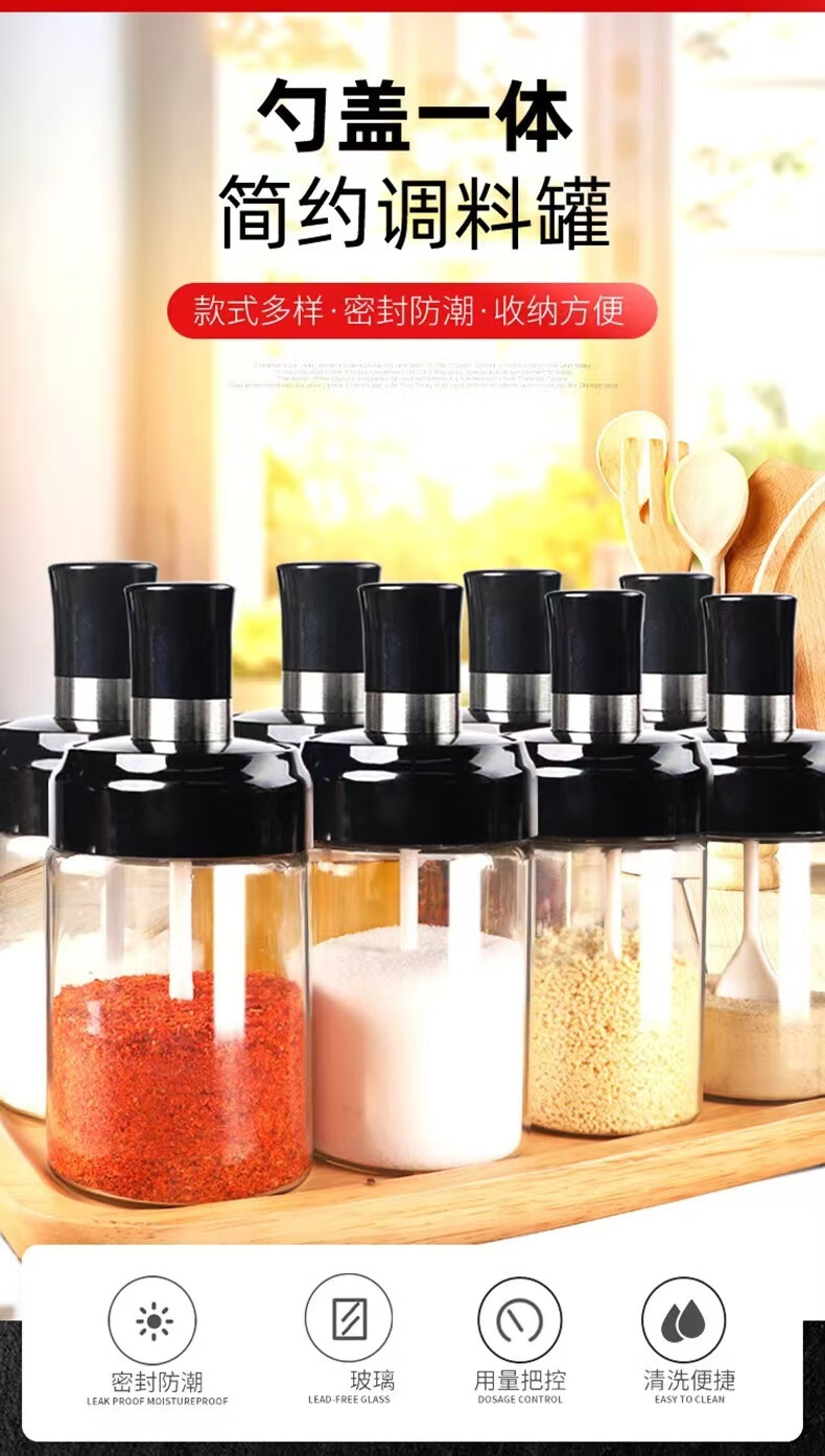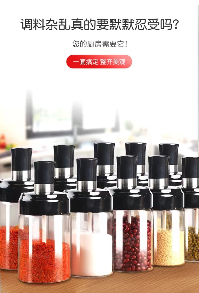 Baichao seasoning kitchen storage glass seasoning combination set household seasoning bottle seasoning bottle MSG salt shaker spoon lid integrated salt shaker seasoning label