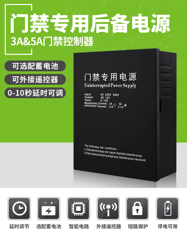 New Jiacheng access control power supply 12v5a controller backup power supply UPS battery 12v3a access control dedicated power supply 12V5A access control power supply (excluding battery)