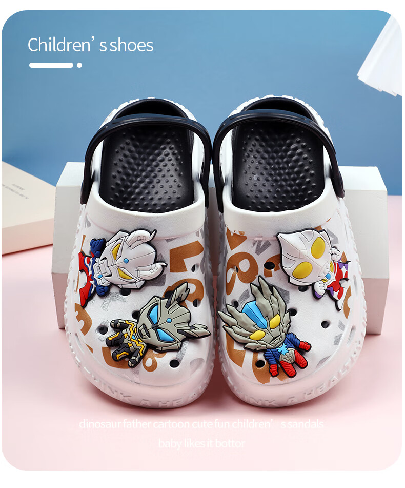 2025 new style sandals for children, fashionable and cute wading shoes, outdoor beach slippers, white and black 24