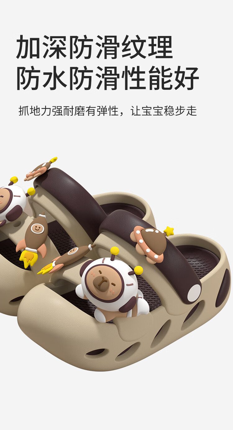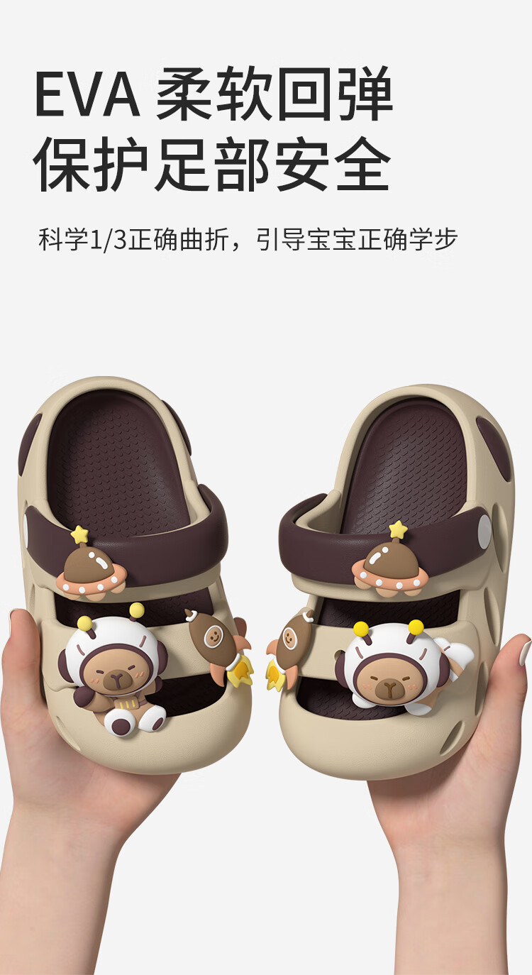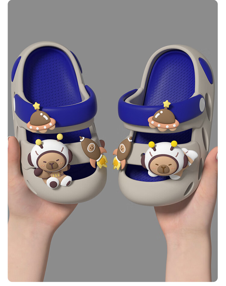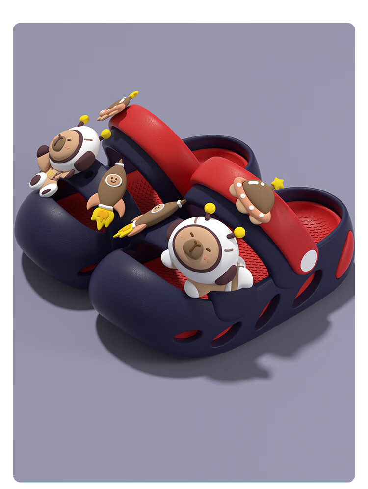 2025 New Children's Crocs Anti-Slip Sandals Indoor Anti-Slip Boys' Sandals Two-Wear Slippery Dark Blue Space EVA 16 Inner Length 16cm Suitable for Foot Length 15cm