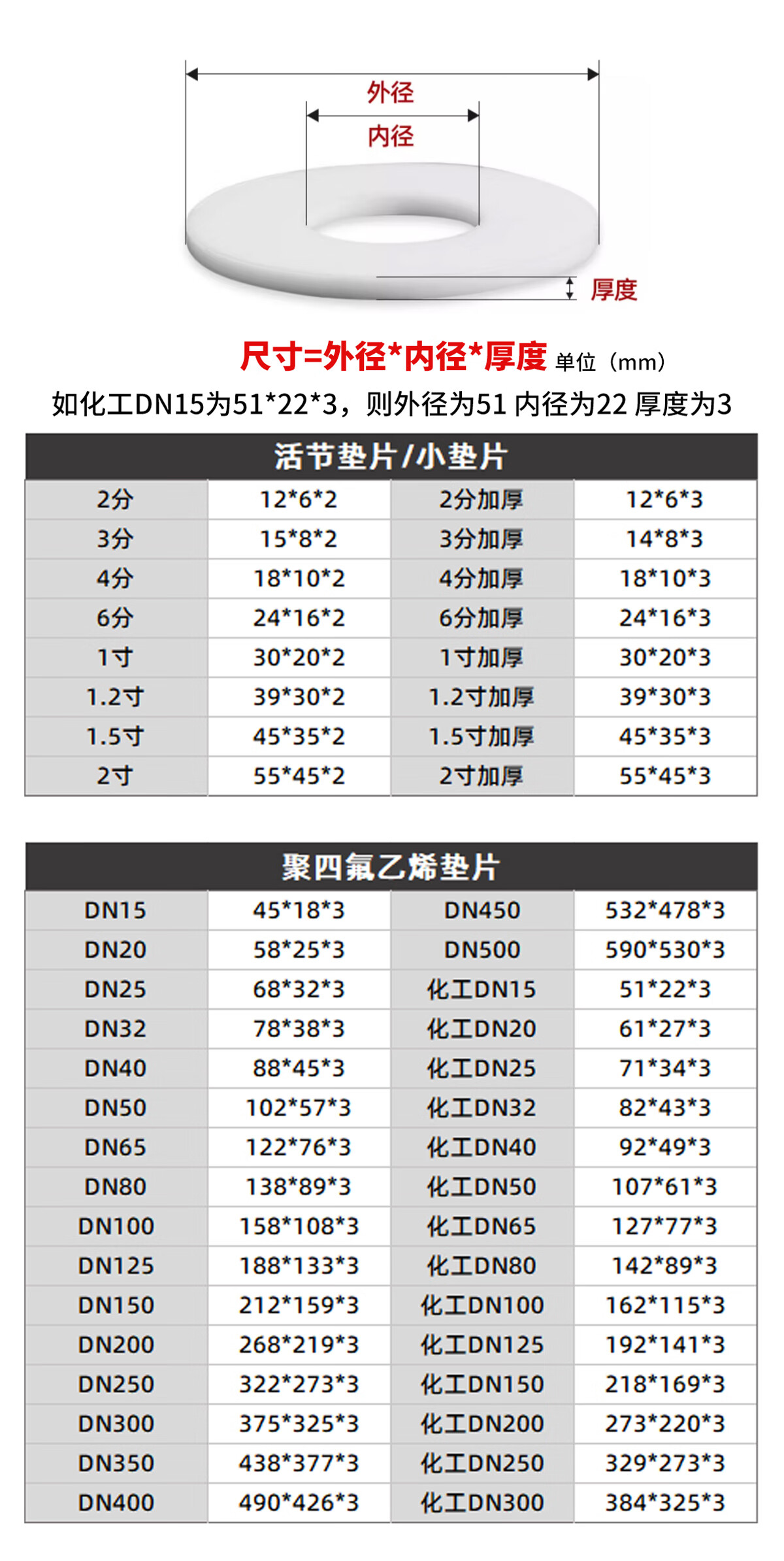 Guwanji PTFE gasket seal flange PTFE gasket ptfe Teflon high temperature resistant thickened gasket custom-made DN50 (102*57*3) 2 pieces