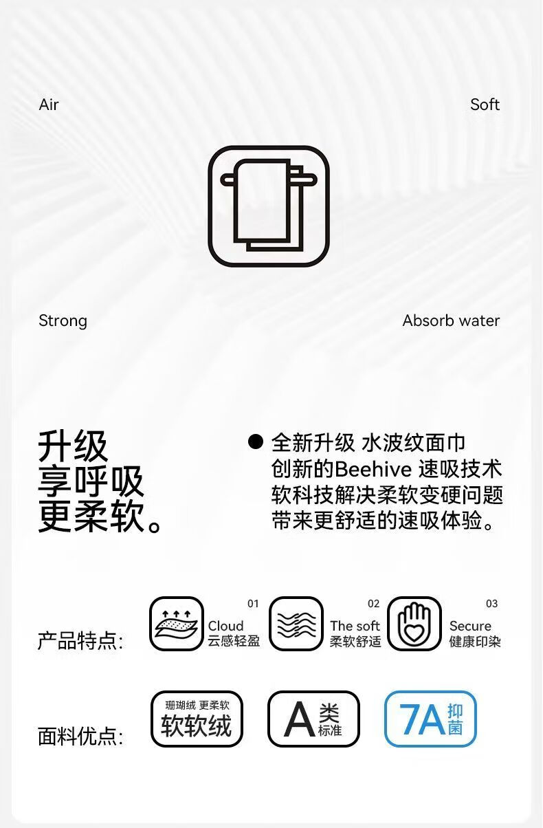 7A antibacterial towel, pure cotton, absorbent, soft and lint-free, adult household face towel, enlarged, thickened and quick-drying, gray 35*75cm