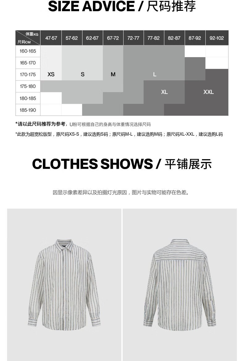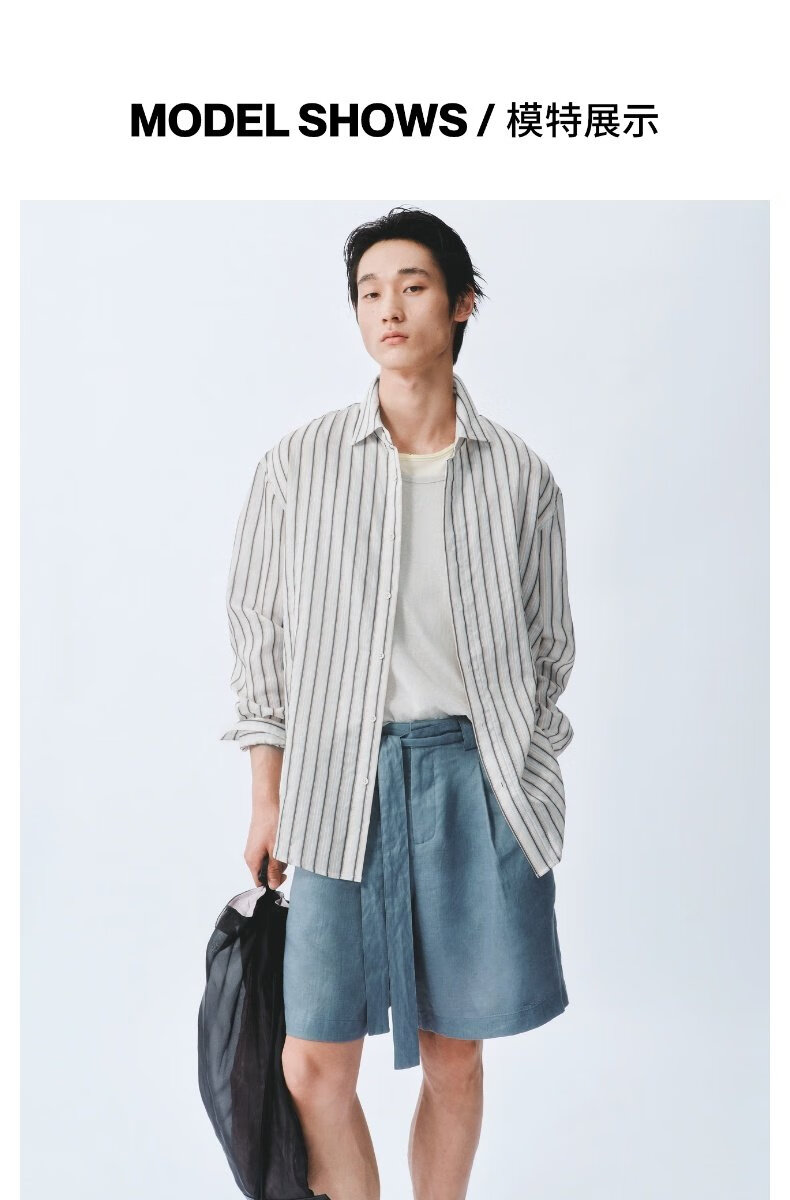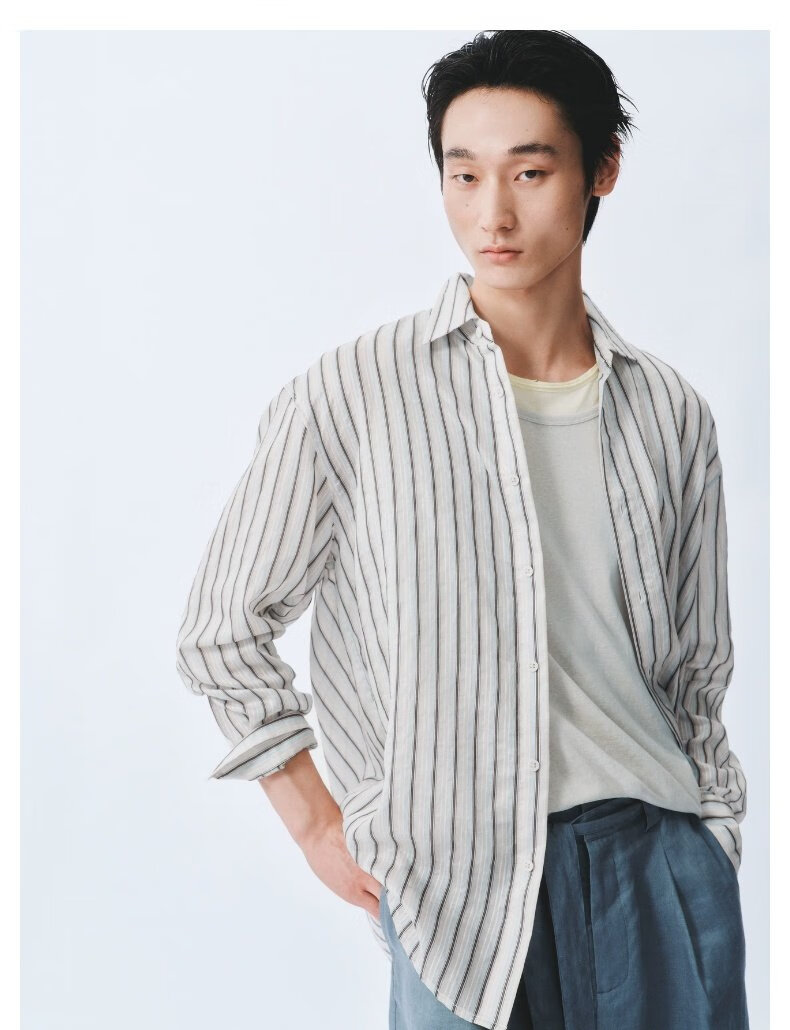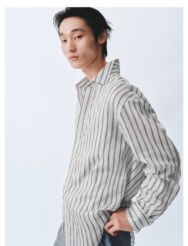UR2026 Spring New Men's Commuting Versatile Contrast Color Striped Super Loose Cardigan Shirt UMF250070 Light Blue Stripes (Loose) S (XS-S)