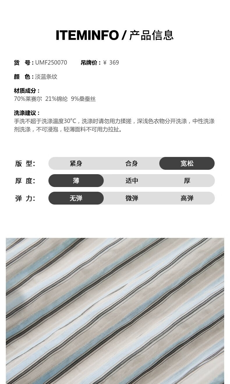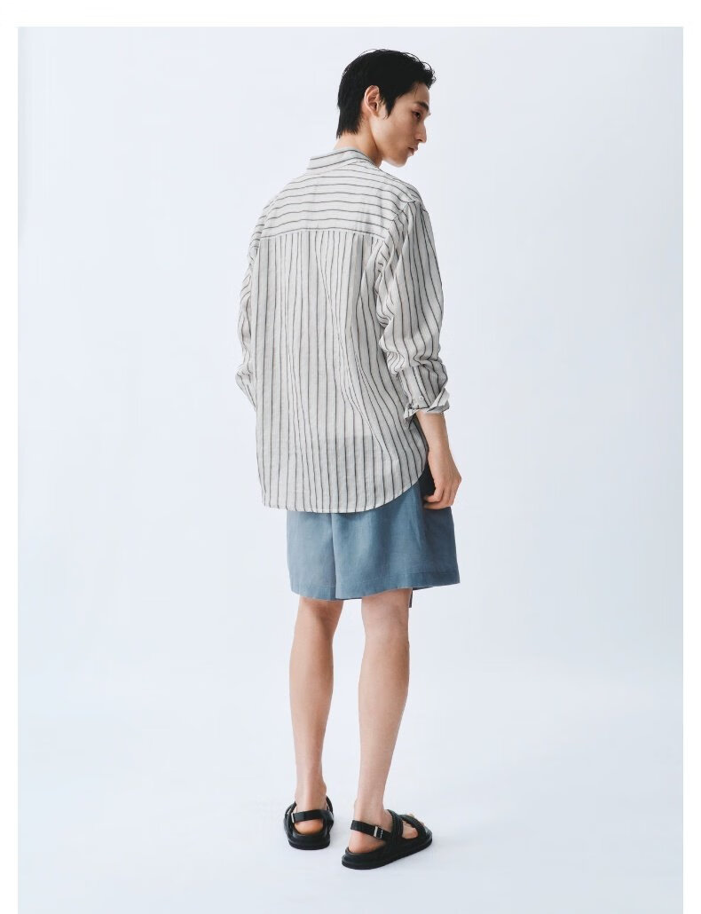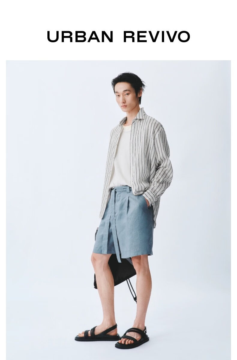 UR2026 Spring New Men's Commuting Versatile Contrast Color Striped Super Loose Cardigan Shirt UMF250070 Light Blue Stripes (Loose) S (XS-S)