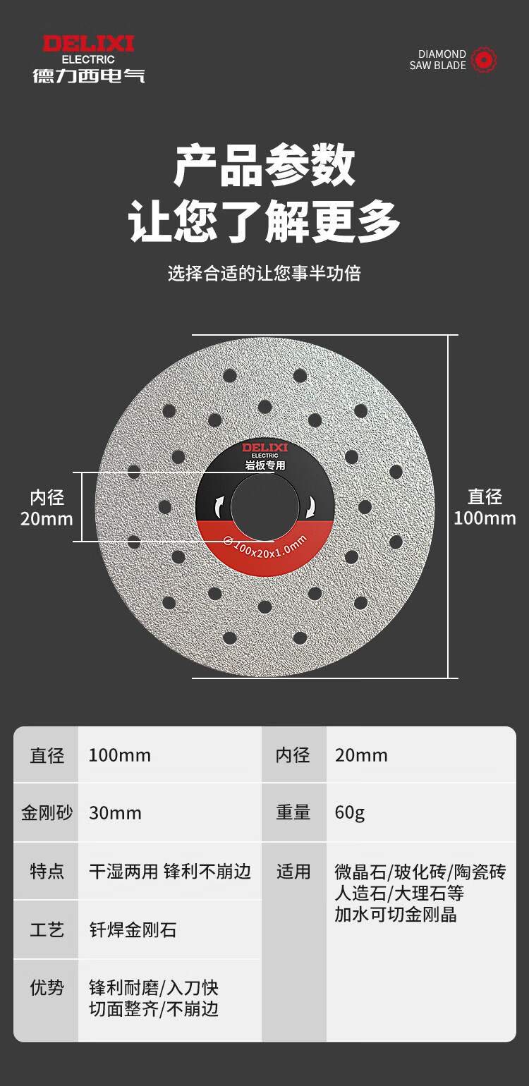 Delixi Electric Rock Slab Special Cutting Sheet Ultra-Thin Ceramic Tile Trimming Sharp Vitrified Brick Polishing Stone Flat Grinding Sheet Wear-Resistant Industrial Grade-Stone Slab Cutting Sheet 2 Pieces Pack