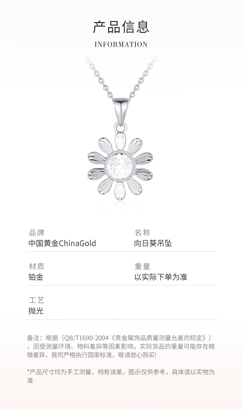 China Gold (CHINA GOLD) PT950 Platinum Shining Scale Sunflower Pendant Women's Light Luxury Valentine's Day Birthday Gift for Girlfriend and Wife Platinum Shining Scale Sunflower Pendant About 2.4g Free Silver Chain