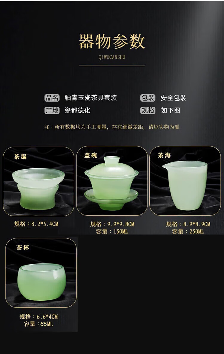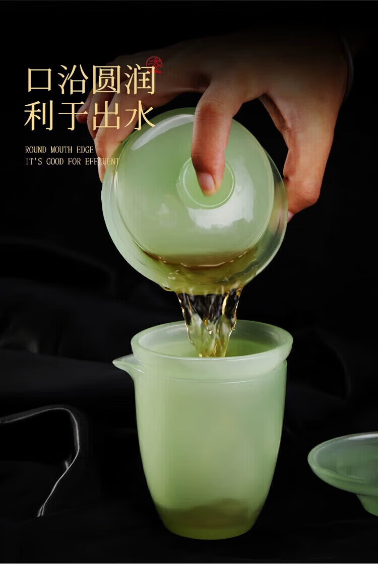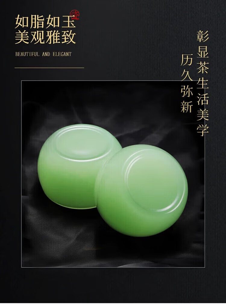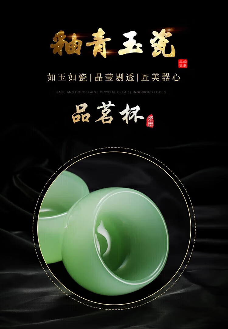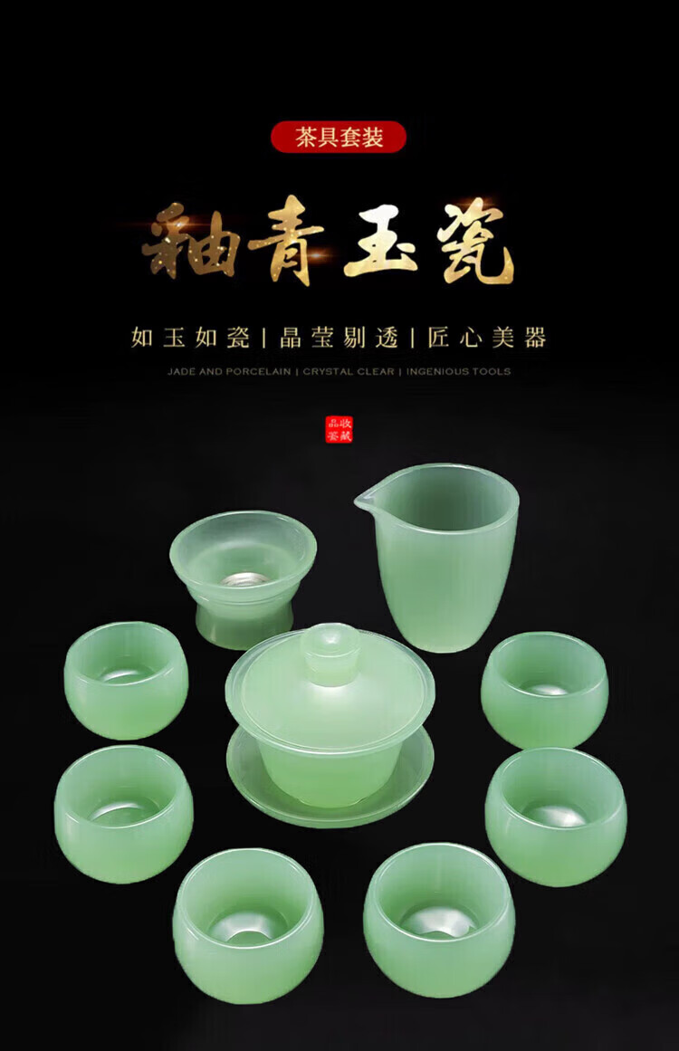 Fumei Ancient House high-end sky blue jade porcelain Kung Fu tea set light luxury tea bowl high-end reception office complete gift box set Sapphire-jade porcelain tea set 10 pieces