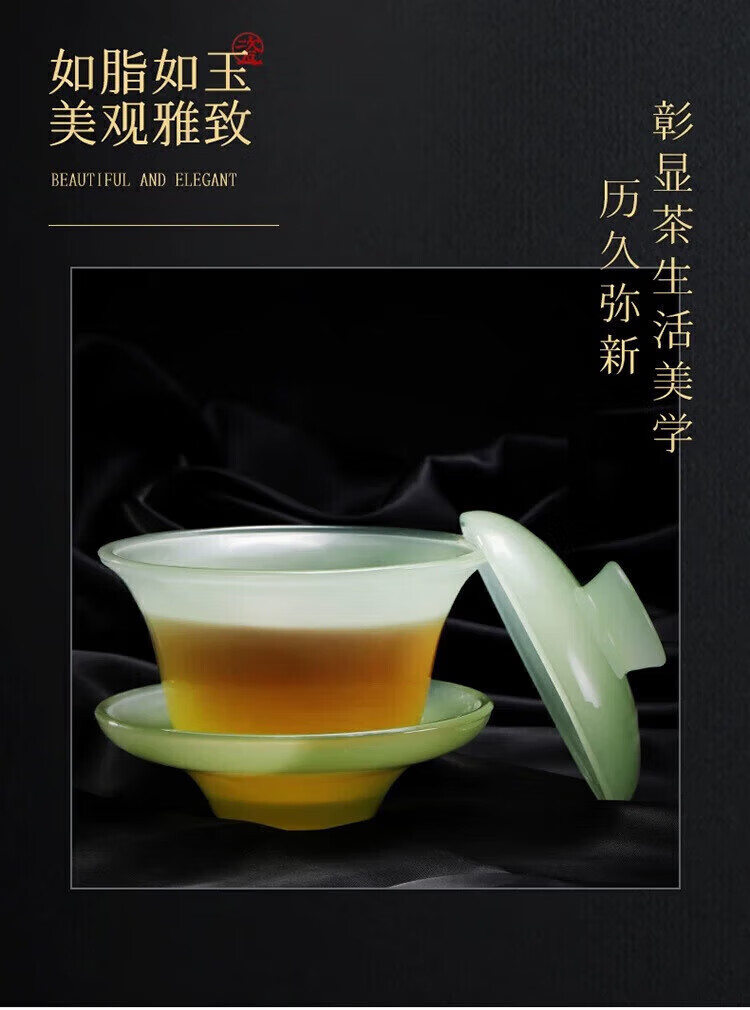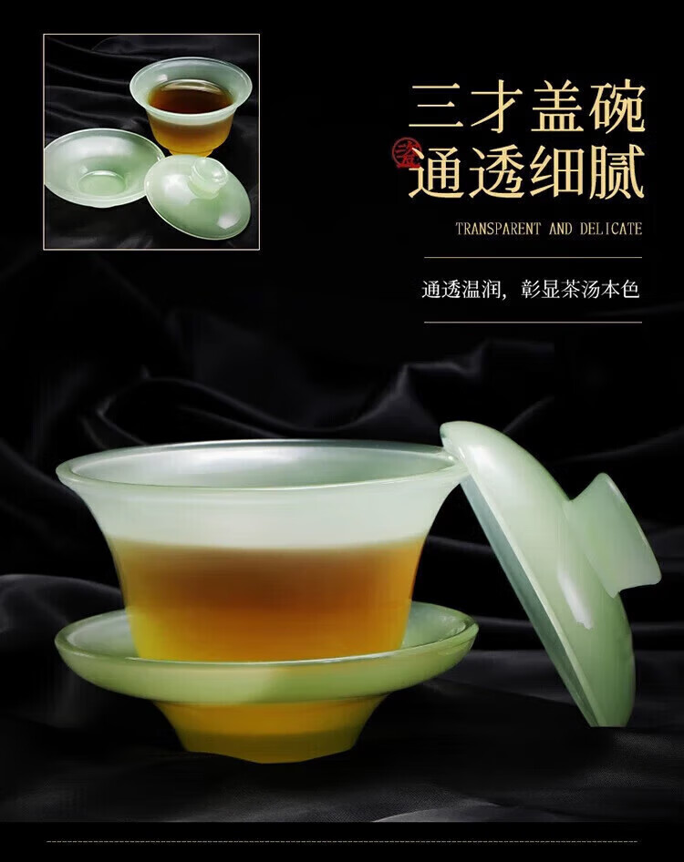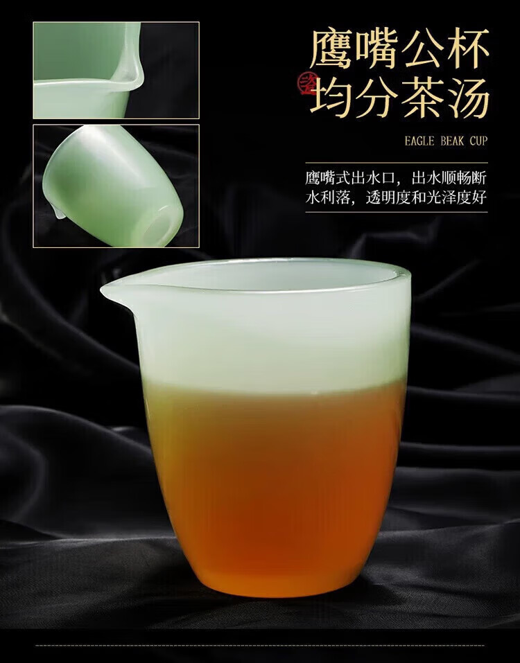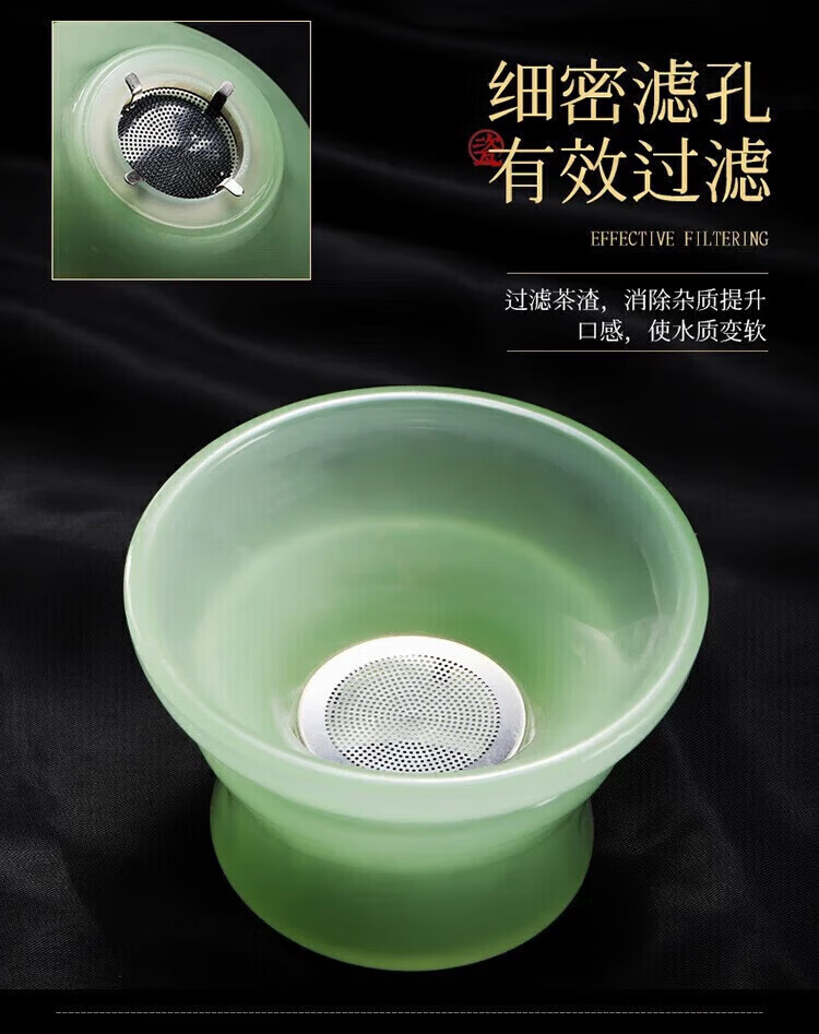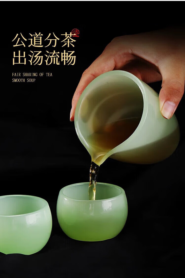 Fumei Ancient House high-end sky blue jade porcelain Kung Fu tea set light luxury tea bowl high-end reception office complete gift box set Sapphire-jade porcelain tea set 10 pieces