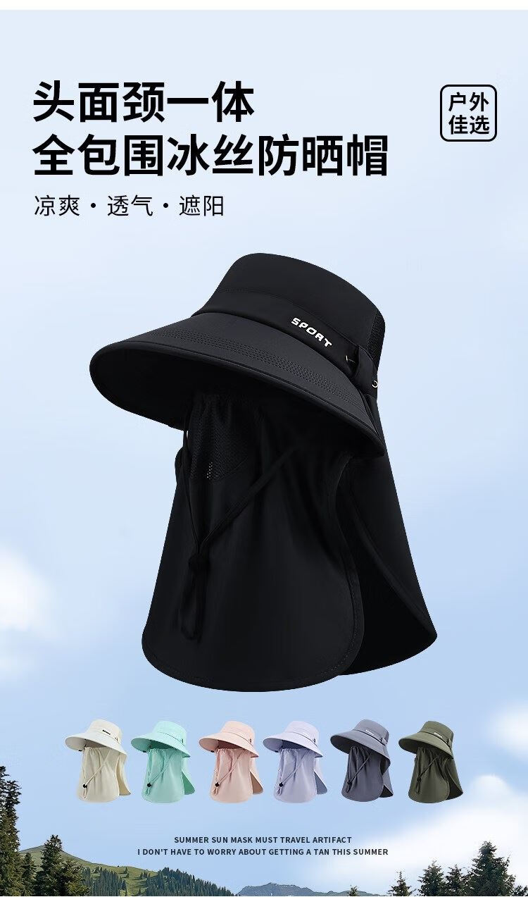 Jiaoxia Ice Silk Sunscreen Mask, Hat and Neck Protector Integrated Men's Summer Outdoor Mountaineering and Fishing Visor Hat Women's Sun Hat Men's - Dark Gray One Size Fits All Adults