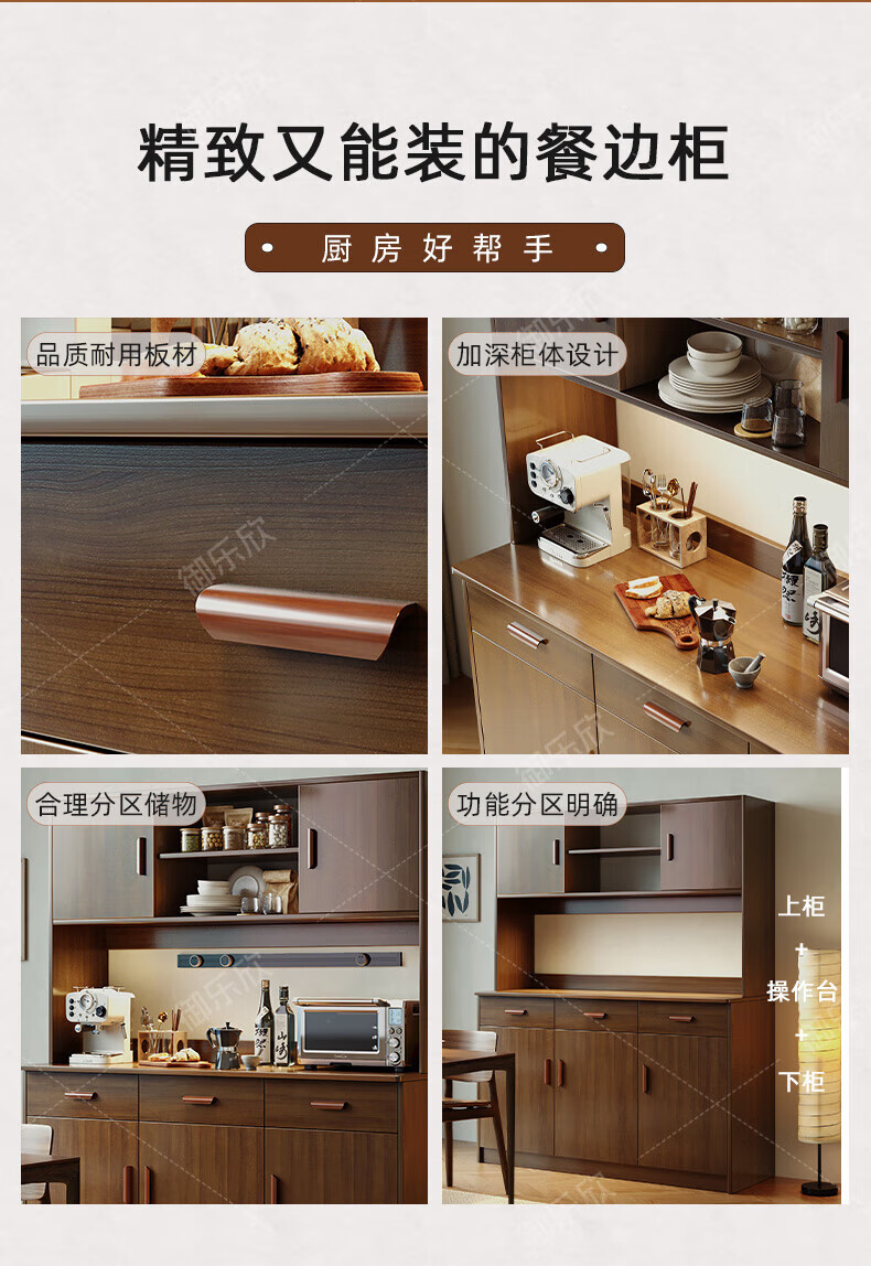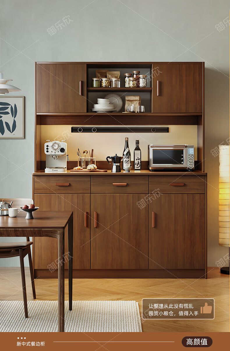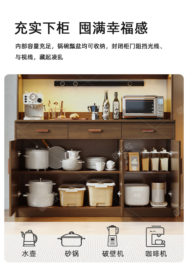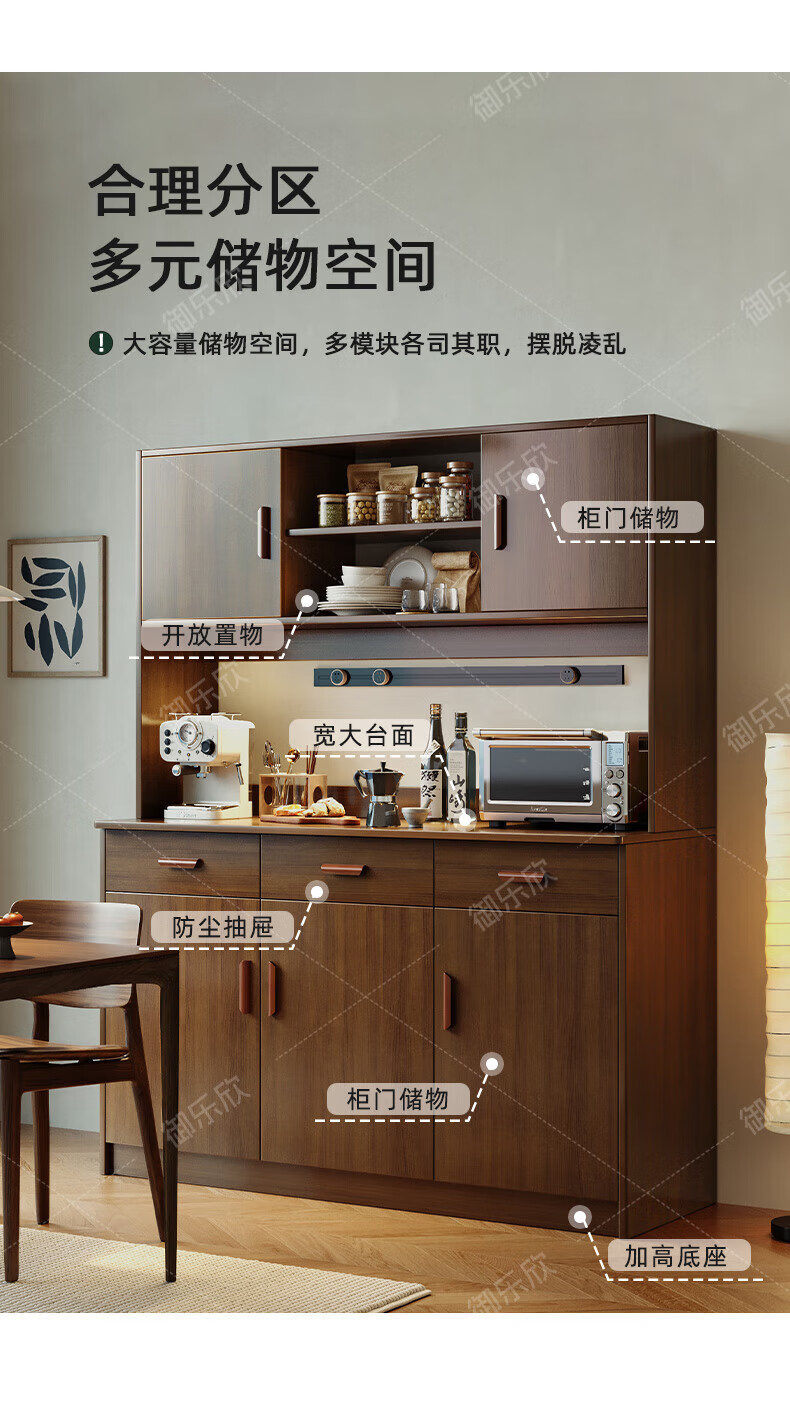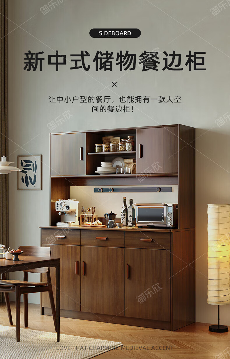 Yulexin solid wood sideboard against the wall integrated cabinet living room tea cabinet household multi-functional storage cupboard wine cabinet five doors three drawers walnut color + gray 120cm worry-free door-to-door installation