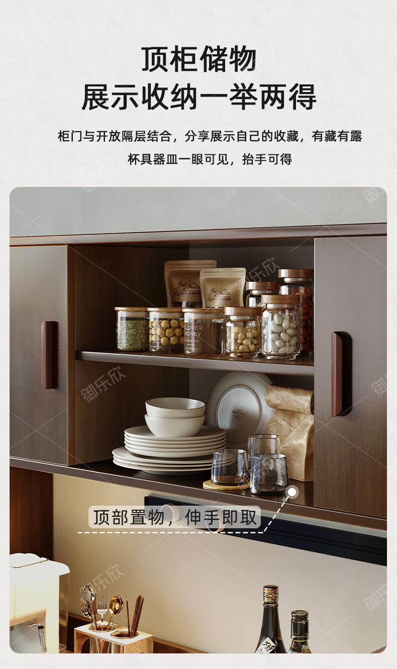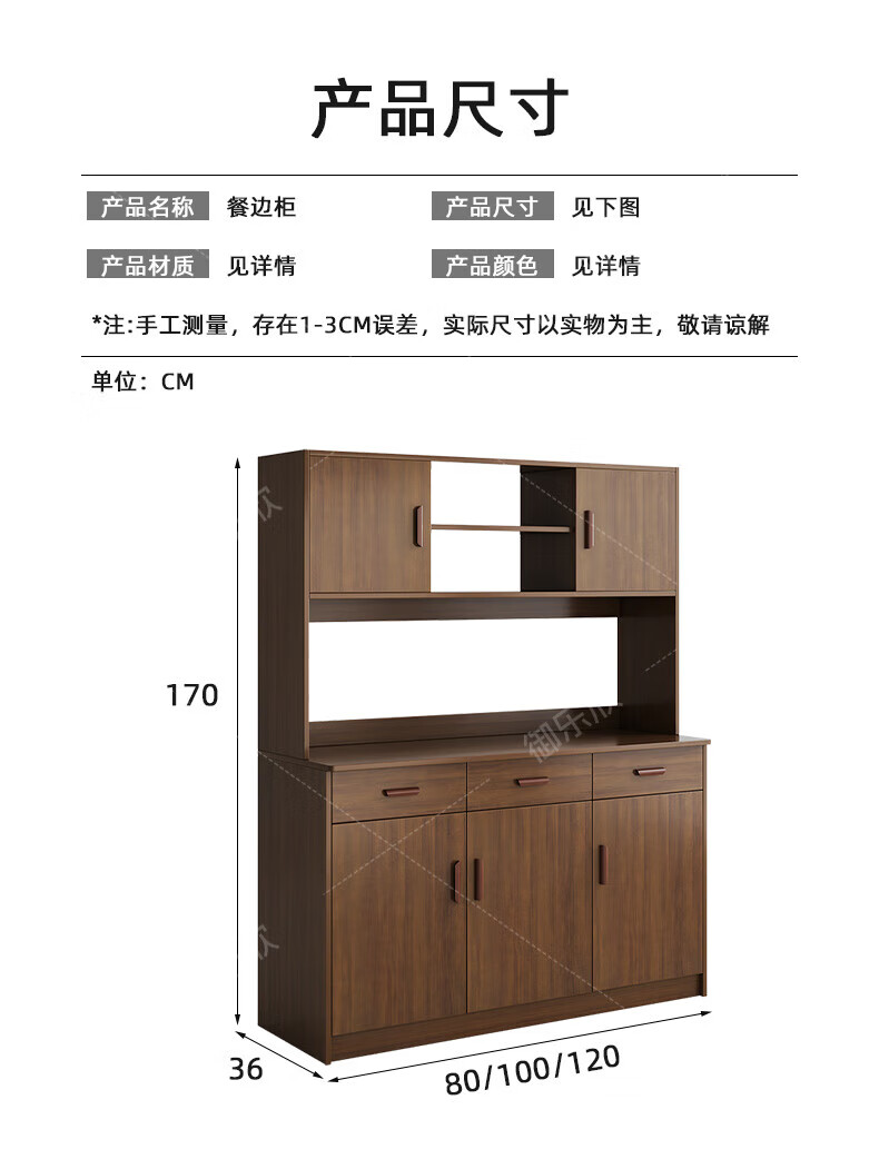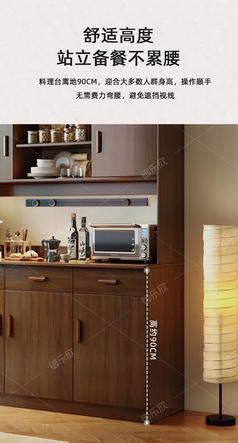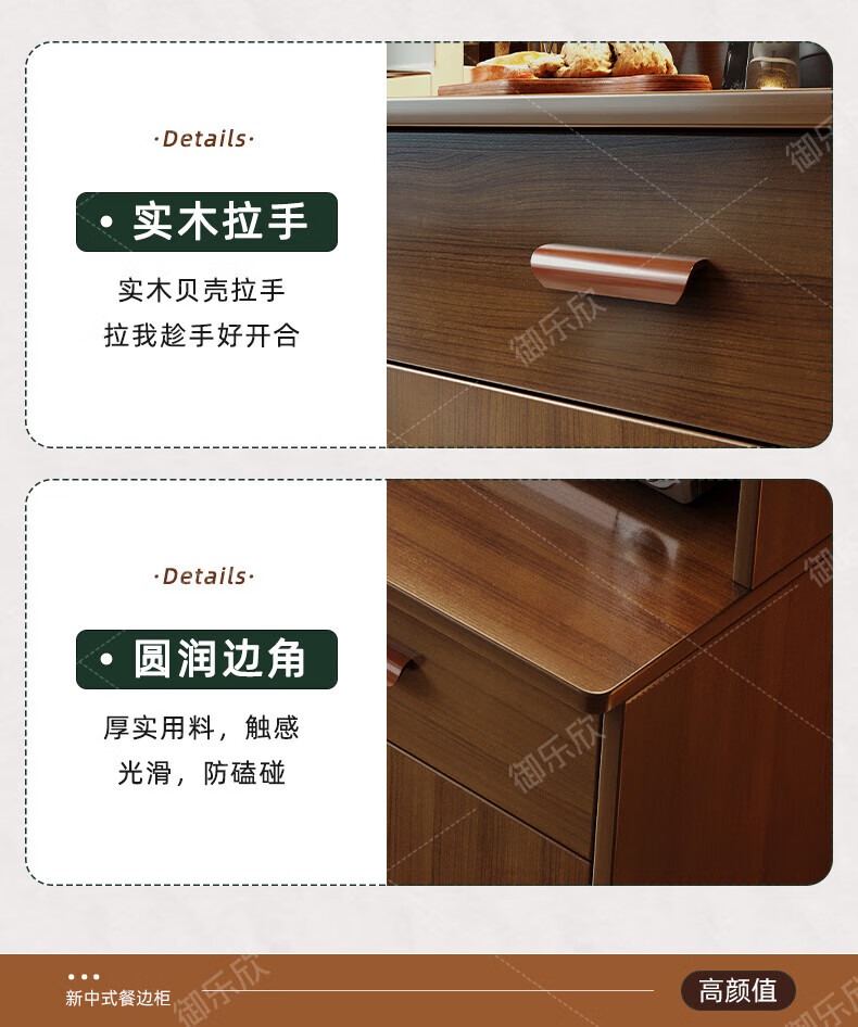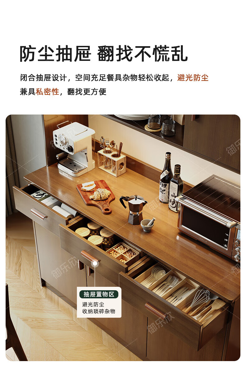 Yulexin solid wood sideboard against the wall integrated cabinet living room tea cabinet household multi-functional storage cupboard wine cabinet five doors three drawers walnut color + gray 120cm worry-free door-to-door installation