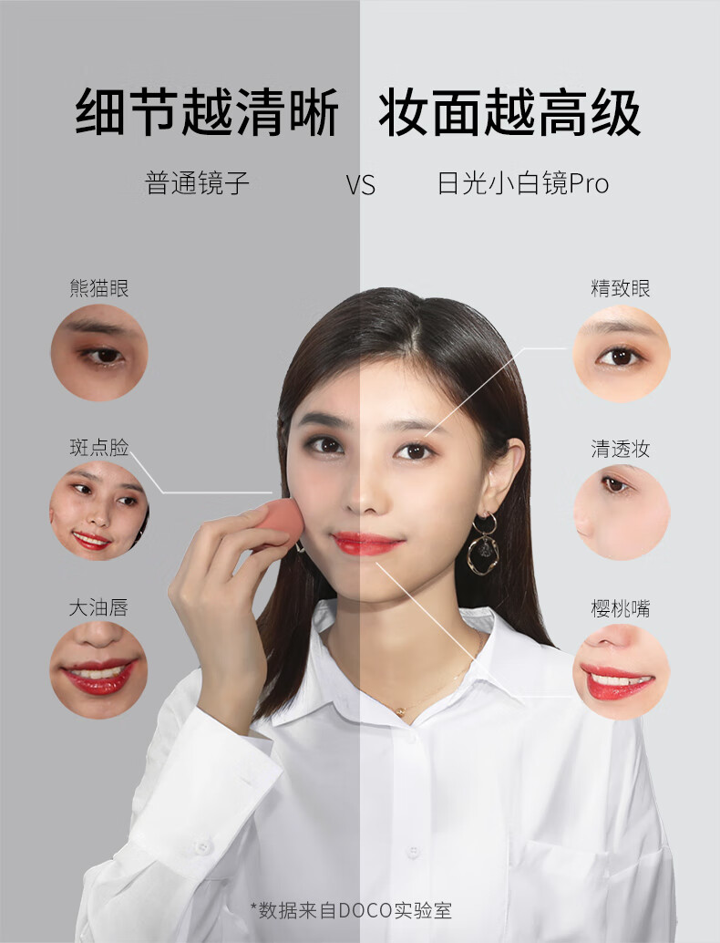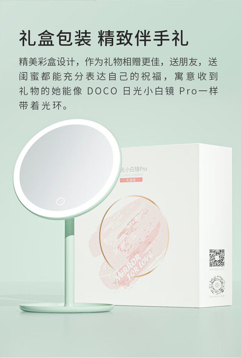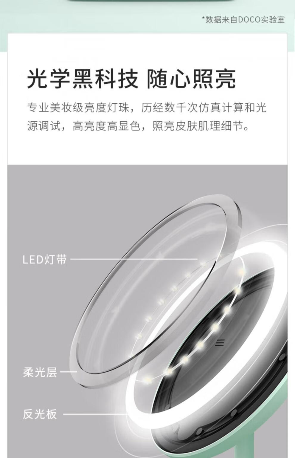 DOCO LAB Makeup Mirror Beauty Mirror HD Luminous Dormitory Desktop LED Lighted Desktop Smart Dressing Mirror Small White Mirror-Standard Edition