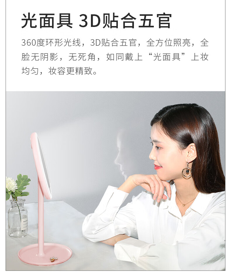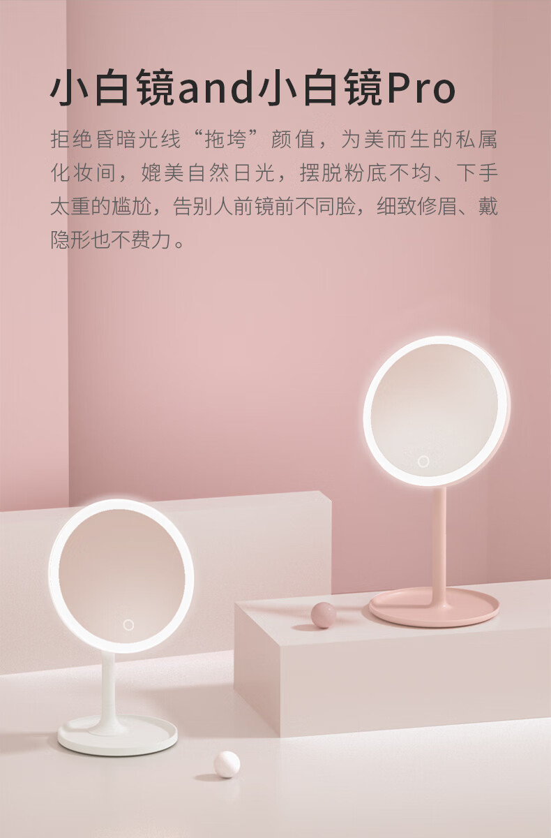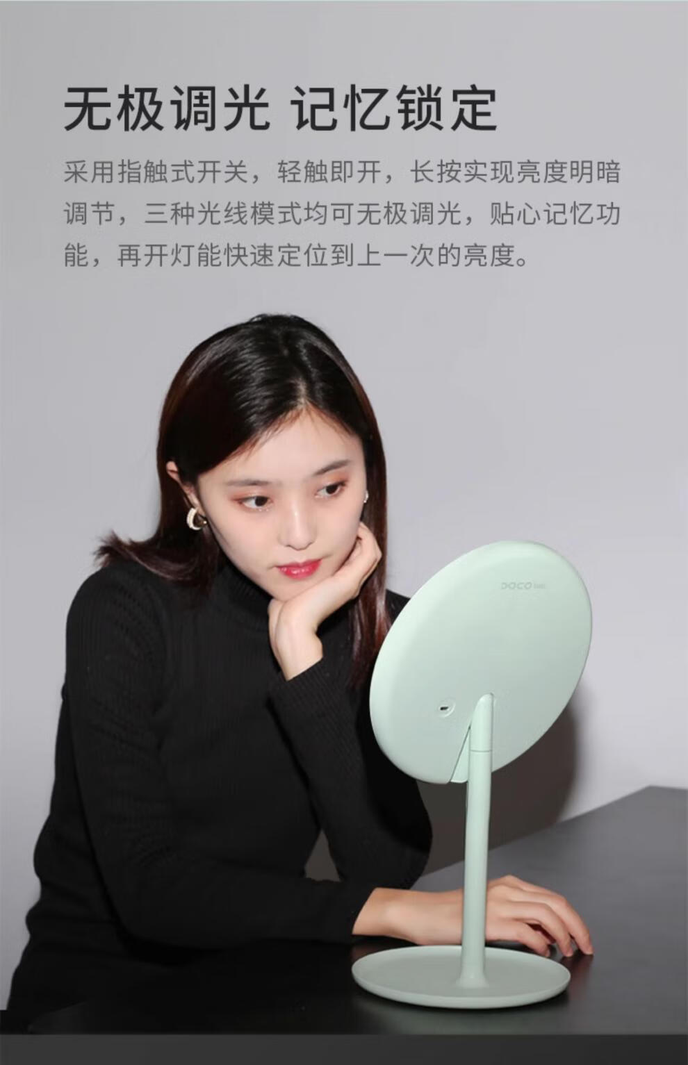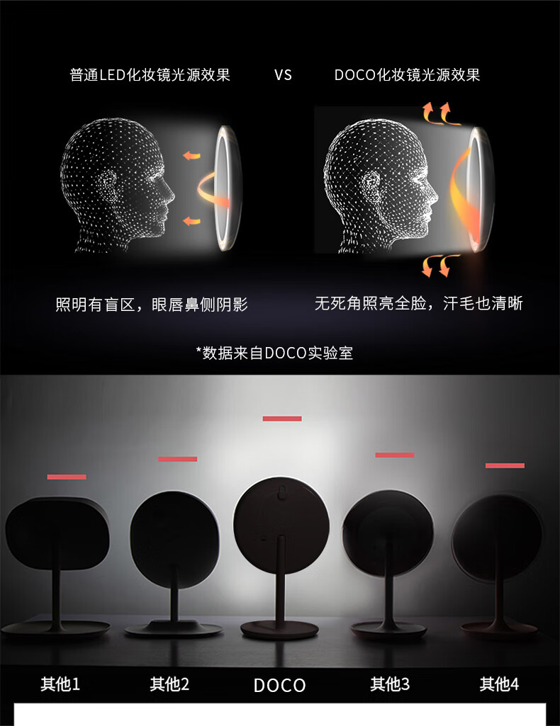 DOCO LAB Makeup Mirror Beauty Mirror HD Luminous Dormitory Desktop LED Lighted Desktop Smart Dressing Mirror Small White Mirror-Standard Edition