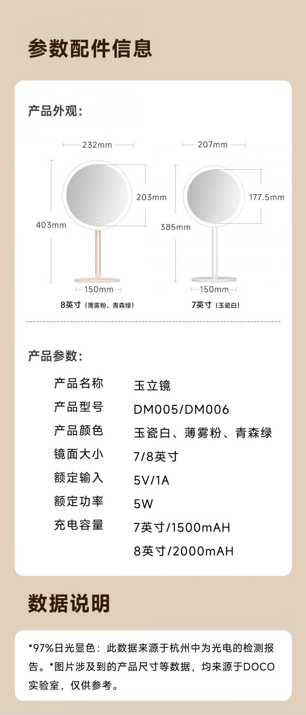 DOCO LABDOCO Miroir de maquillage HD Smart LED Miroir de beauté de bureau Miroir de maquillage lumineux 520 Cadeau pour petite amie Aomori Coffret cadeau limité vert