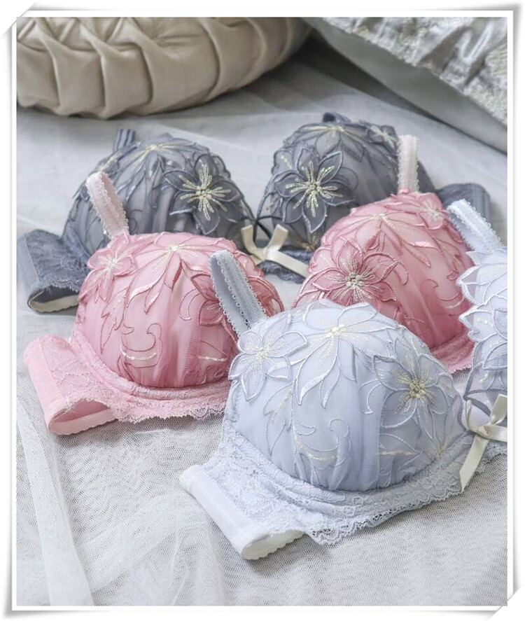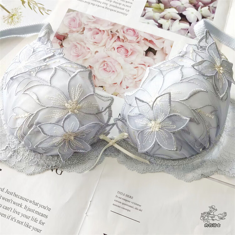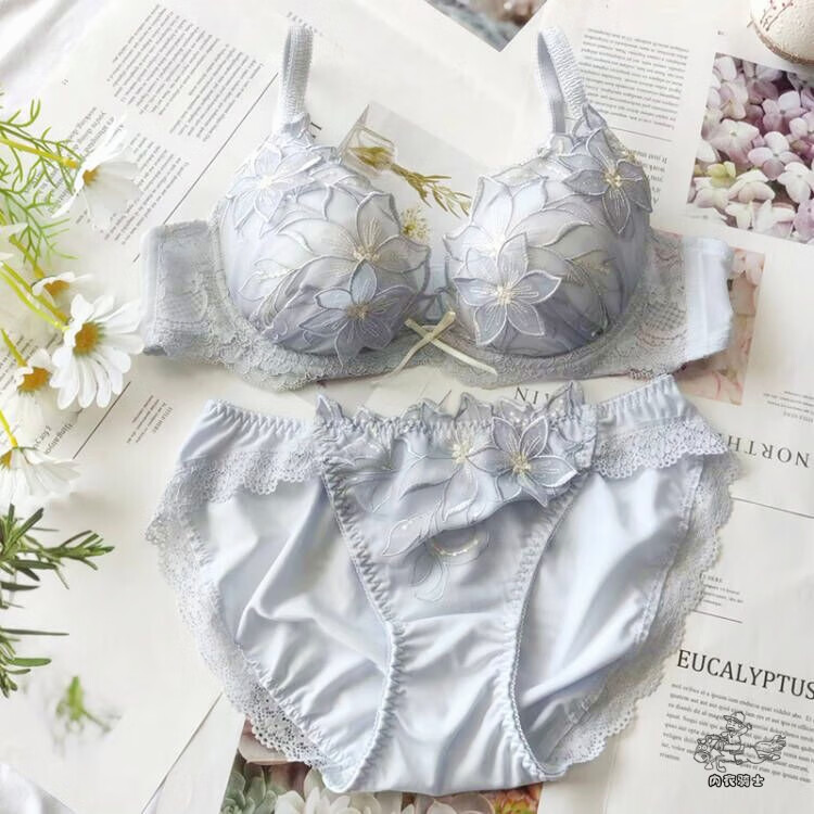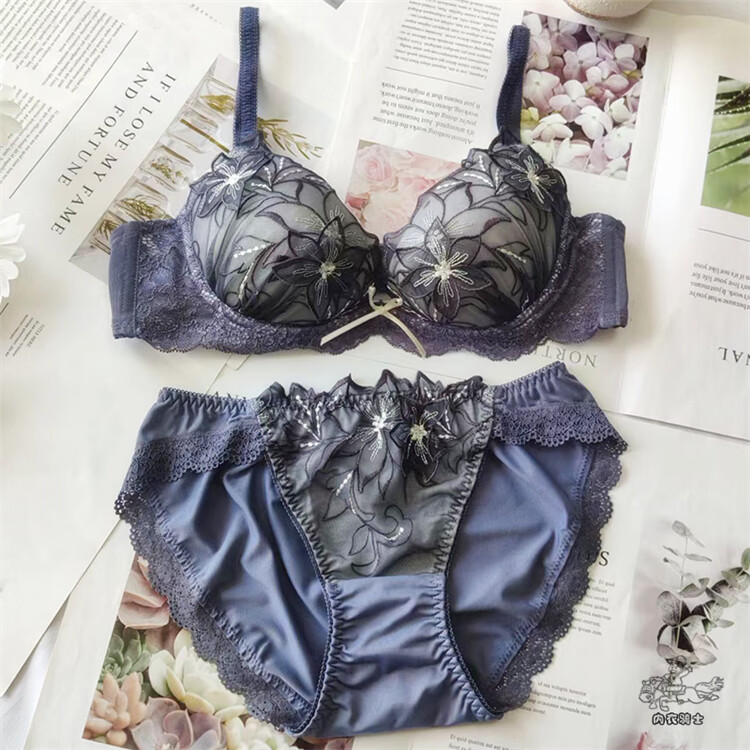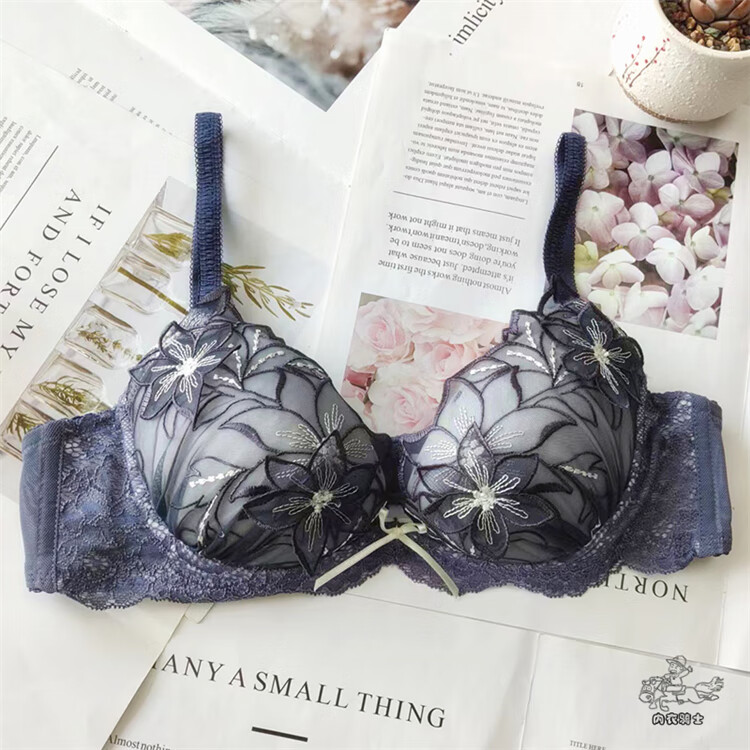 Yalu Risa, японский комплект D, тяжелая промышленность, изысканная вышивка, милая фея, бюстгальтер пуш-ап на косточках, чашка EF, голубая чашка, слишком маленькая 80B