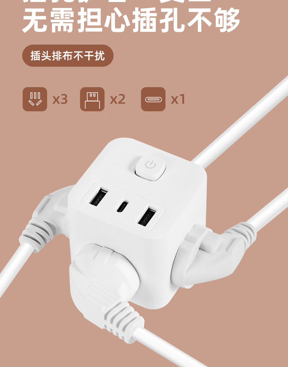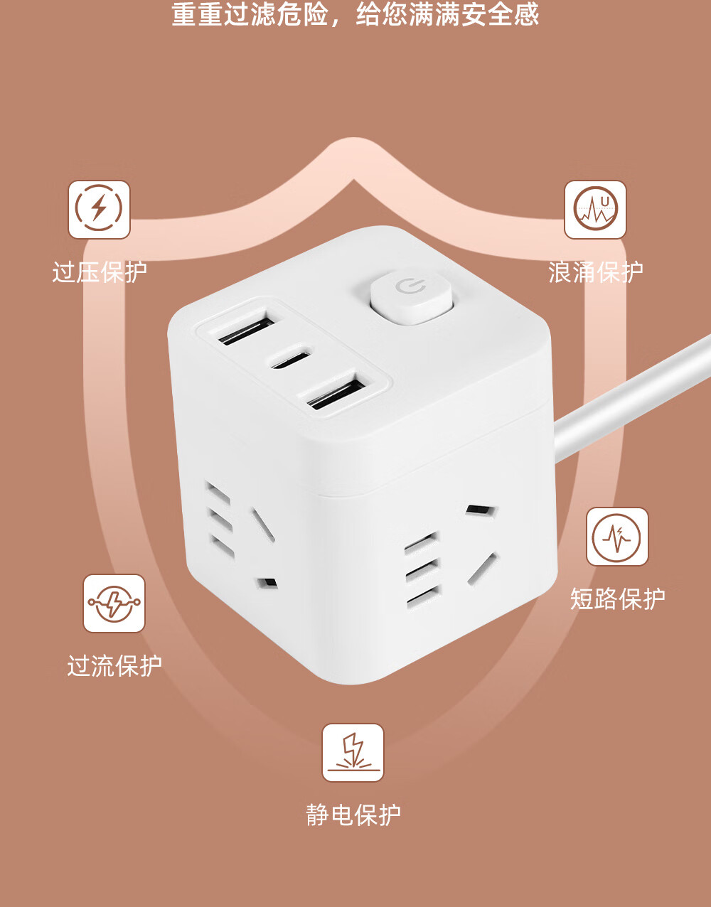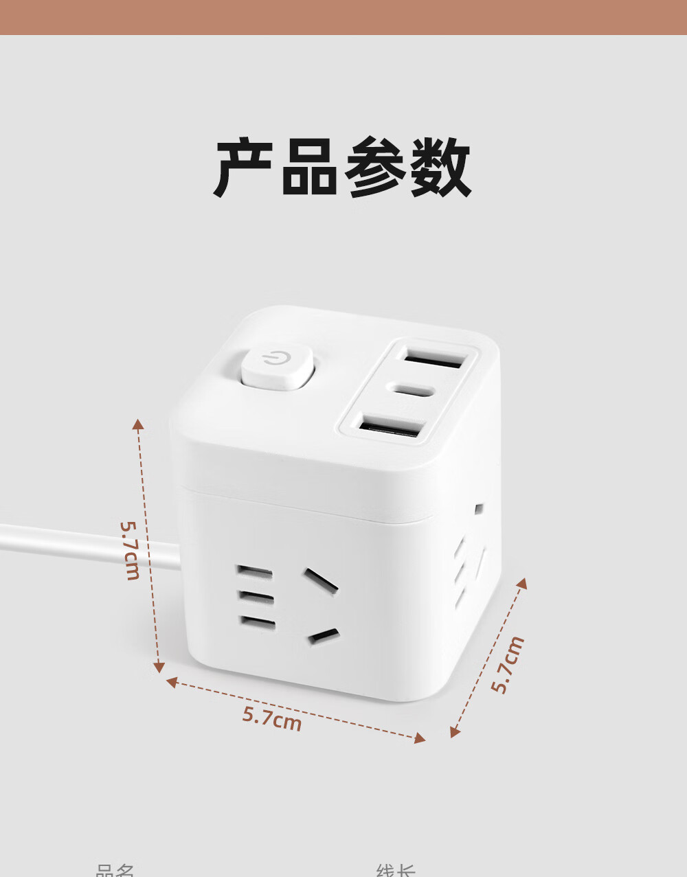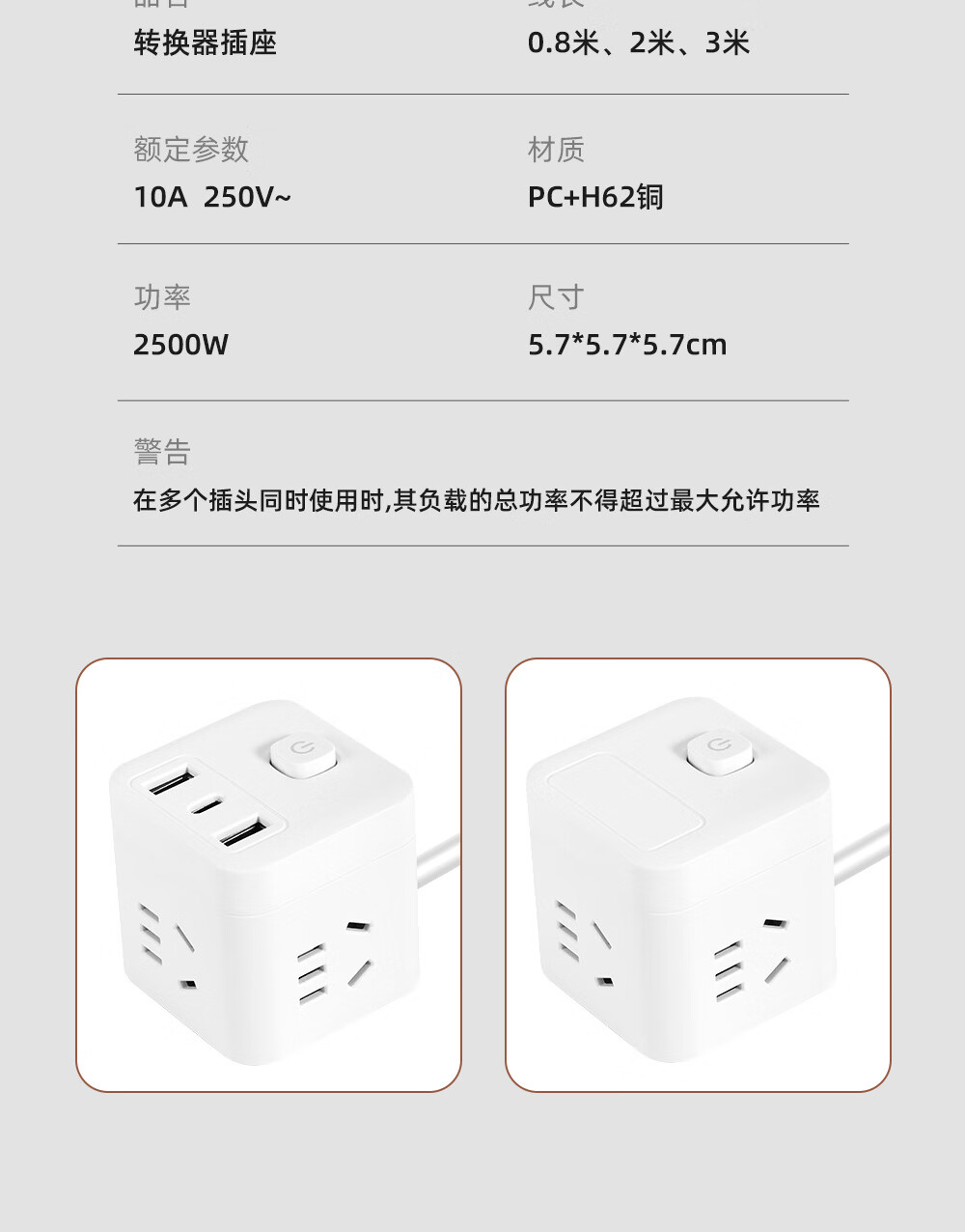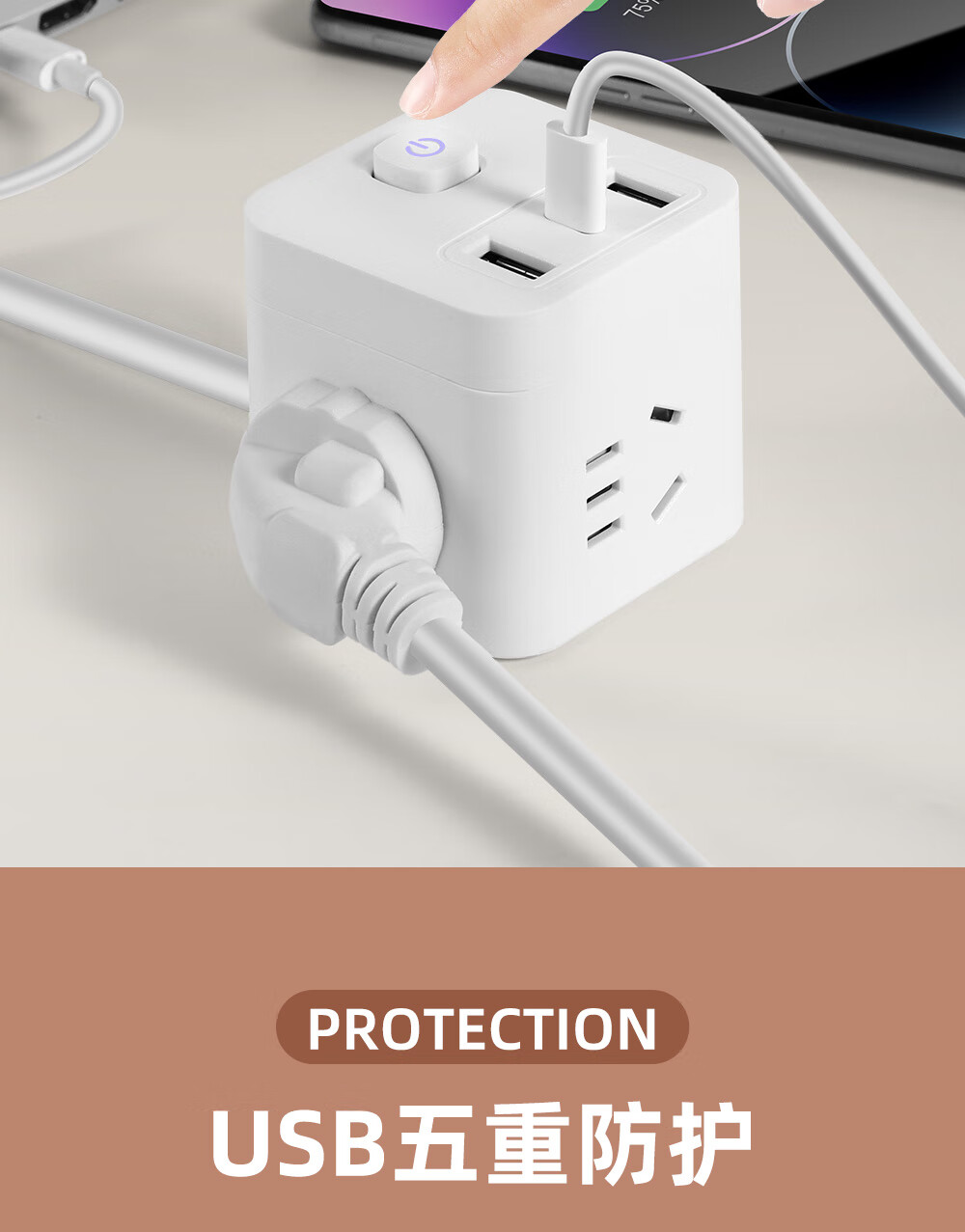 Jingdong Express Rubik's Cube Socket Converter Multifunctional USB Charging Plug Strip Household Power Strip Socket Panel Multi-hole Square Socket Black 3 Sockets + USB Total Length 0.8 Meters