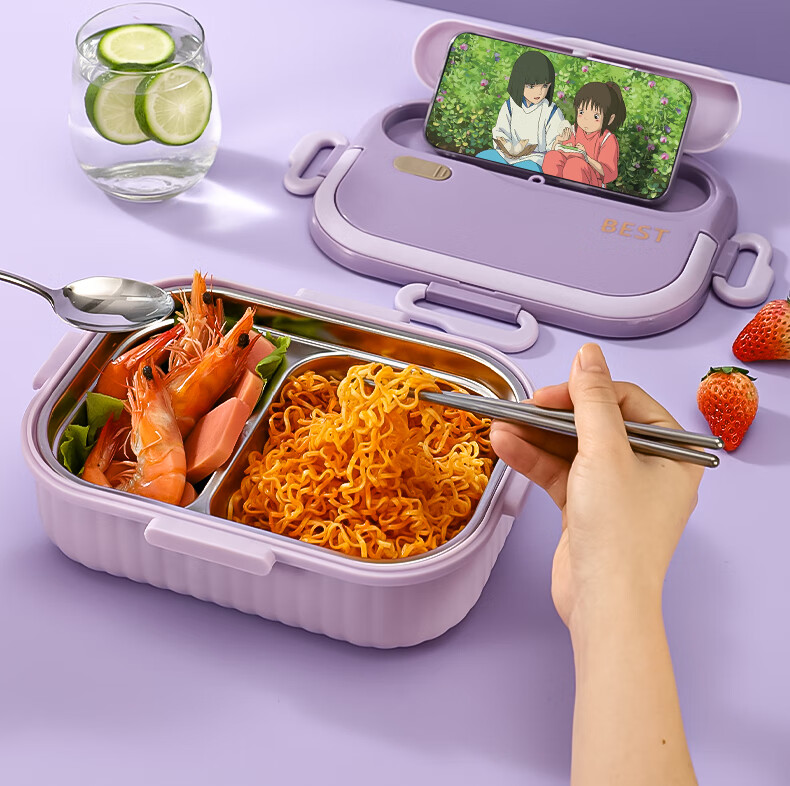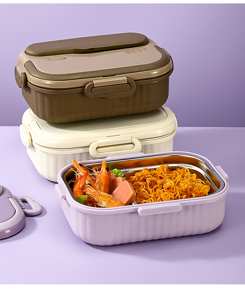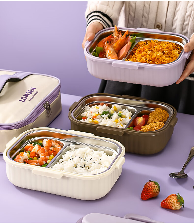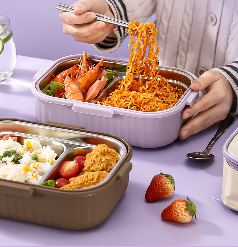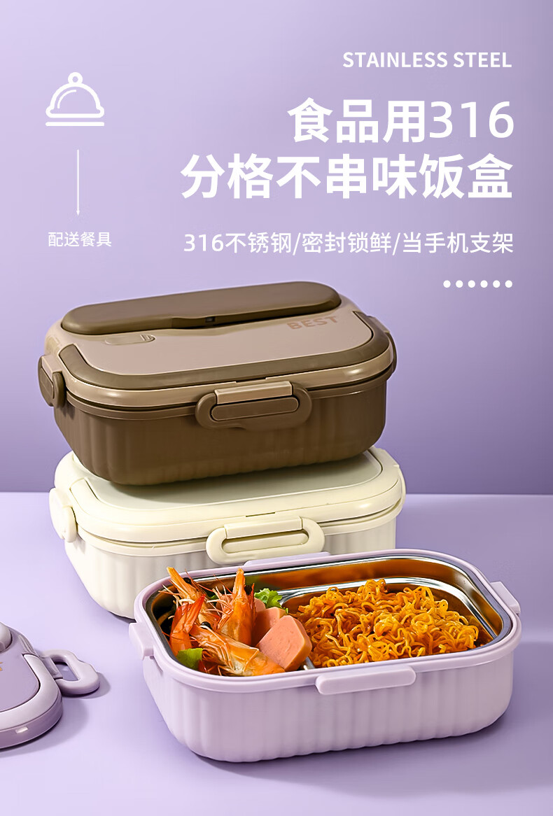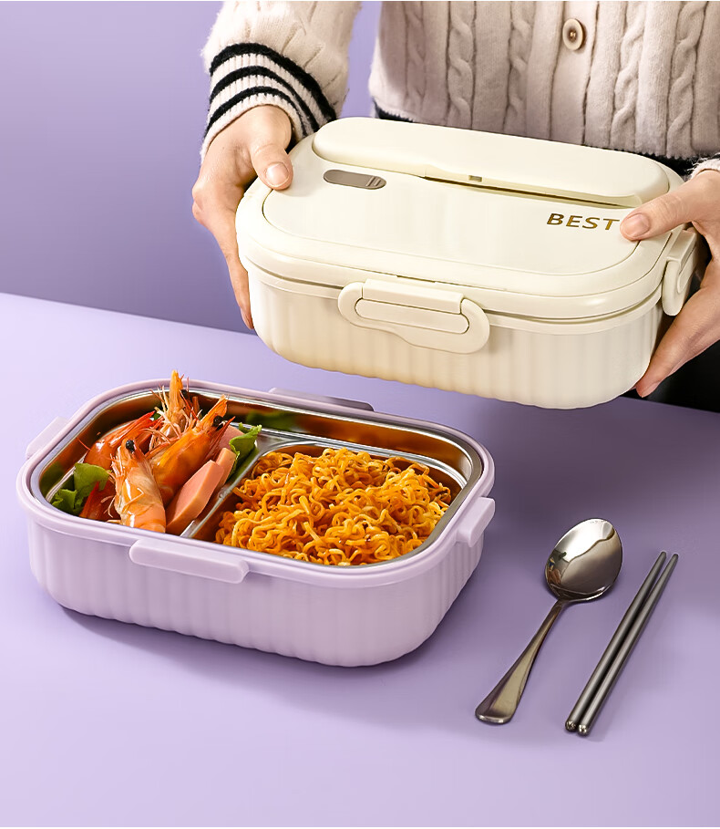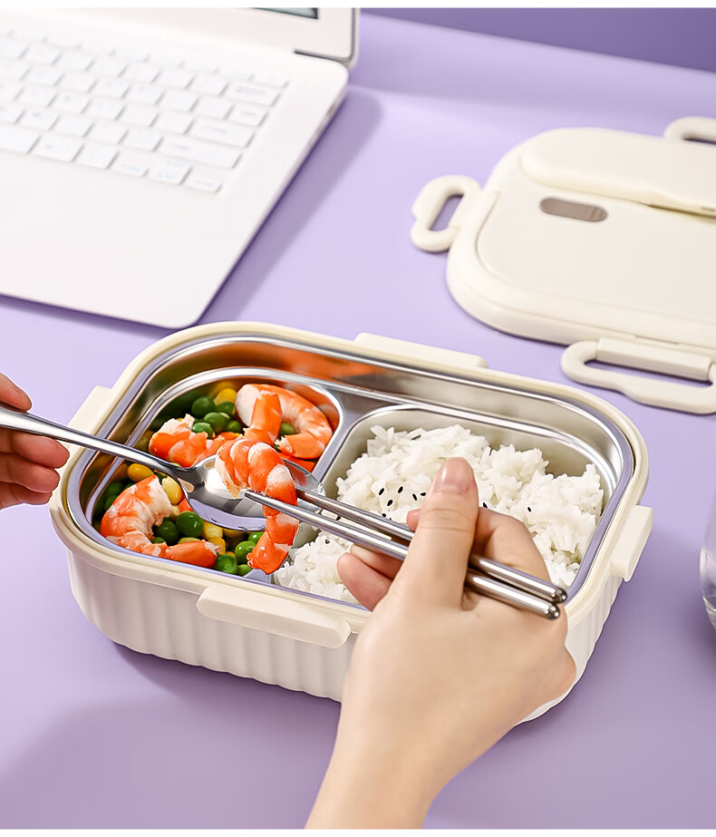 MZXM Japan imported 316 stainless steel divided compartment insulated lunch box for primary school students and office workers, simple white_two compartments 1300ml