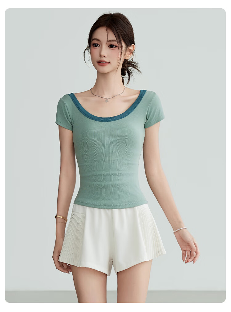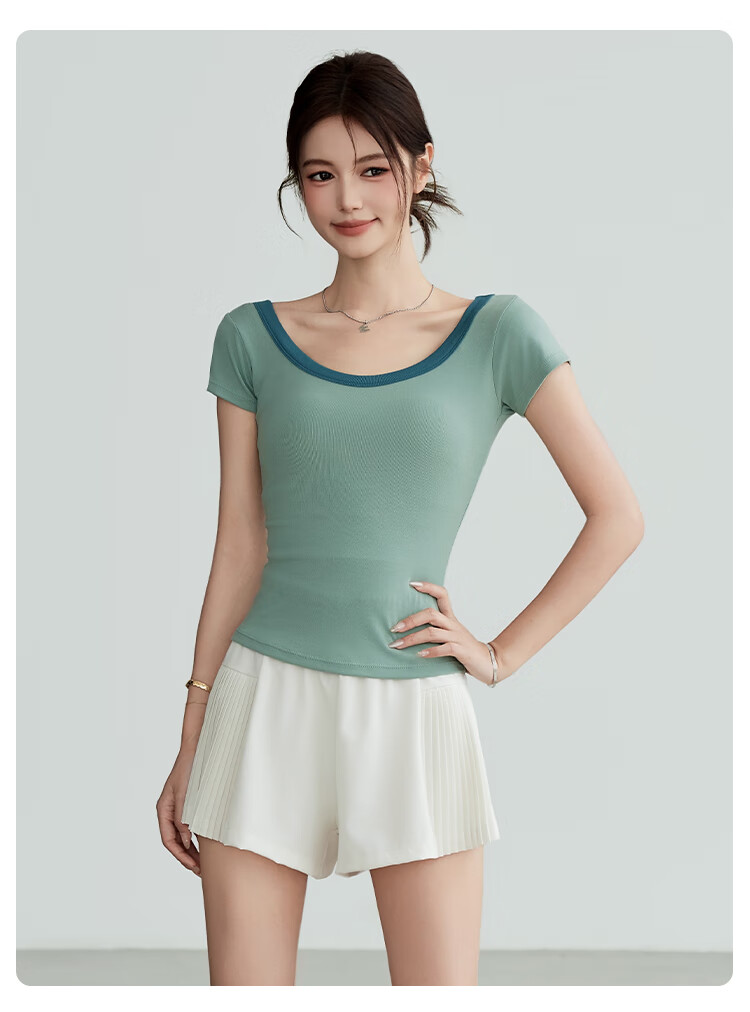 LULULMCCTN sports tops for women, thin, color-blocked, slimming, Pilates, professional fitness training, elastic breathable running yoga clothes, green L