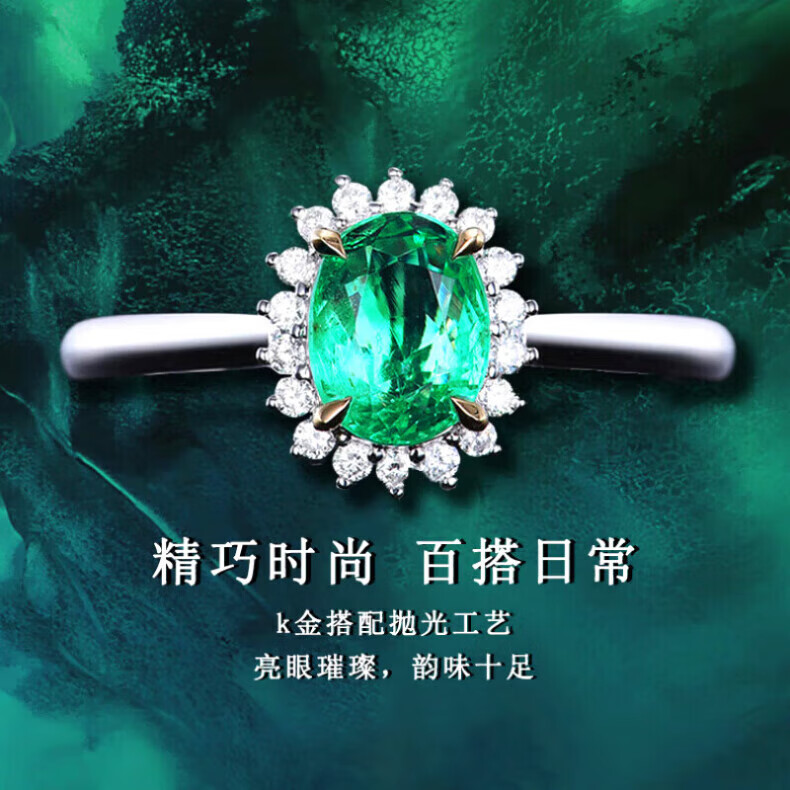HEEKAIYI emerald gemstone ring for women 18K gold diamond ring Chinese Valentine's Day birthday gift for wife and girlfriend Selected emerald gemstone ring 92 points 18K gold diamond inlaid