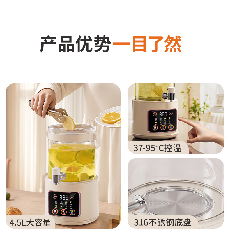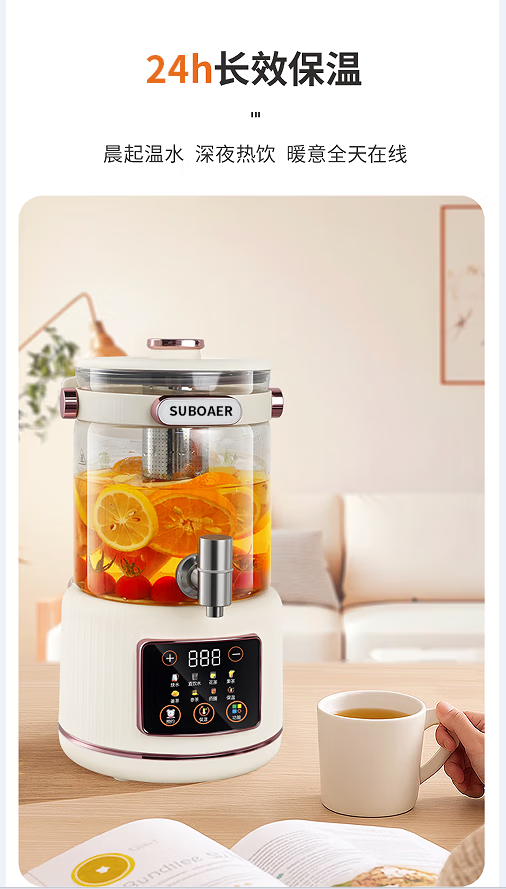 SUBOAER Subo Health Pot 4.5L Large Capacity 316 Heating Plate Multifunctional Household Tea Maker Stewing Pot One-piece Teapot Boiling Kettle Flower Teapot Mid-Autumn Festival Gift for Friends 4.5L 304 Stainless Steel Heating Plate + 304 Tea Drain