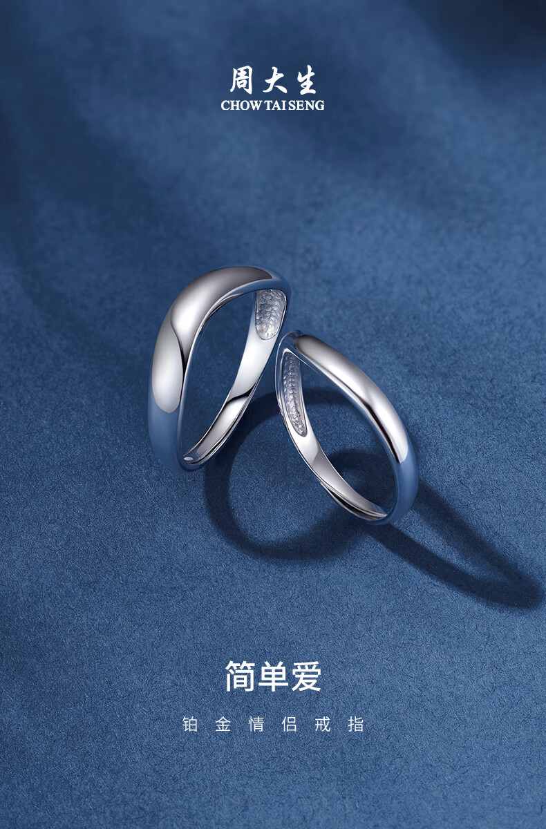 Zhou Taisheng platinum couple ring pt950 simple love ring wedding engagement ring birthday gift platinum female ring 2.09g