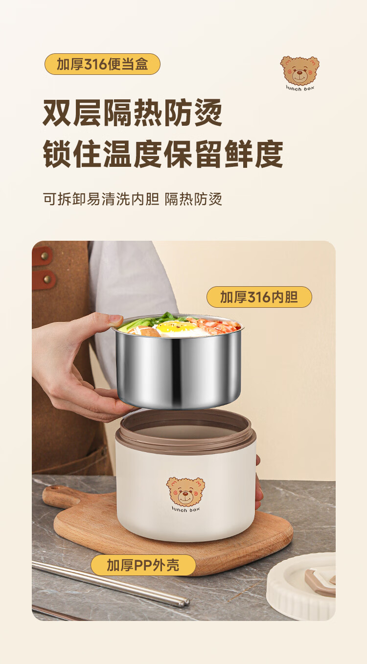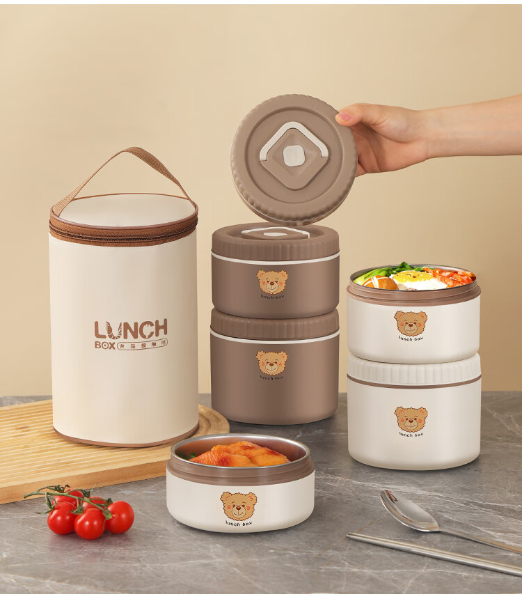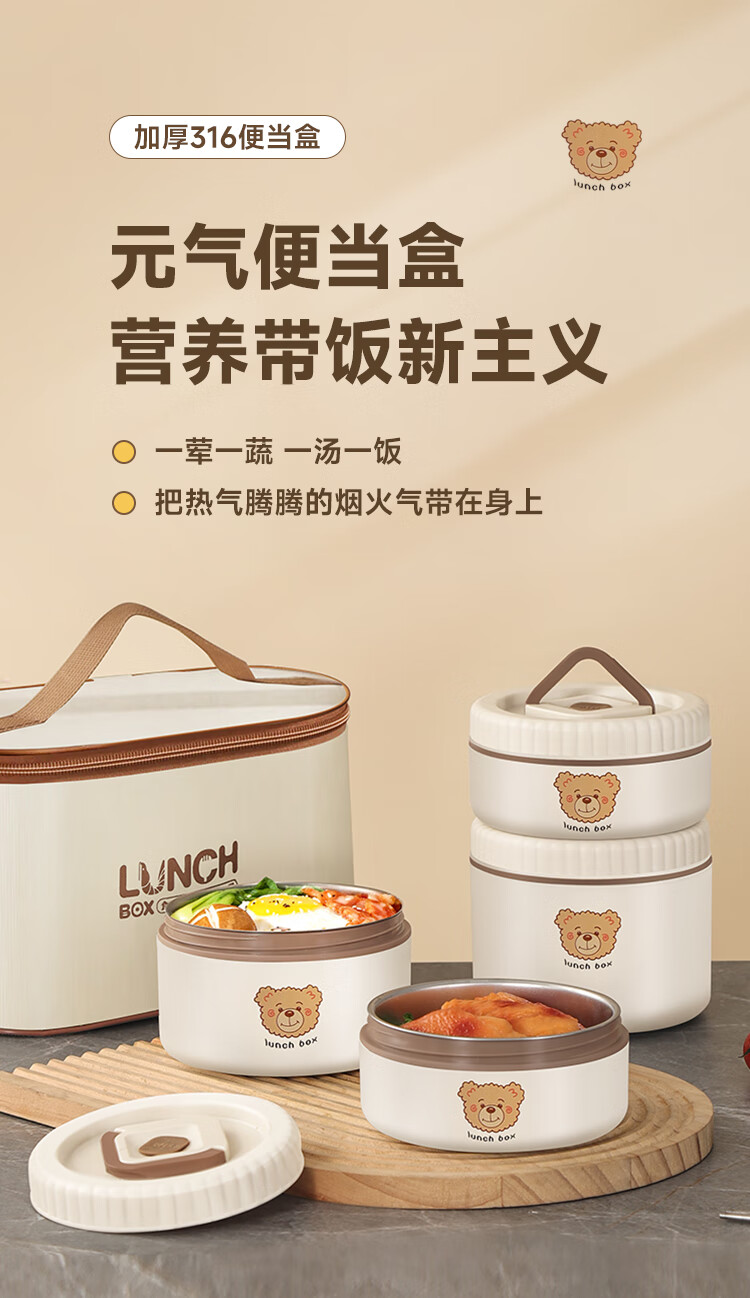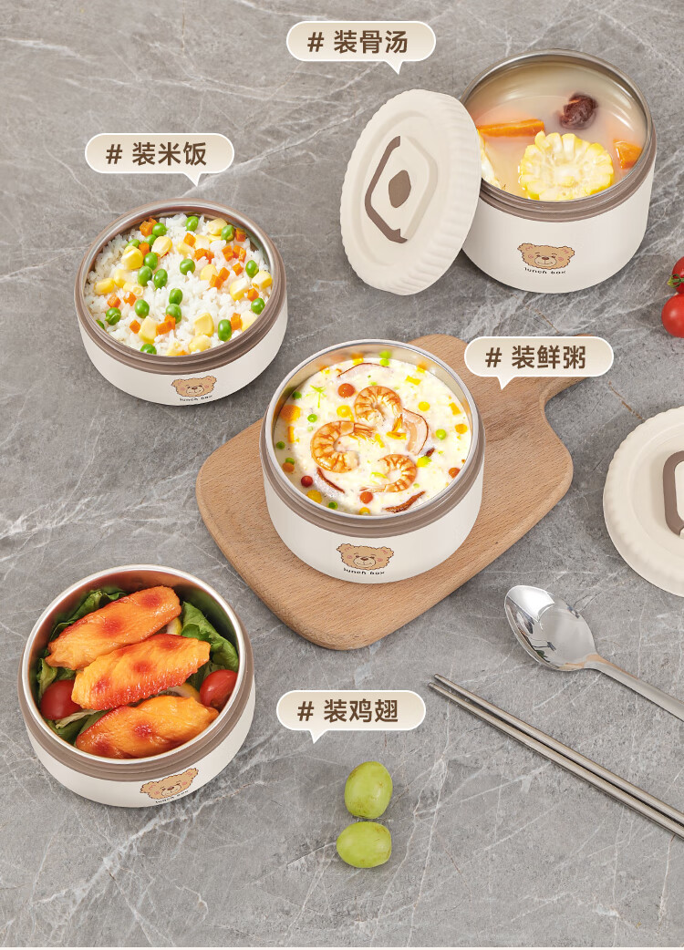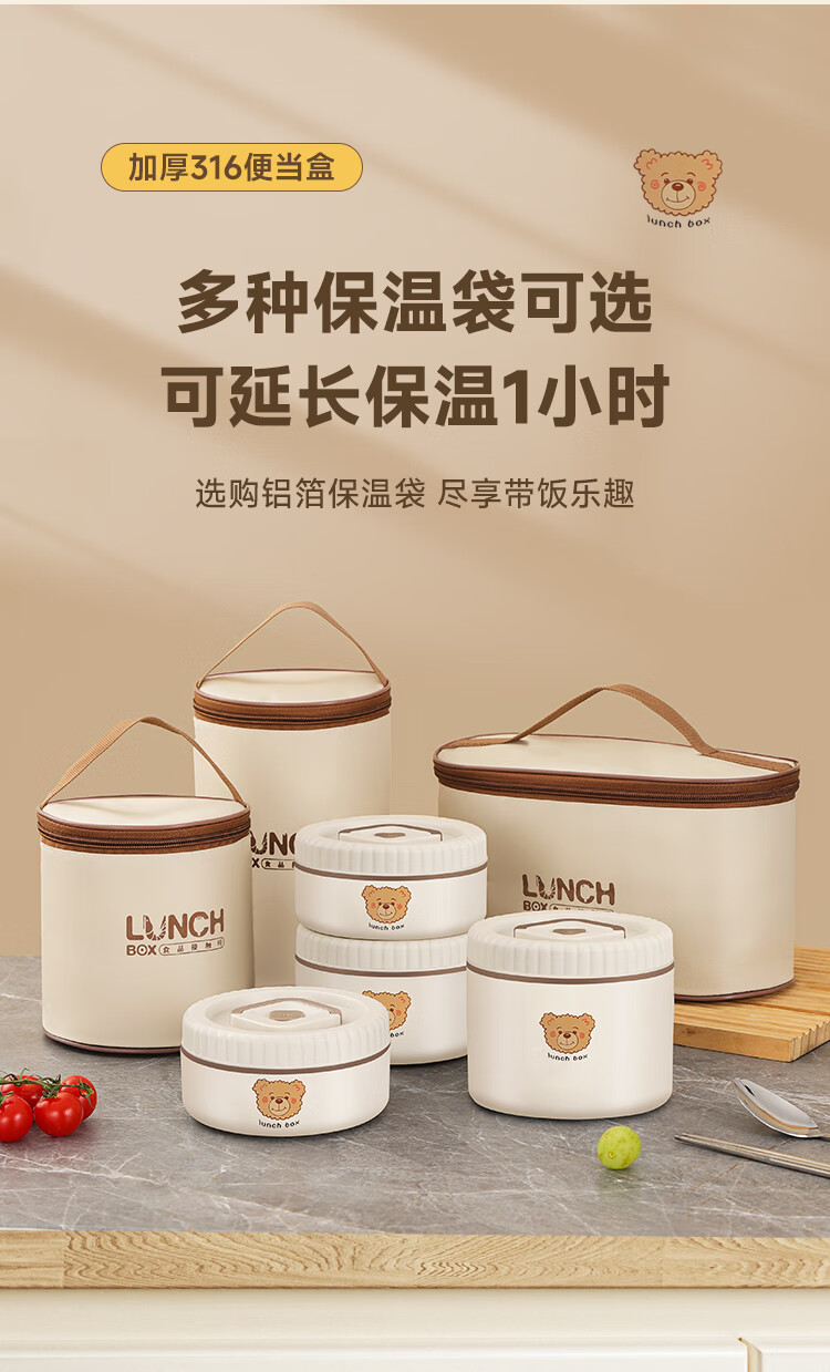 MZXM Japan imported 316 stainless steel insulated lunch box with rice artifact student lunch box microwaveable rice white-2 large + 2 extra large