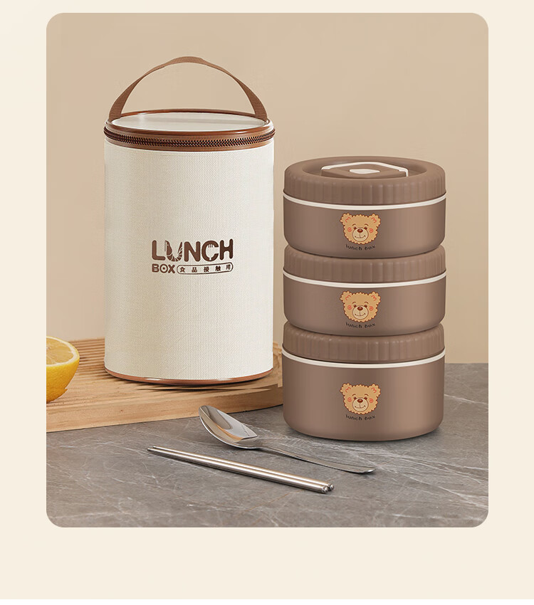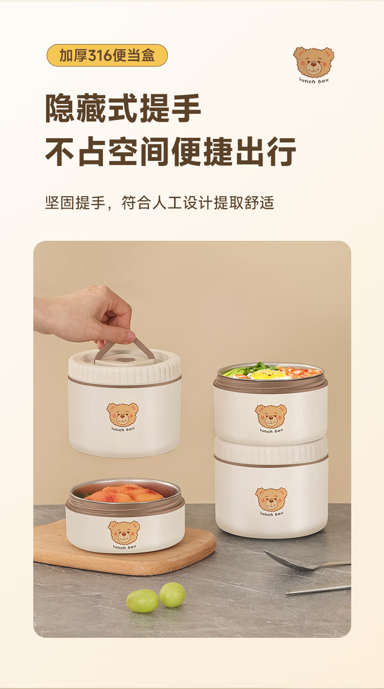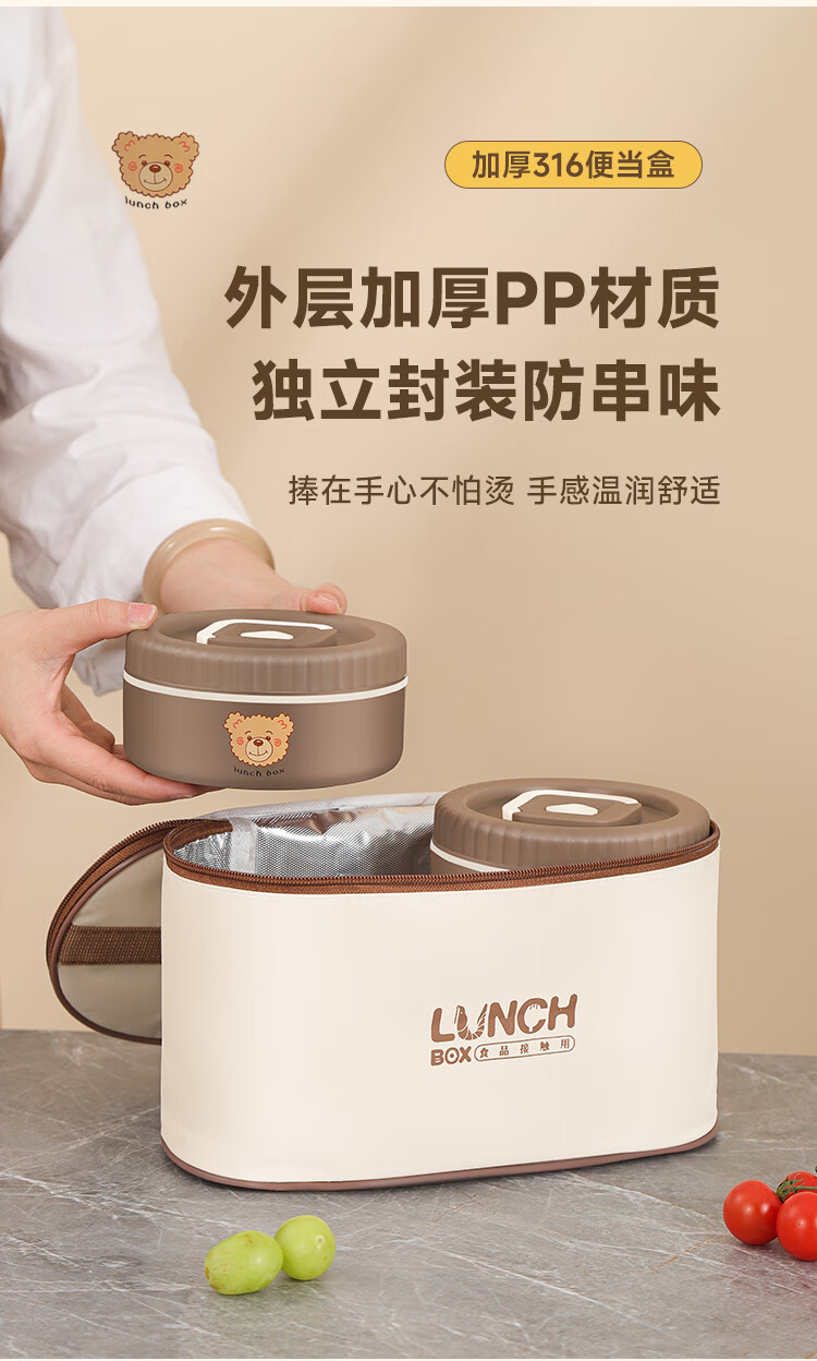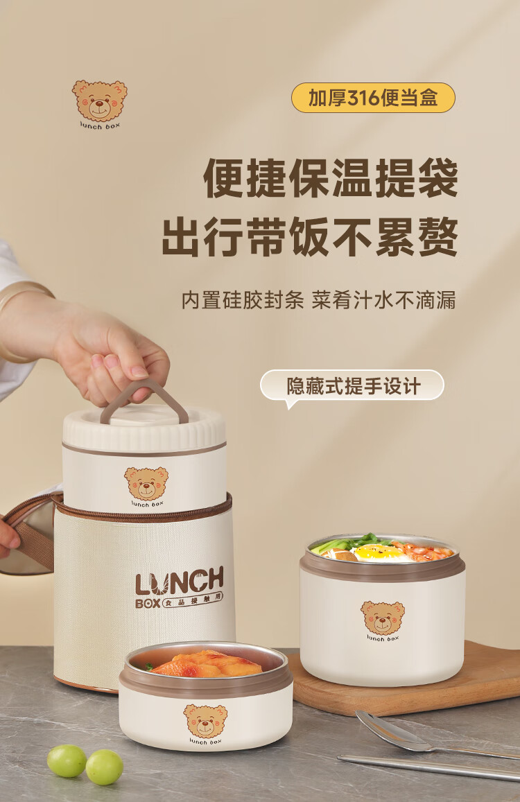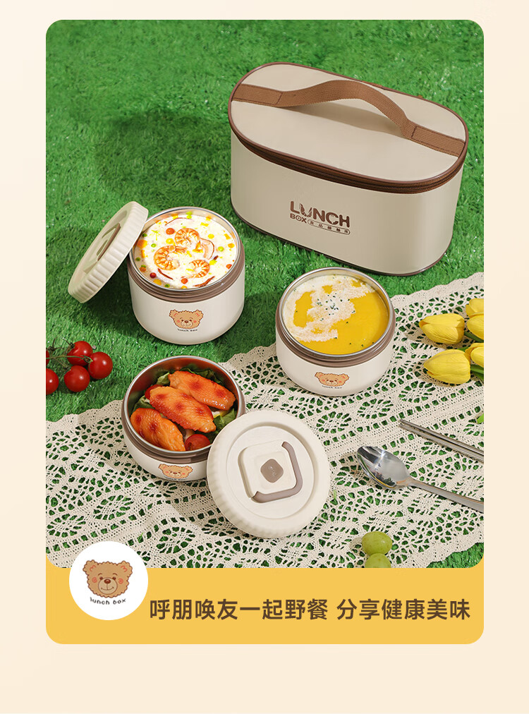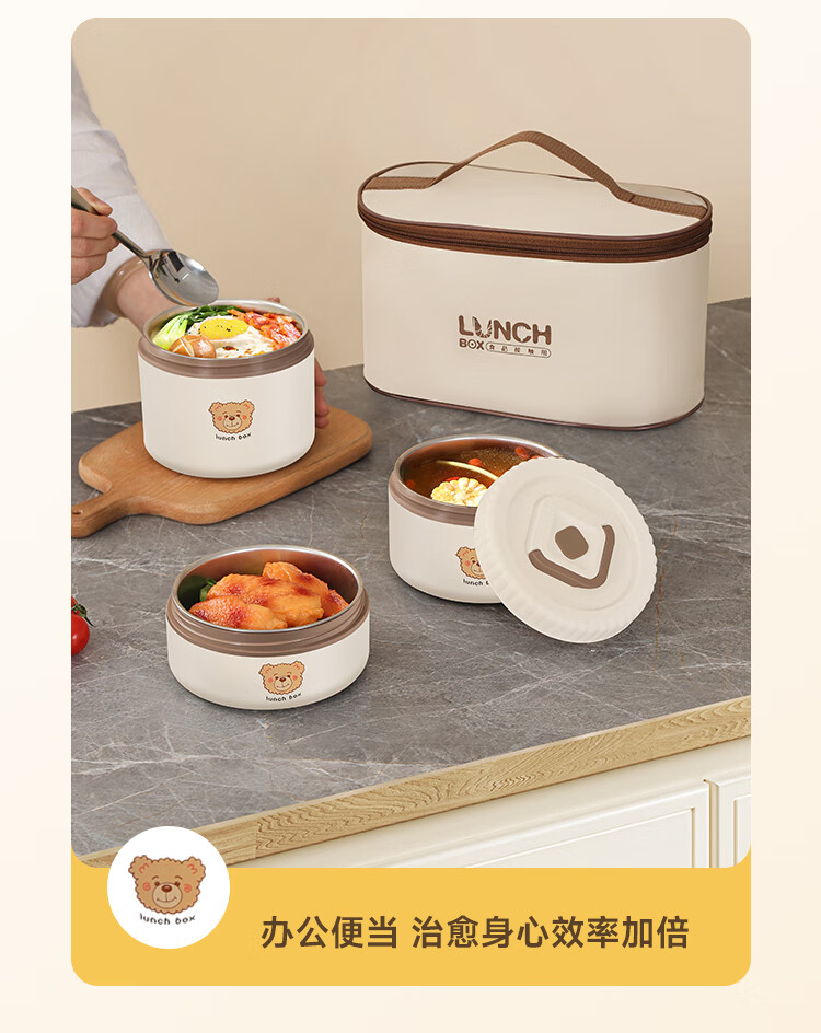 MZXM Japan imported 316 stainless steel insulated lunch box with rice artifact student lunch box microwaveable rice white-2 large + 2 extra large
