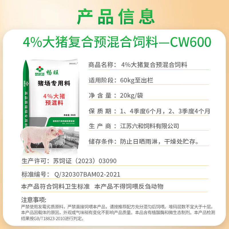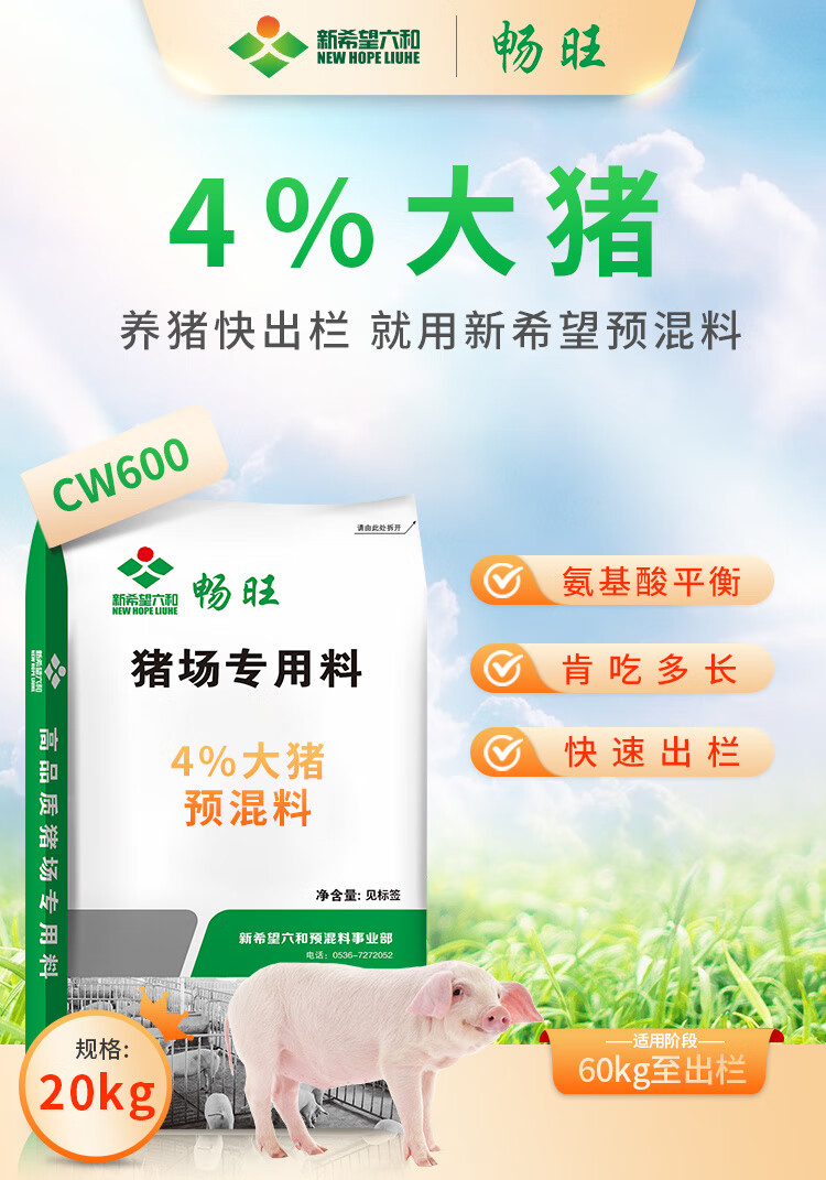 New Hope Liuhe pig feed premix 4% medium and large pig CW600 CW600-20kg