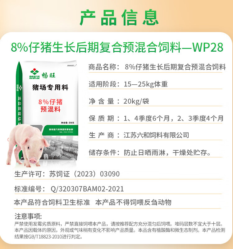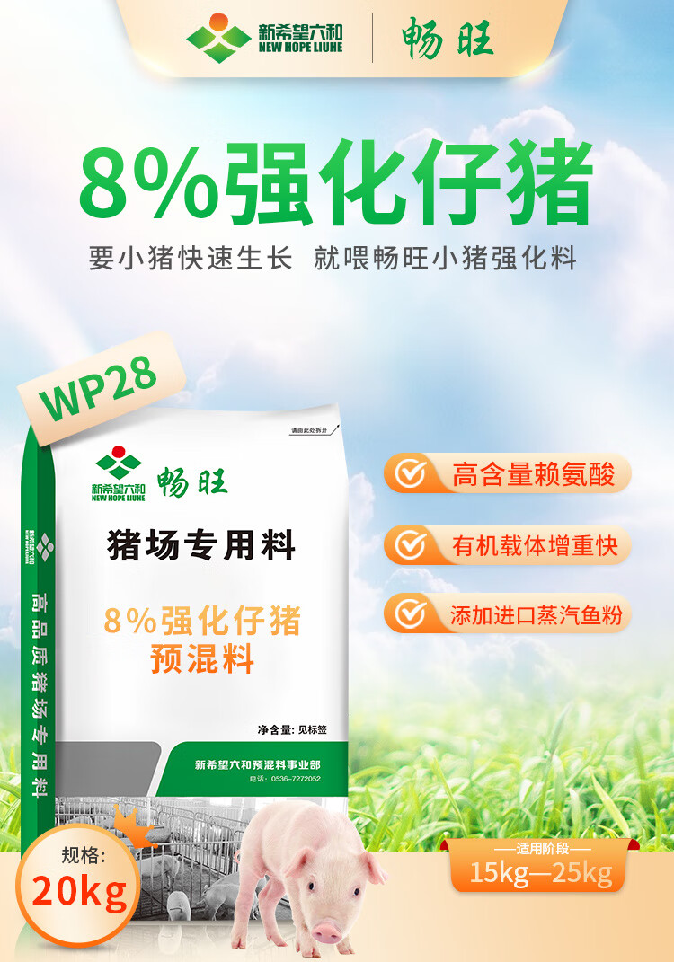 New Hope Six and 8% premix WP28 piglet feed contains fish meal organic carrier soybean meal probiotic lysine WP28-20KG