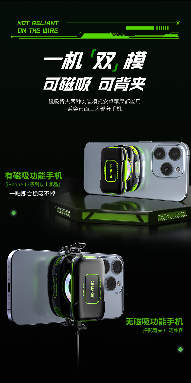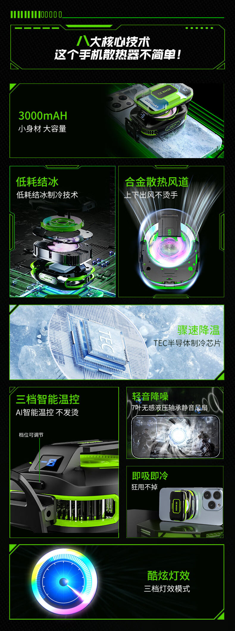Fandili AI temperature control丨really freezing mobile phone radiator semiconductor magnetic back clip-on tablet for gaming, cooling for the chicken king Apple iqoo Android Red Magic Black Shark rechargeable model with built-in charging compartment super long battery life丨120 frames in the whole process