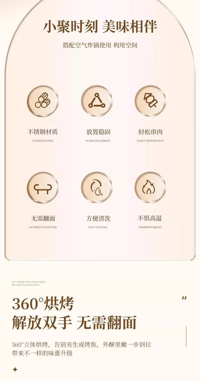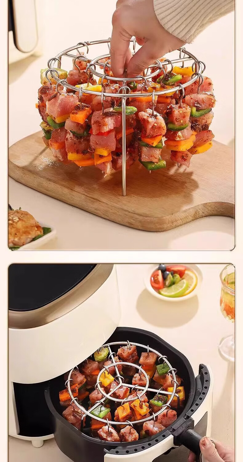 Vertical 48 skewers stainless steel air fryer stainless steel grill barbecue household oven kitchen skewers meal tray air fryer grill + 48 skewers