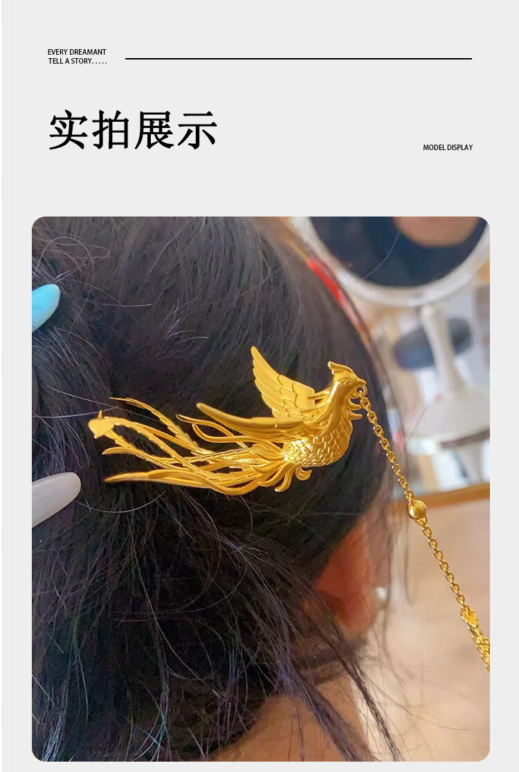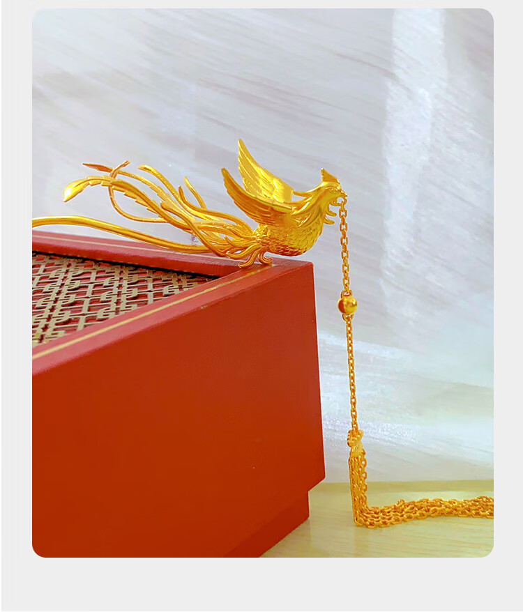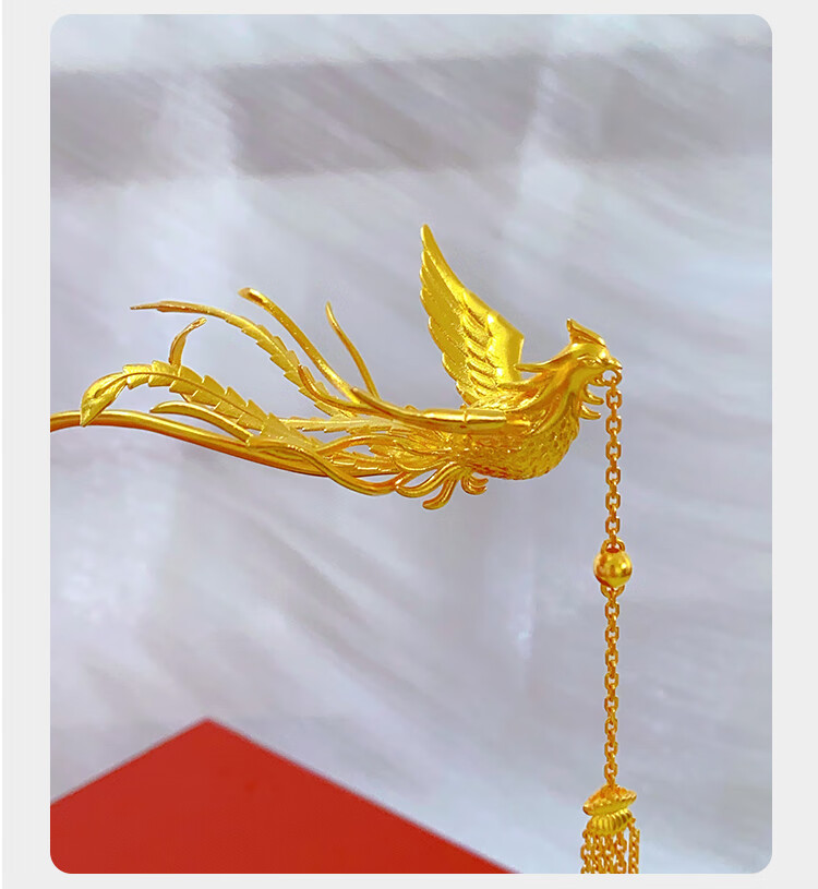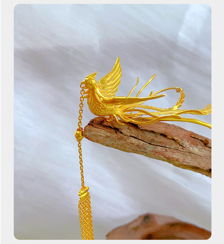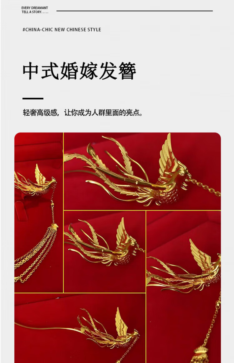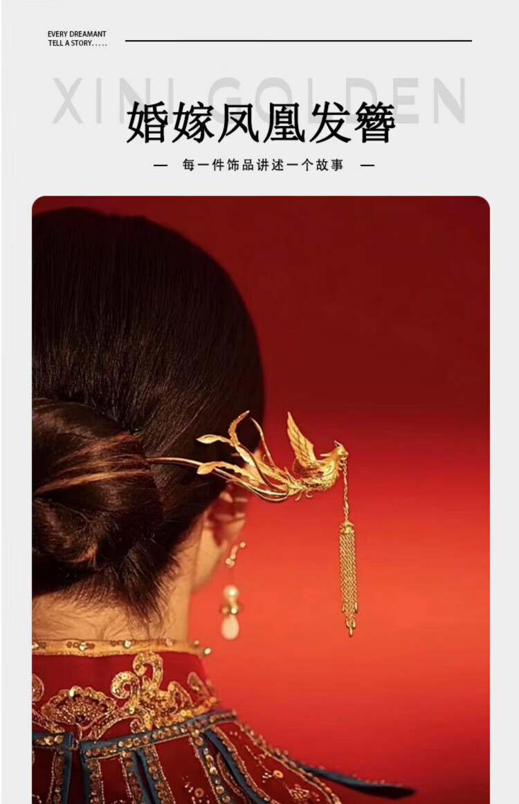 Jingjia Phoenix Golden Hairpin Wedding Ancient Gold-Inlaid Silver Phoenix Hairpin New Chinese Style Wedding Tassel New Retro Golden Phoenix Hairpin Weighs about 25 grams Customized products do not support returns or exchanges