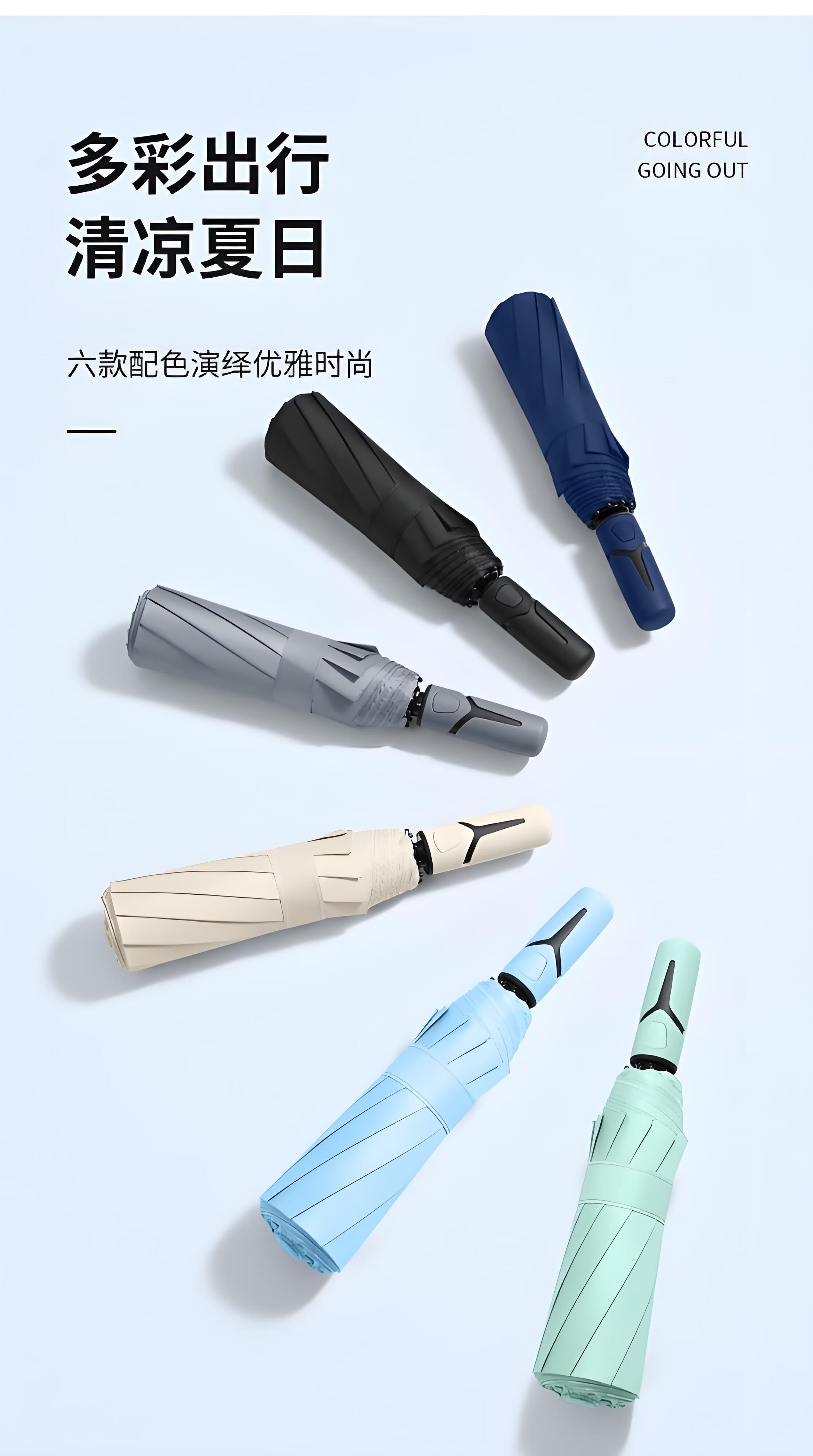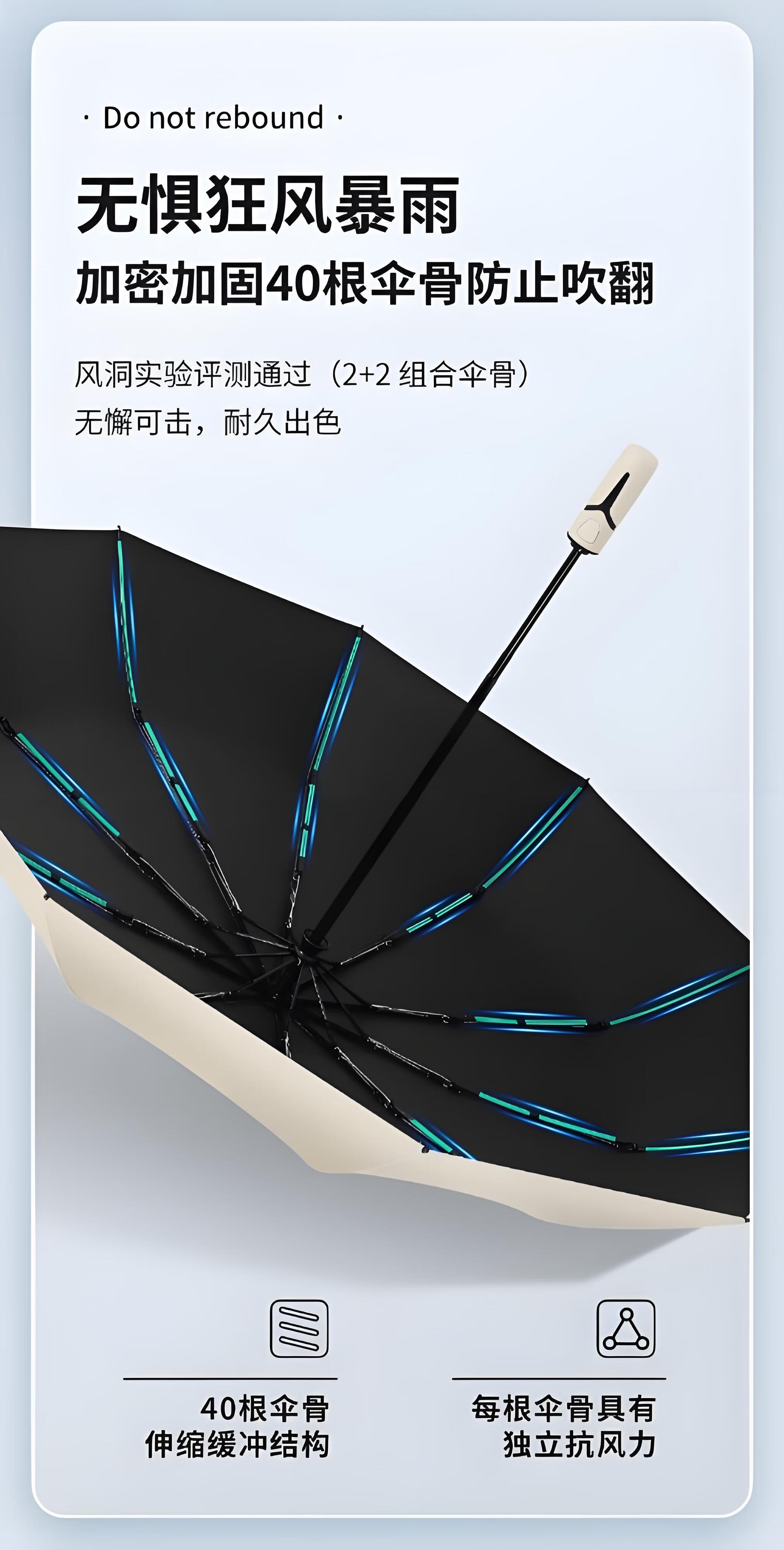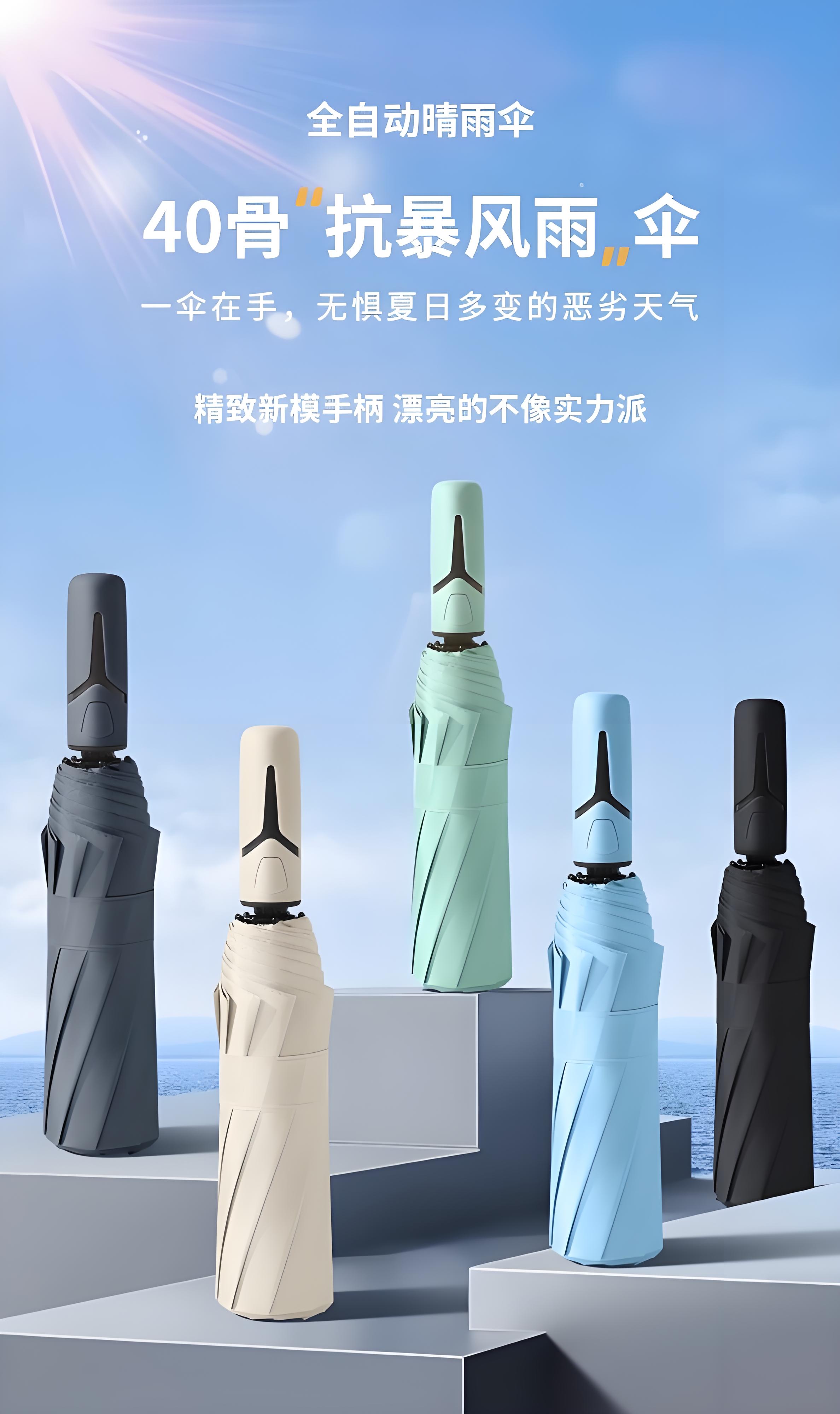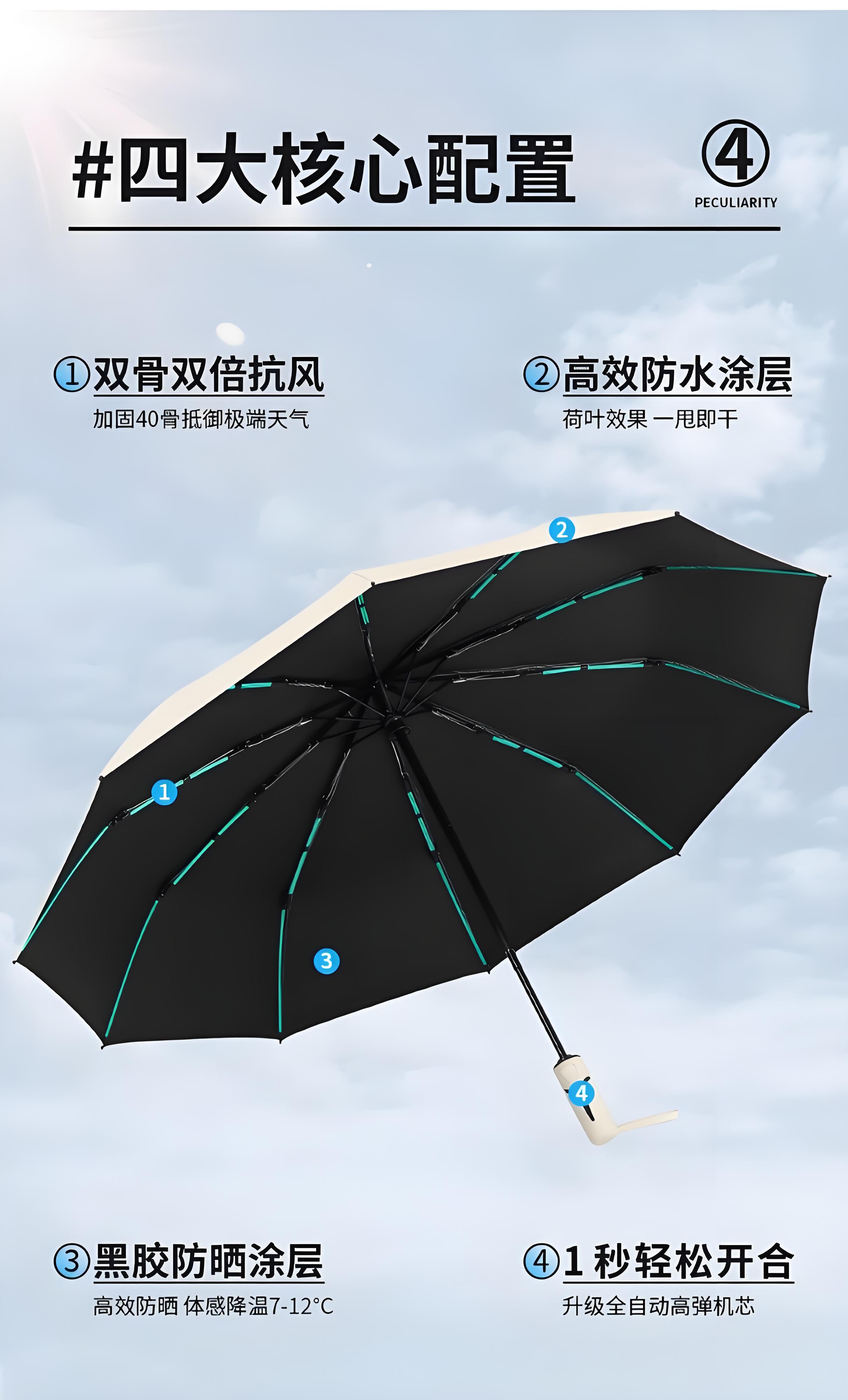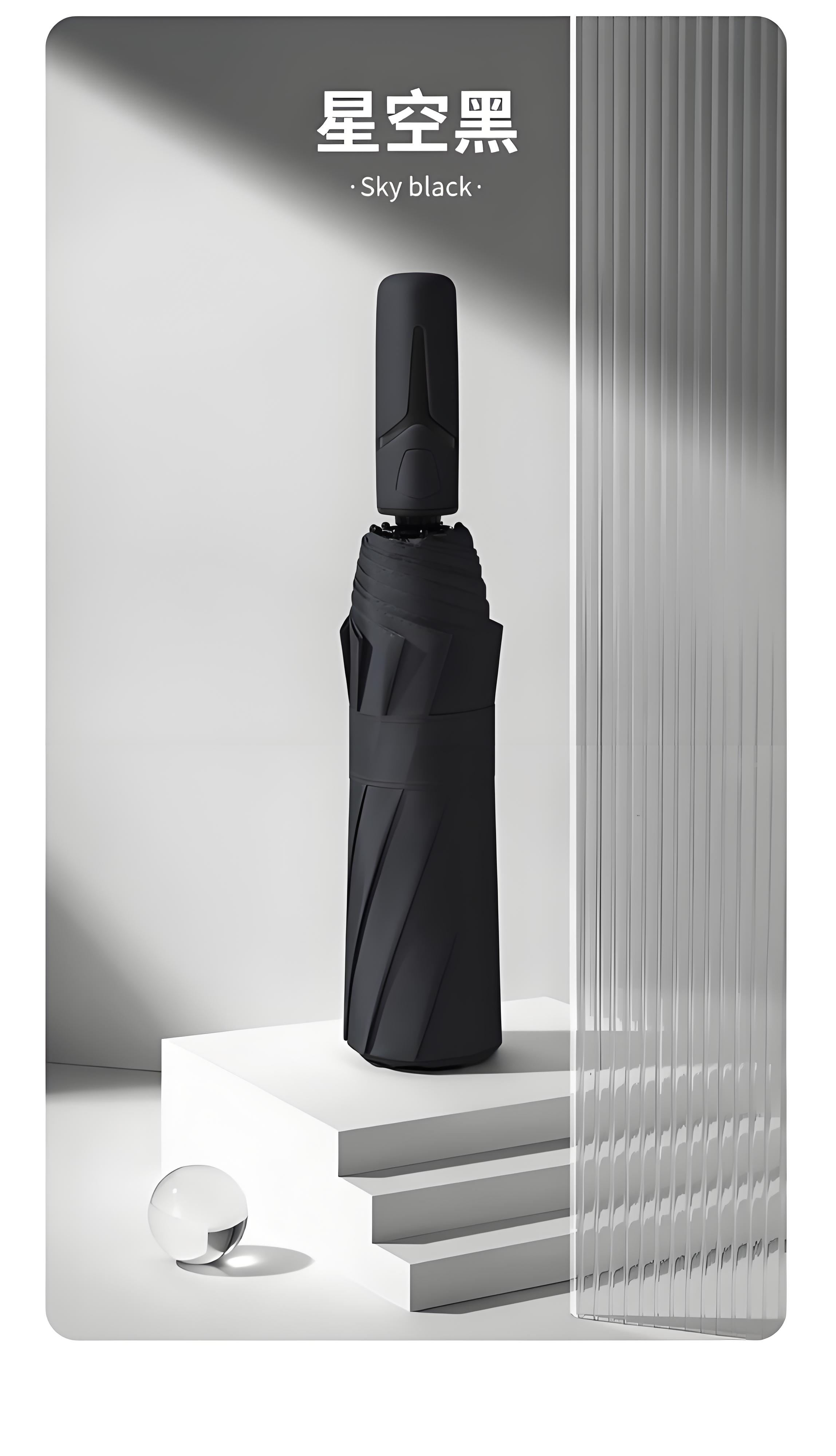 New 40-bone umbrella, folding automatic parasol, thickened vinyl, sunny and rainy umbrella, sun protection and anti-UV parasol, creative handle, extra large sun umbrella - black