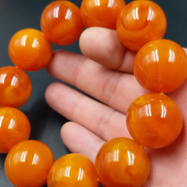 Fat Donglai's same style beeswax chicken fat yellow bracelet exquisite round bead bracelet old 18/20/22/24 mm bracelet 24 mm round bead bracelet