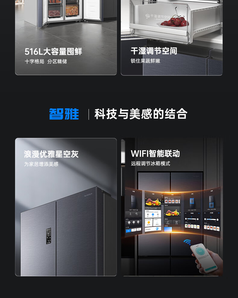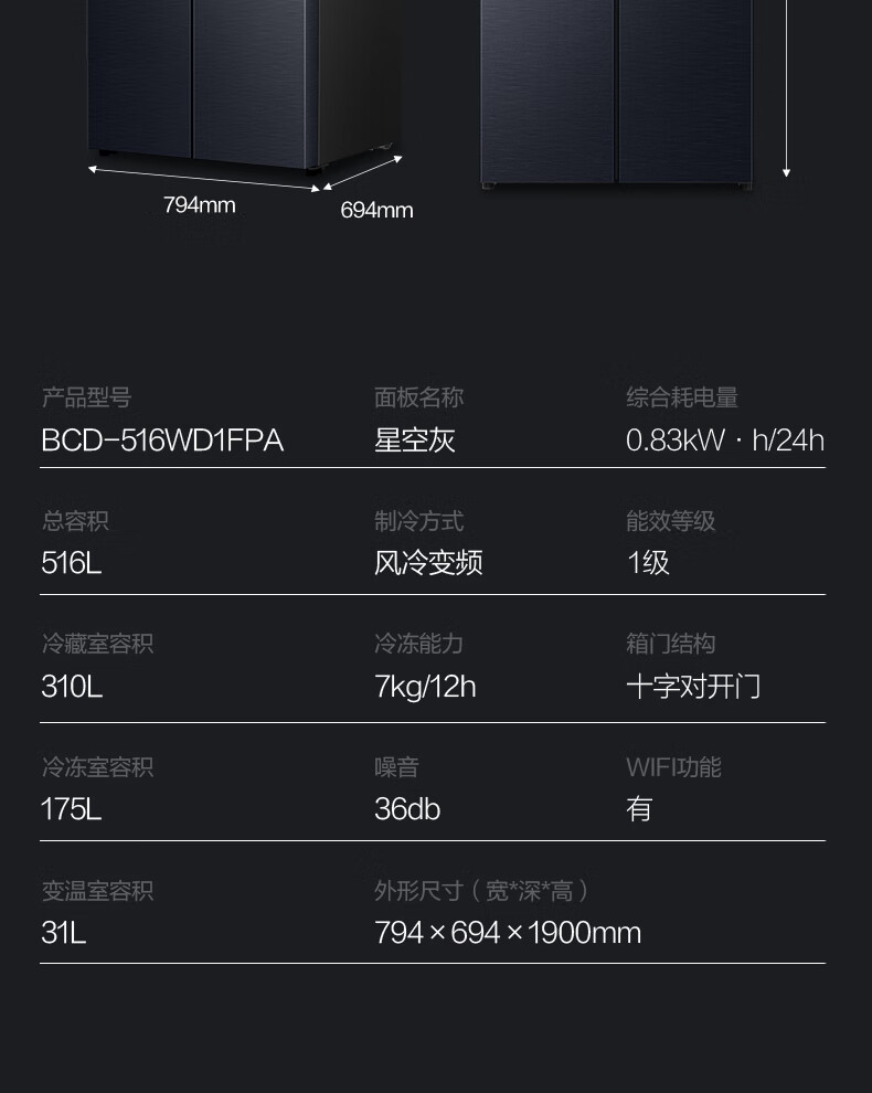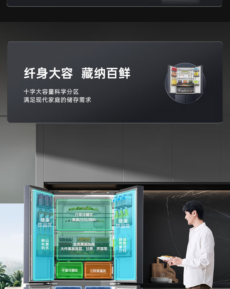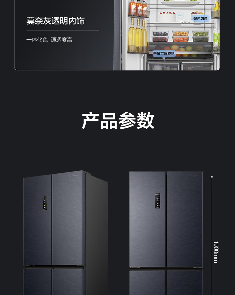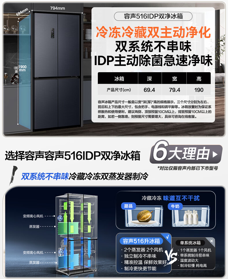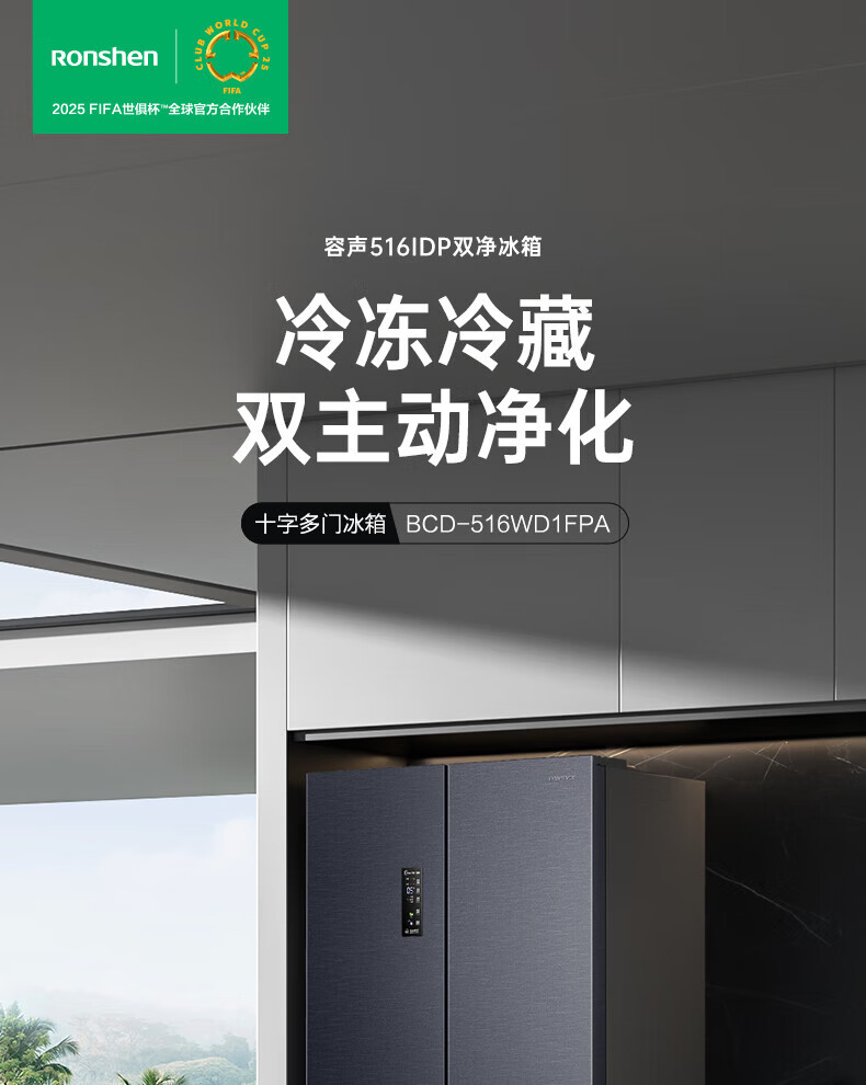 Rongsheng 516 liters active double purification dual system cross four-door ultra-thin embedded first-class air-cooled variable frequency double cycle refrigerator government subsidy BCD-516WD1FPA white active purification and sterilization