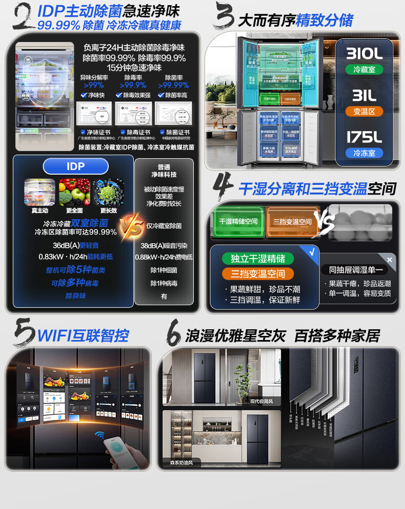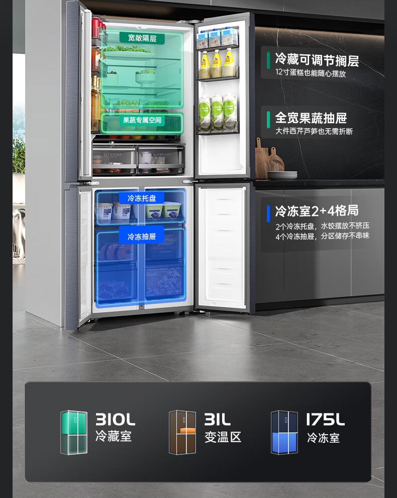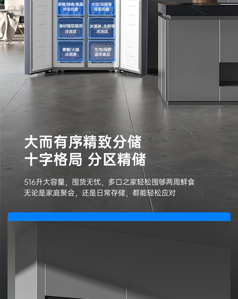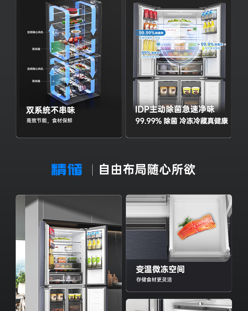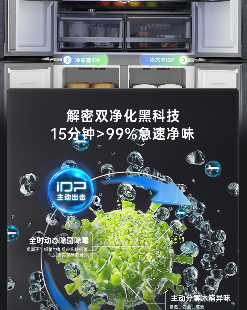 Rongsheng 516 liters active double purification dual system cross four-door ultra-thin embedded first-class air-cooled variable frequency double cycle refrigerator government subsidy BCD-516WD1FPA white active purification and sterilization